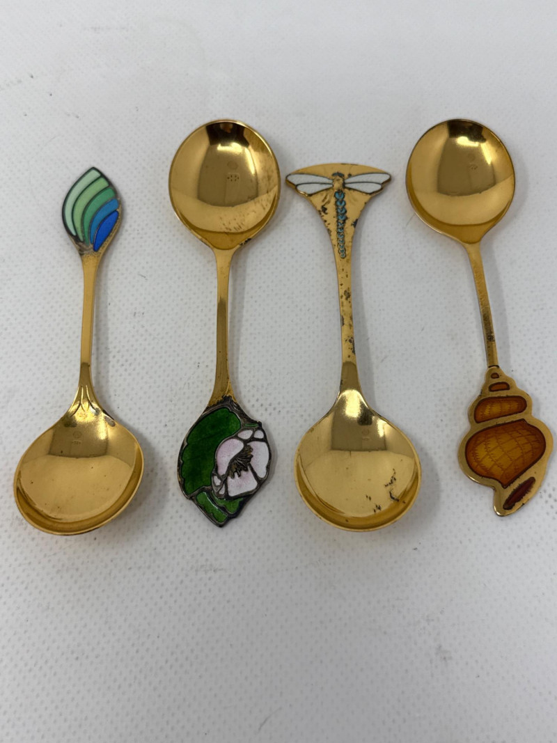 Reid & Barton Annual Sterling Silver Enamel Spoons (x4)