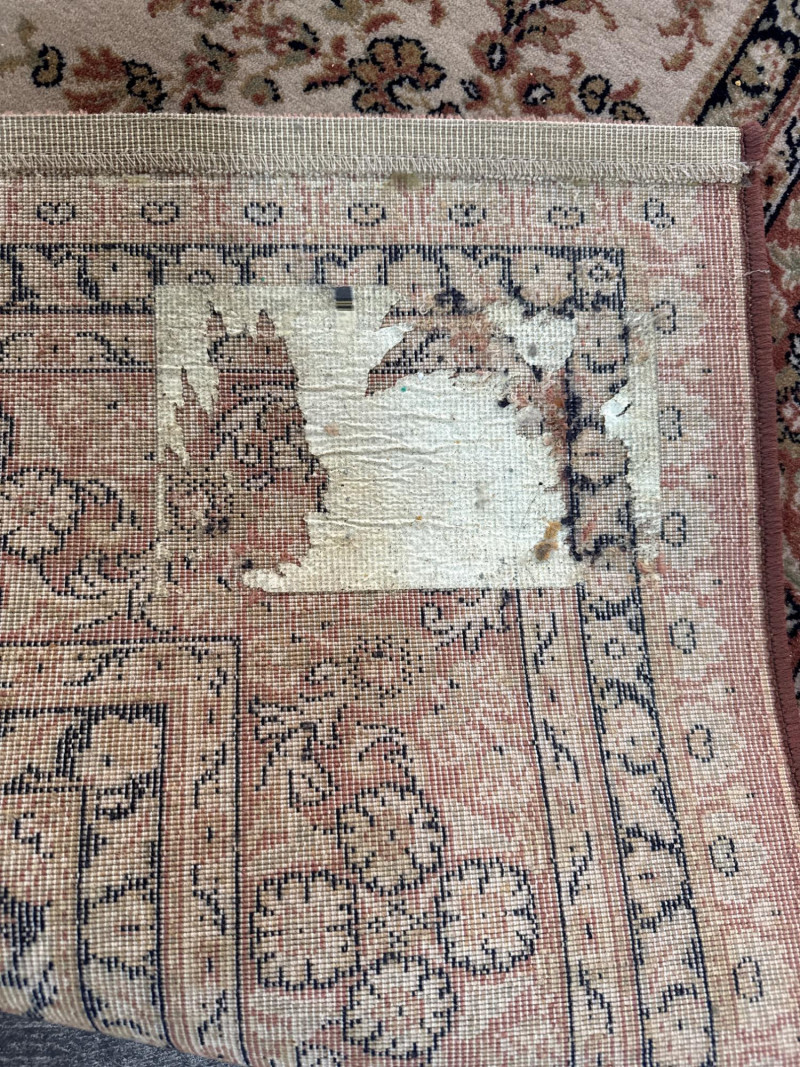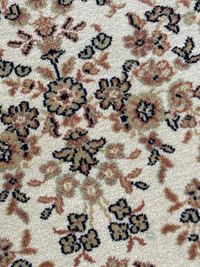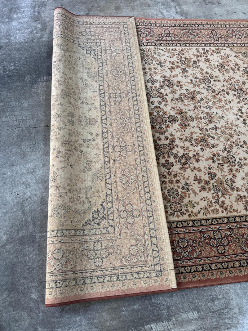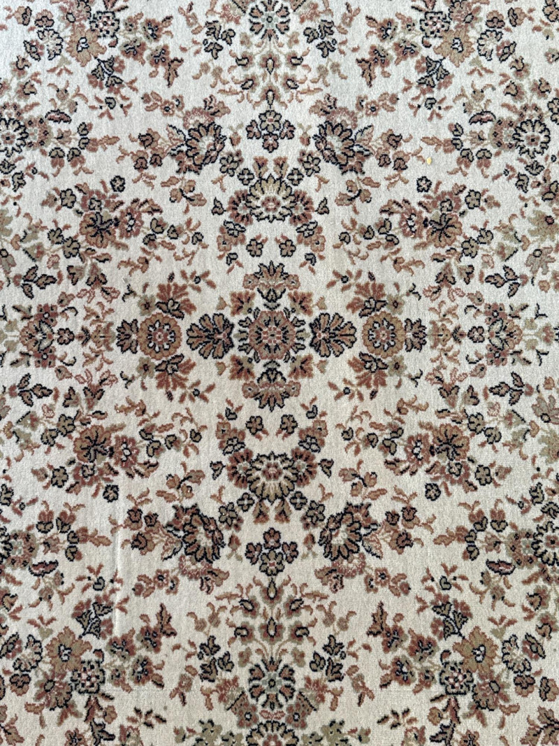 Persian-style rugs are prized for their intricate floral motifs and harmonious border work. This piece, with its aged patina and authentic vintage charm, is ideal for collectors or decorators seeking a classic accent with character. Whether displayed in a formal living room or curated as part of a vintage rug collection, it offers enduring appeal.Persian-Style Floral Area Rug – Beige & Rust Tones