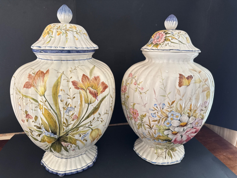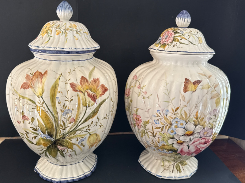 Lot # 114 - Two Italian Hand-Painted Ceramic Ginger Jars