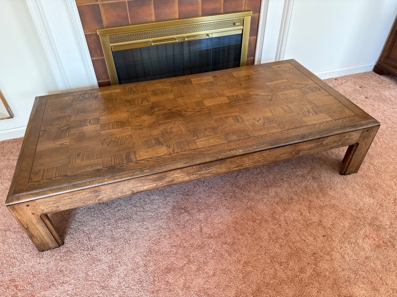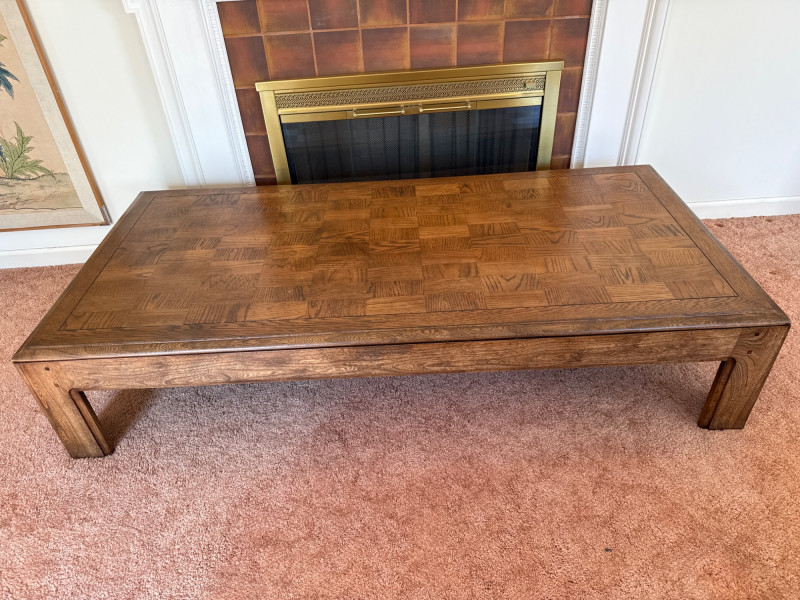 Lane Furniture Company, founded in 1912 in Altavista, Virginia, became one of the most recognized names in American furniture. Lane is best known for its cedar chests, Mid-Century Modern case goods, and durable living room furniture. Their pieces are valued for quality craftsmanship, American hardwood construction, and timeless designs. By the 1970s, Lane expanded into a wide range of living room and occasional furniture, including this solid parquet-top coffee table.