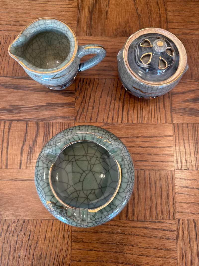 Lot # 118 - Soma Ware Somayaki Vintage Japanese Tea Set – Aohibi Crackle Glaze