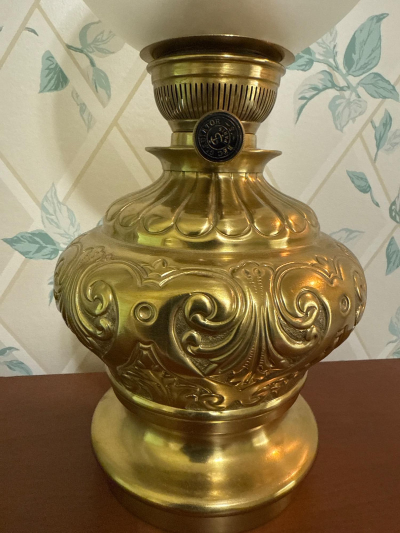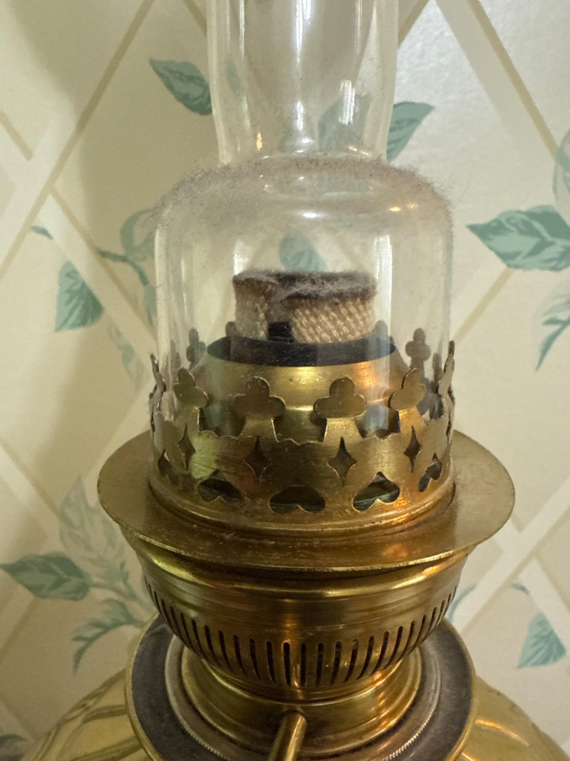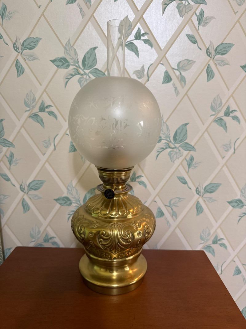 Lot # 204 - Vintage Wood Cabinet with Brass & Glass Gas Lamp – Bedroom Accent Pair