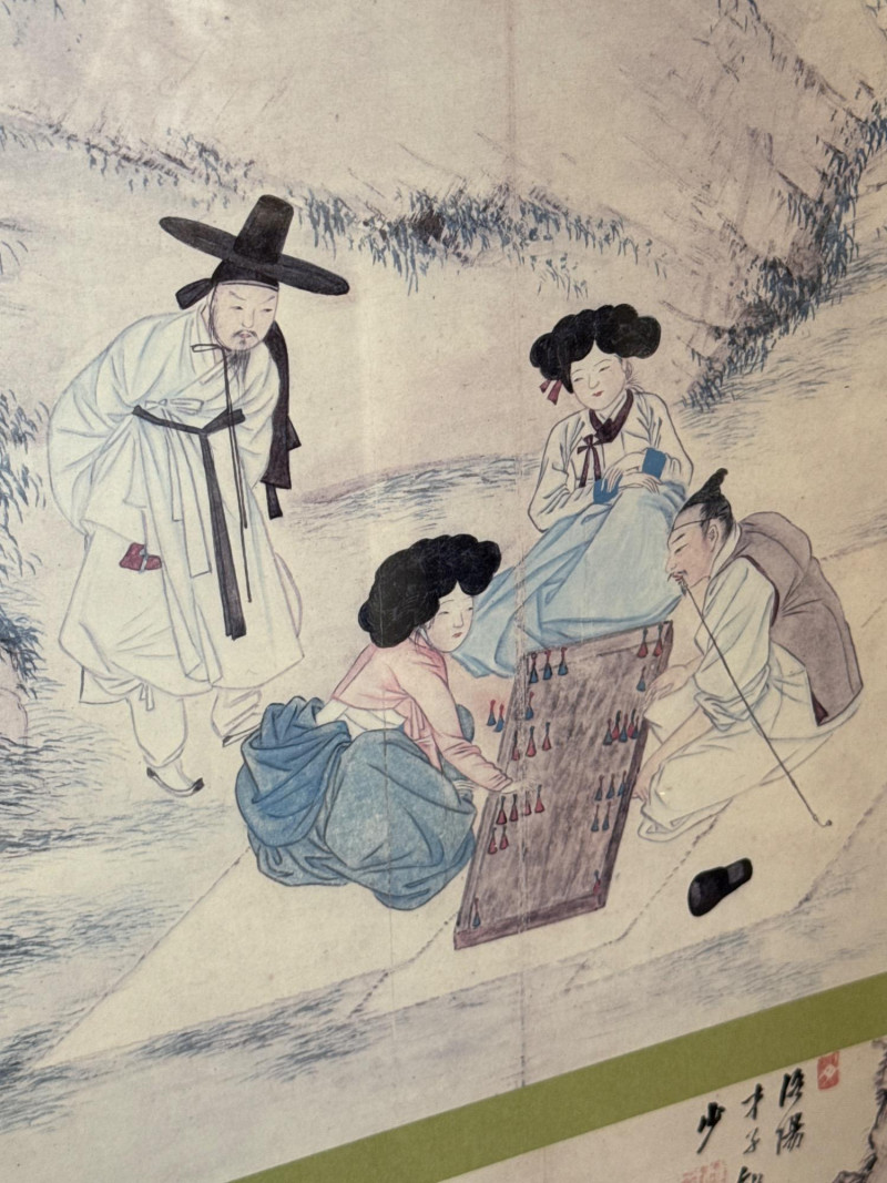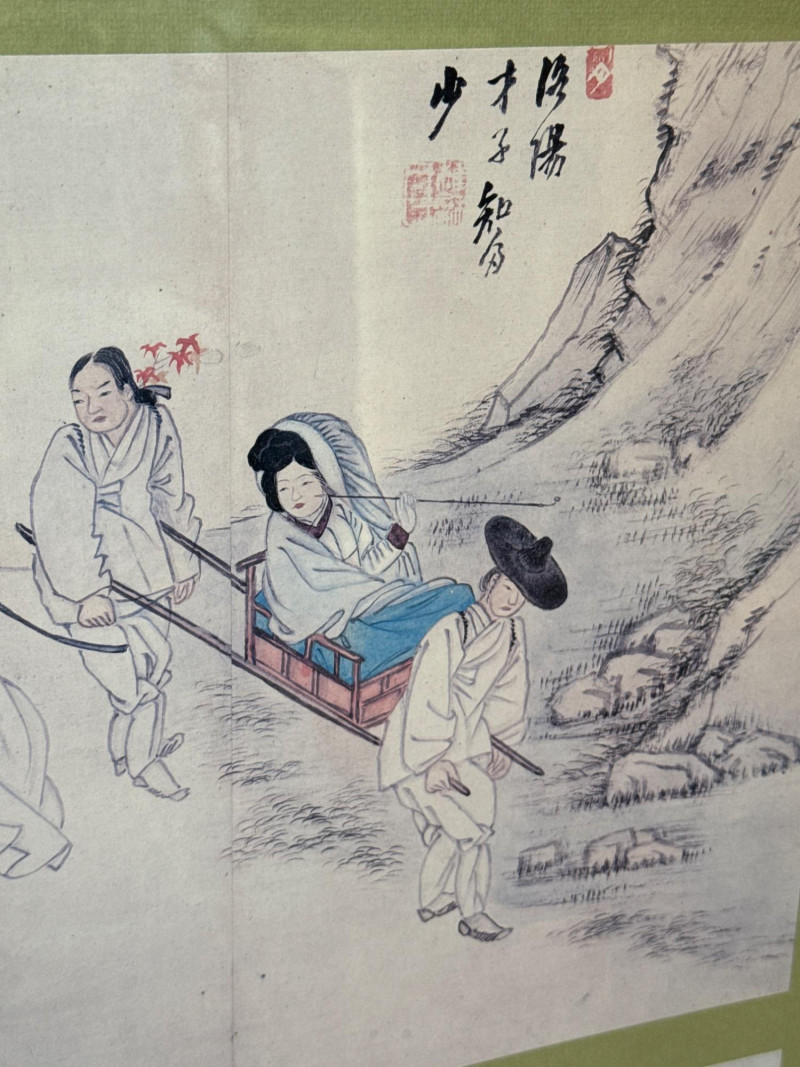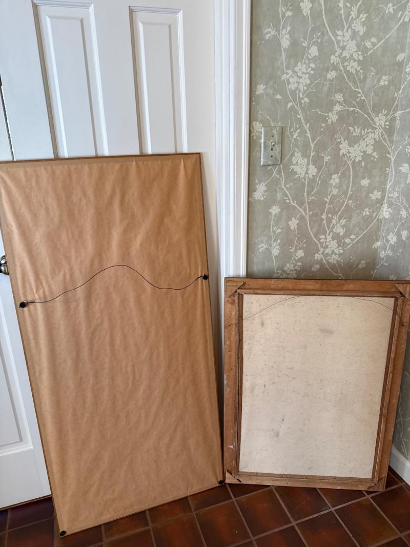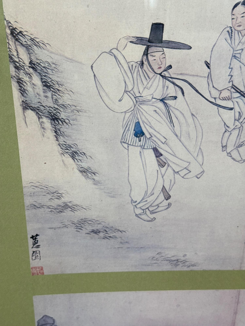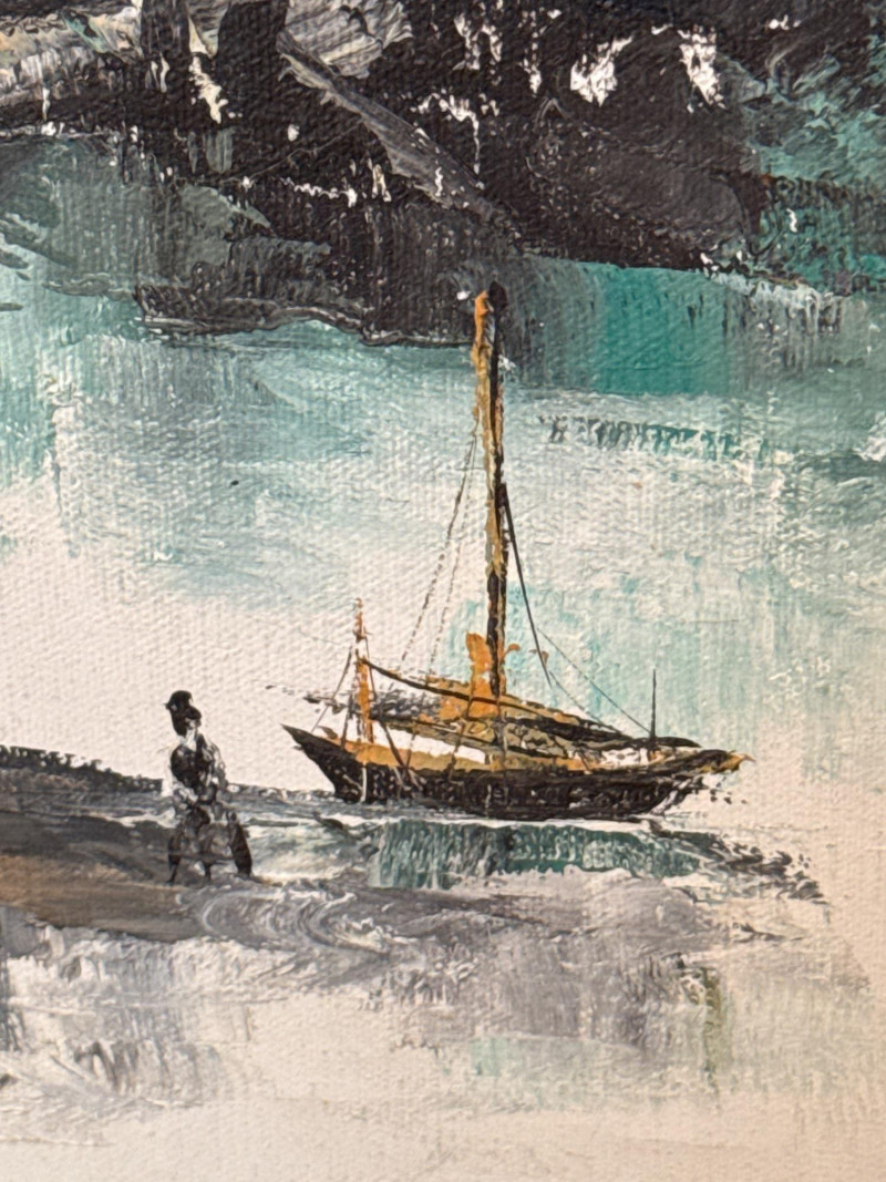 A striking pair of framed Asian artworks, each offering a distinct visual narrative. One features a serene oil landscape with cascading waterfalls and autumnal trees, while the other presents a collage of four traditional scenes with figures in classical attire. Together, they celebrate cultural storytelling and painterly elegance. Oil Landscape Painting Dimensions: 33" H × 24" W Style: Traditional Asian mountain scene with waterfall, bridge, and temple Palette: Earth tones with vibrant foliage and misty depth Framing: Wood frame with glass front Four-Panel Cultural Collage Dimensions: 49" H × 24" W Style: Series of traditional Asian vignettes featuring figures in ceremonial dress, each with calligraphy inscriptions Medium: Mixed media prints or watercolors Framing: Coordinated wood frame with glass front Certificate of authenticity and provenance is not available. Sold as is. We make every effort to describe and research every item. If documentation is found, description will be updated. Set Includes