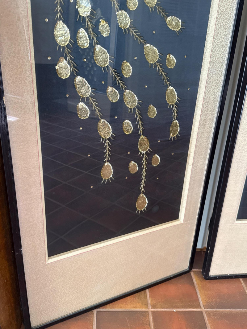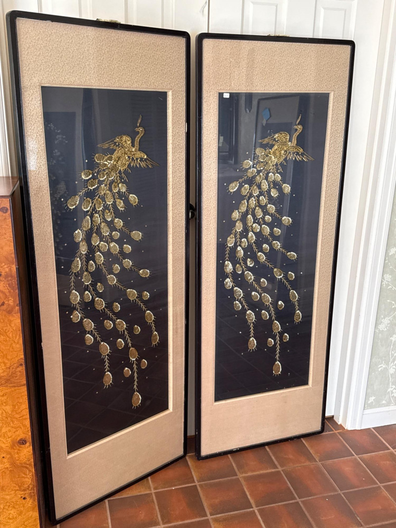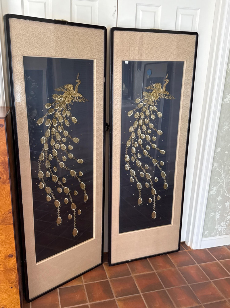 Lot # 171 - Pair of Framed Gold Peacock Panels – Asian-Inspired Wall