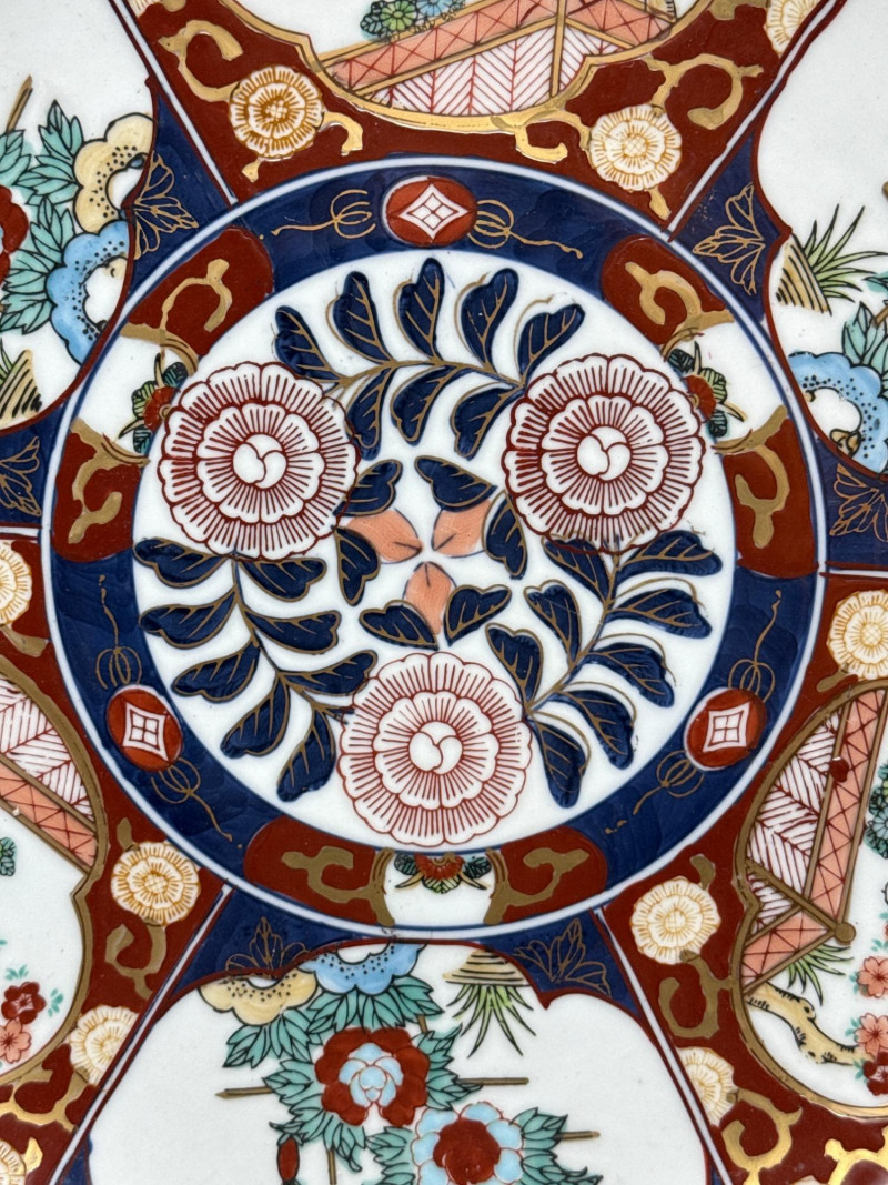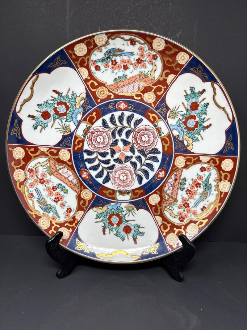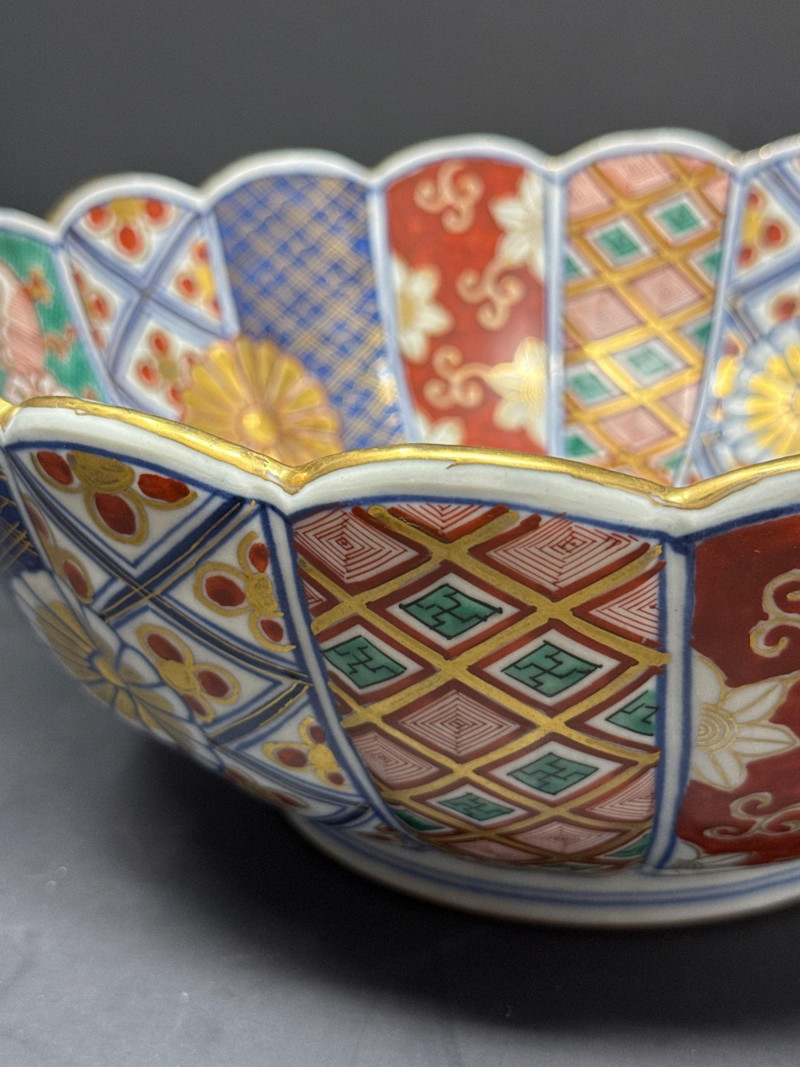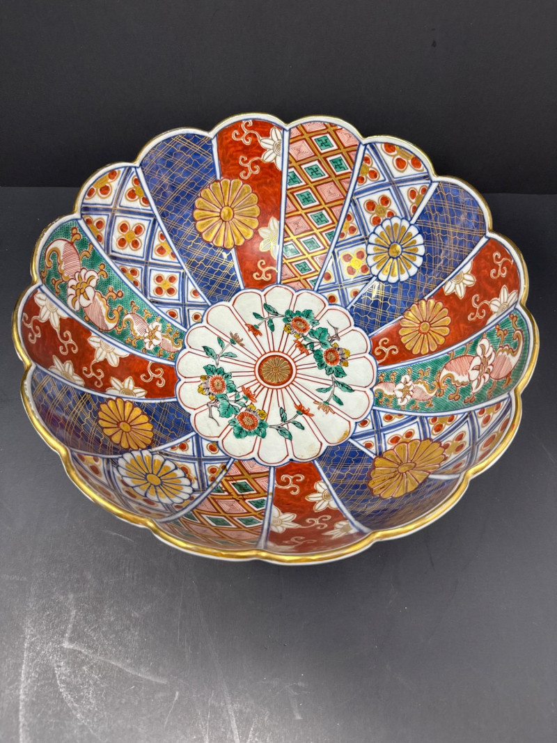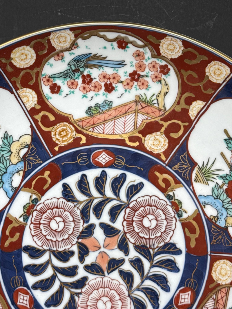 Lot # 173 - Signed Japanese Imari Bowl & Plate – Fluted Porcelain with Stand