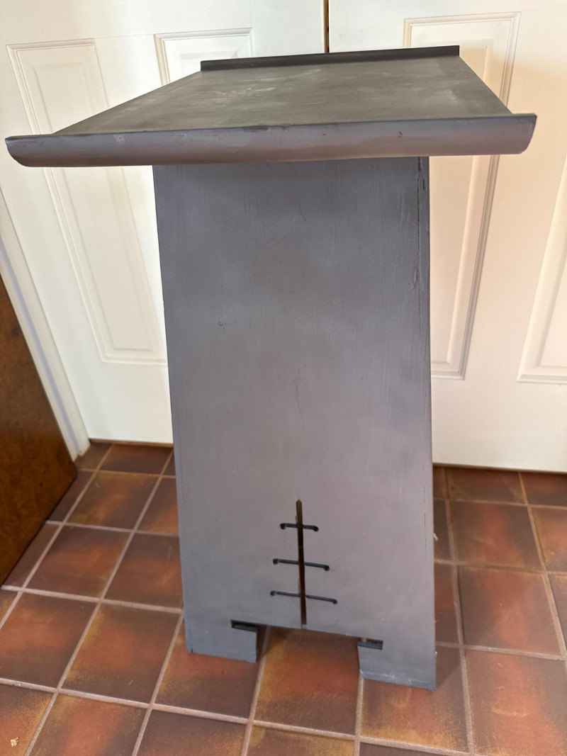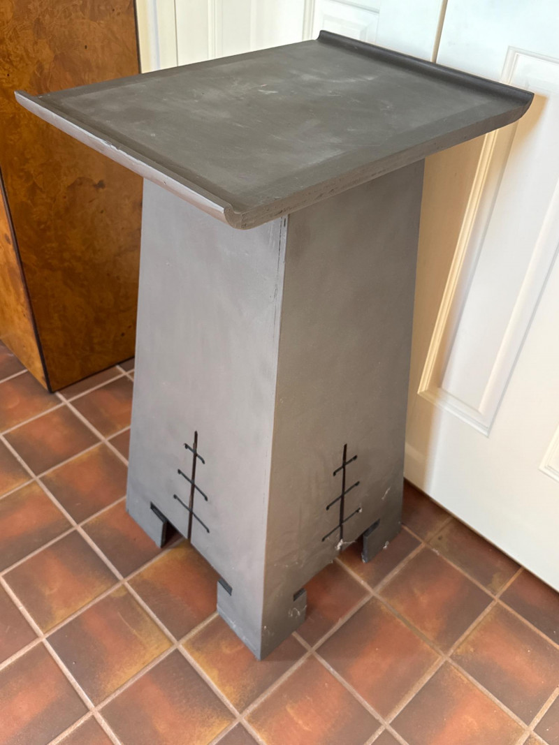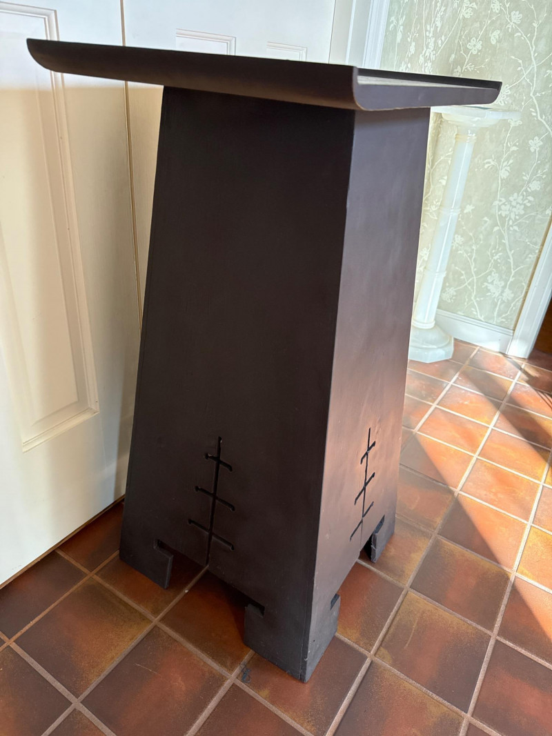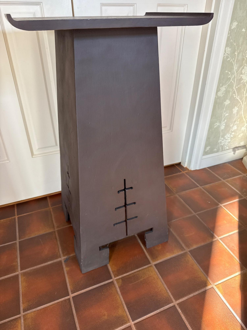 A clean and elegant decorative pairing featuring a geometric Asian-style wood pedestal and a blue-and-white ceramic pot with a faux topiary. The pot’s intricate floral pattern contrasts beautifully with the minimalist cutout base, creating a balanced vignette ideal for entryways, sunrooms, or retail staging. Ceramic Pot Dimensions: 7" H × 9" W Design: Blue-and-white floral motif Contents: Faux topiary with spherical greenery Total Height with Plant: 26" Wood Pedestal Stand Dimensions: 19.25" L × 14" W × 32" H Style: Asian-inspired with cutout base and wide top surface Finish: Dark woodSet Includes