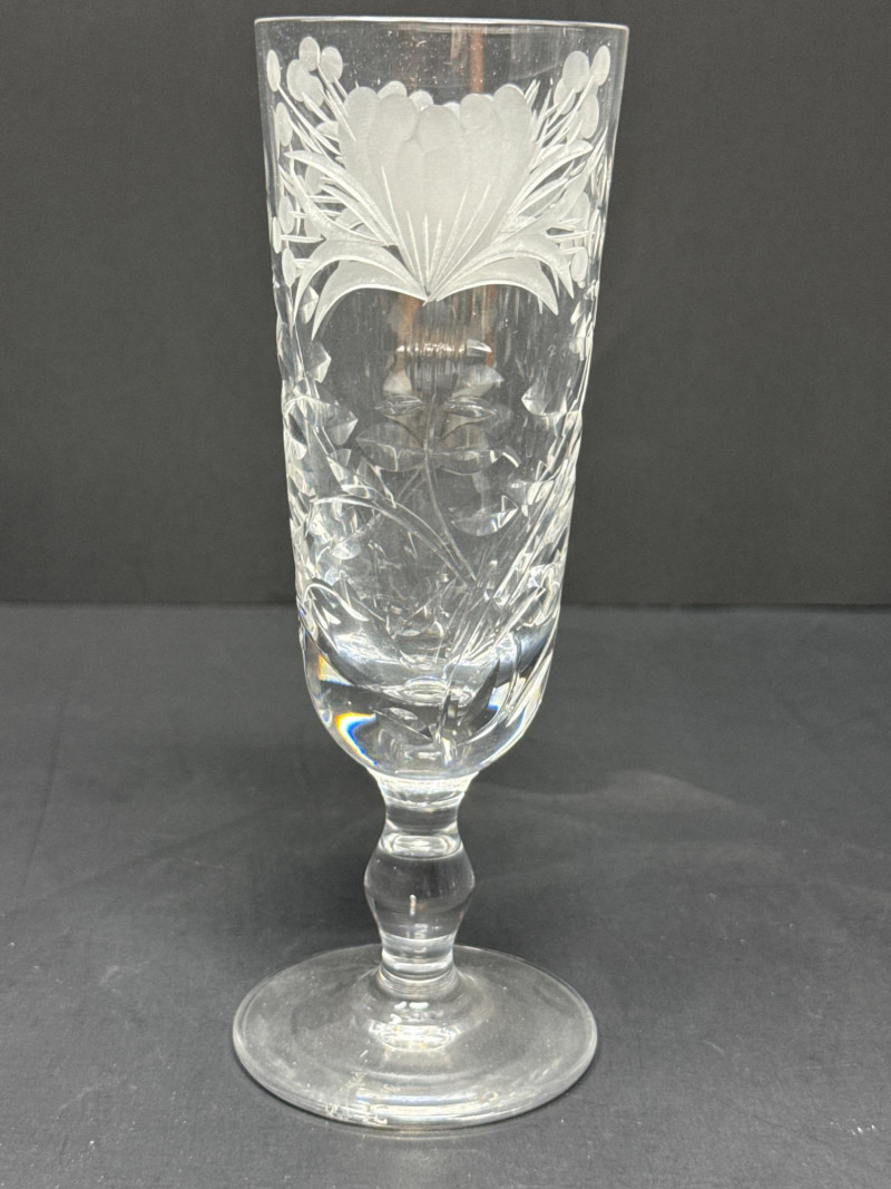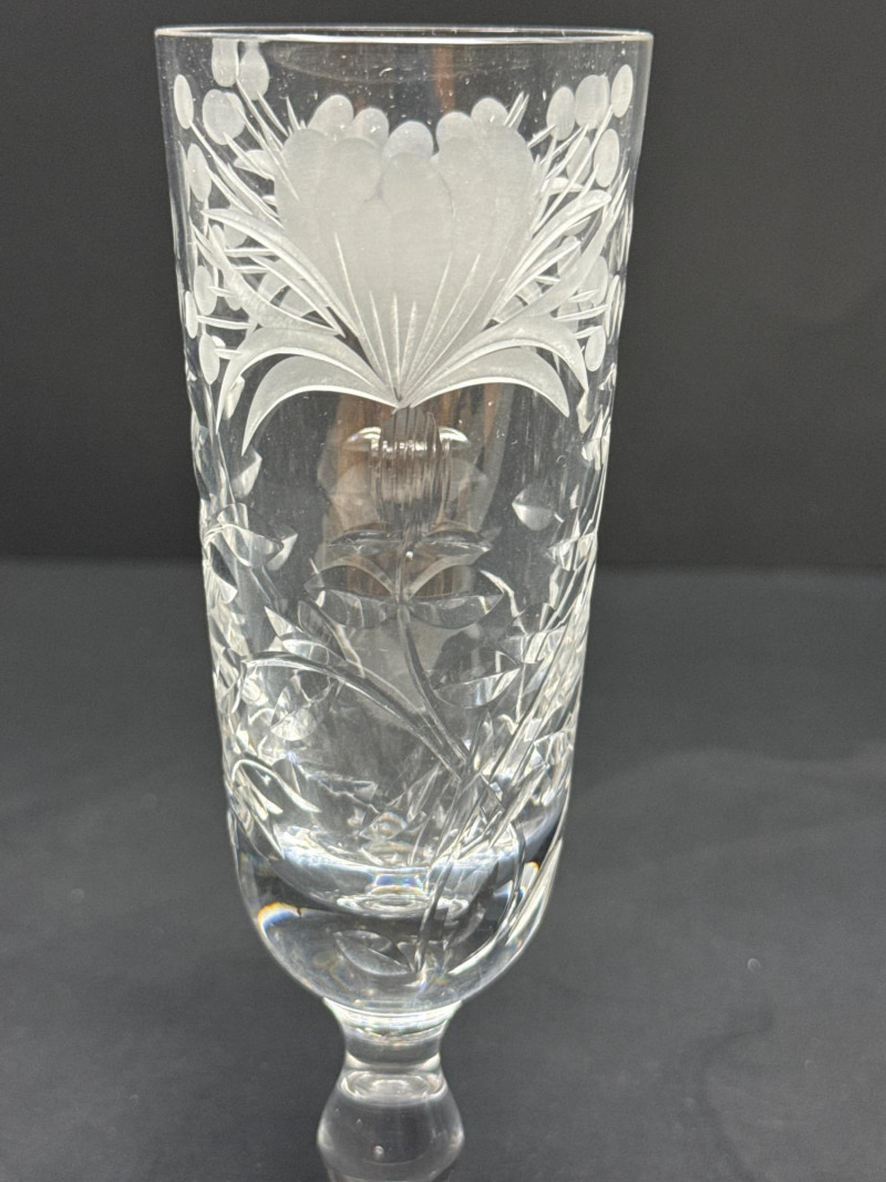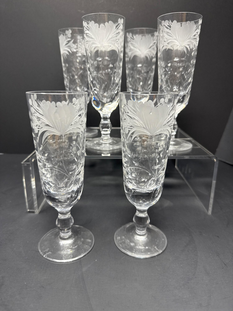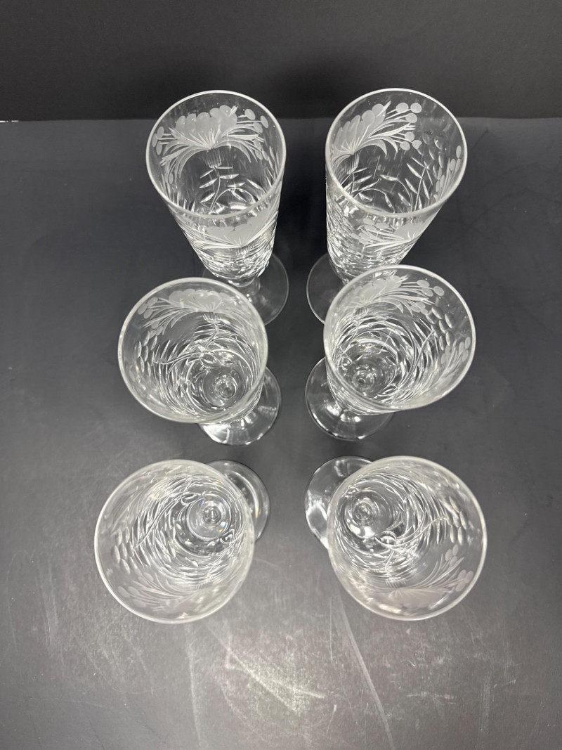 Lot # 187 - Royal Brierley “Honeysuckle” Etched Champagne Flutes – Set of Six