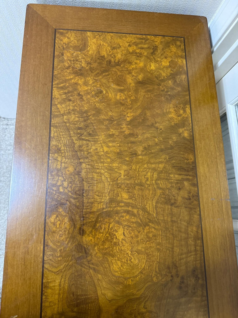 A classic vintage console table featuring a rich wood grain finish and subtle carved corner accents. The rectangular top offers generous surface space, supported by straight, sturdy legs that blend traditional craftsmanship with clean lines. Ideal for entryways, behind sofas, or as a display base for art and lighting. Material: Solid wood with polished finish Design: Rectangular top, carved corner details, straight legs Style: Transitional vintage with understated elegance Length: 55" Width: 17" Height: 28" Item Details