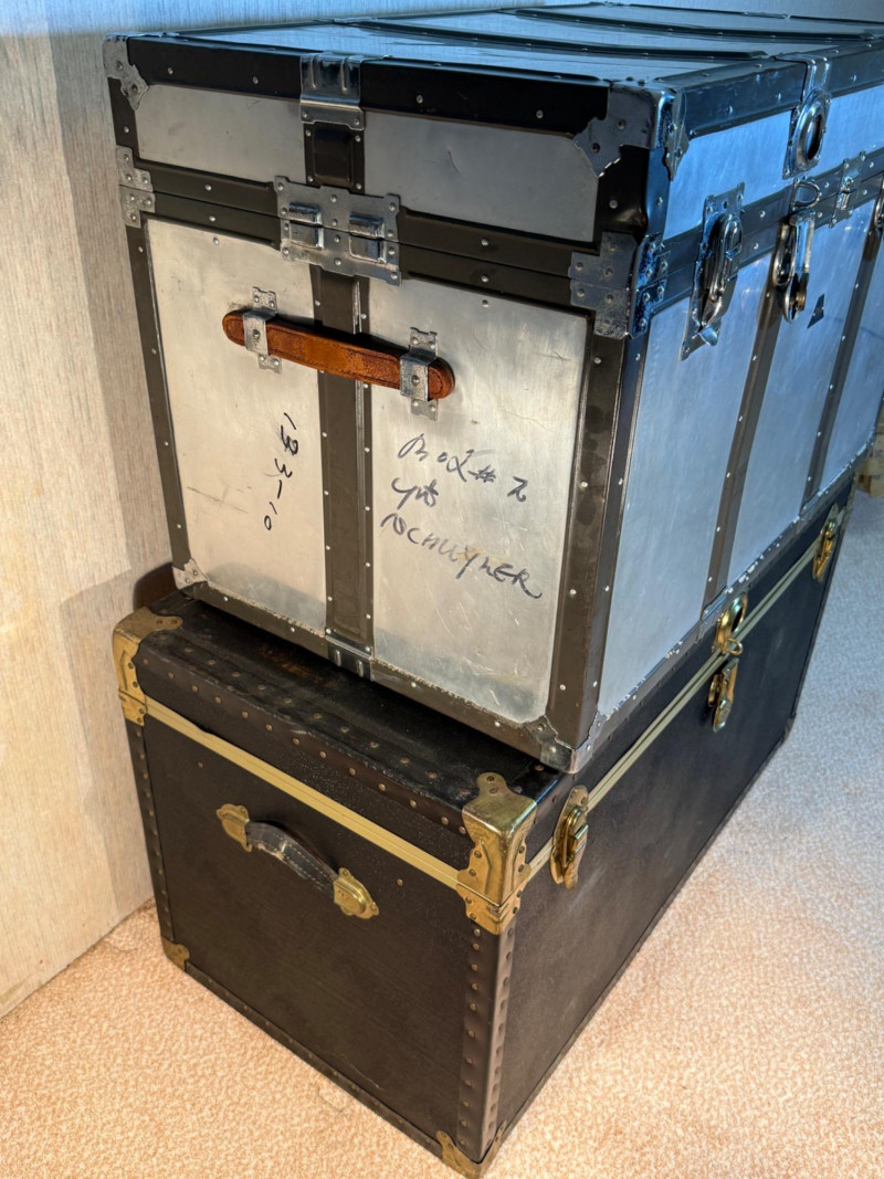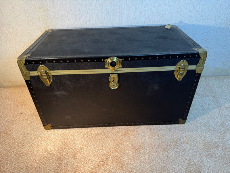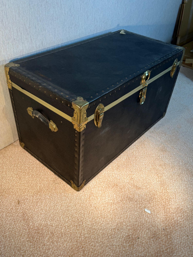 Lot # 200 - Large Vintage Trunks – Steel & Faux Leather with Brass Hardware