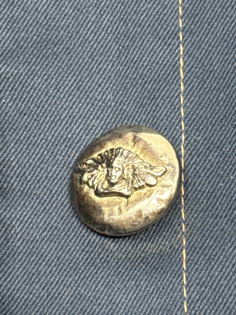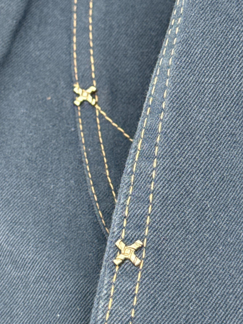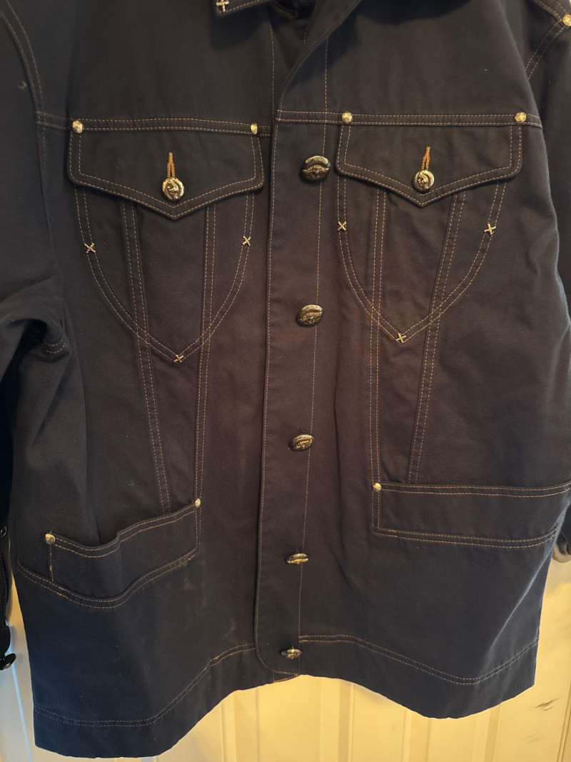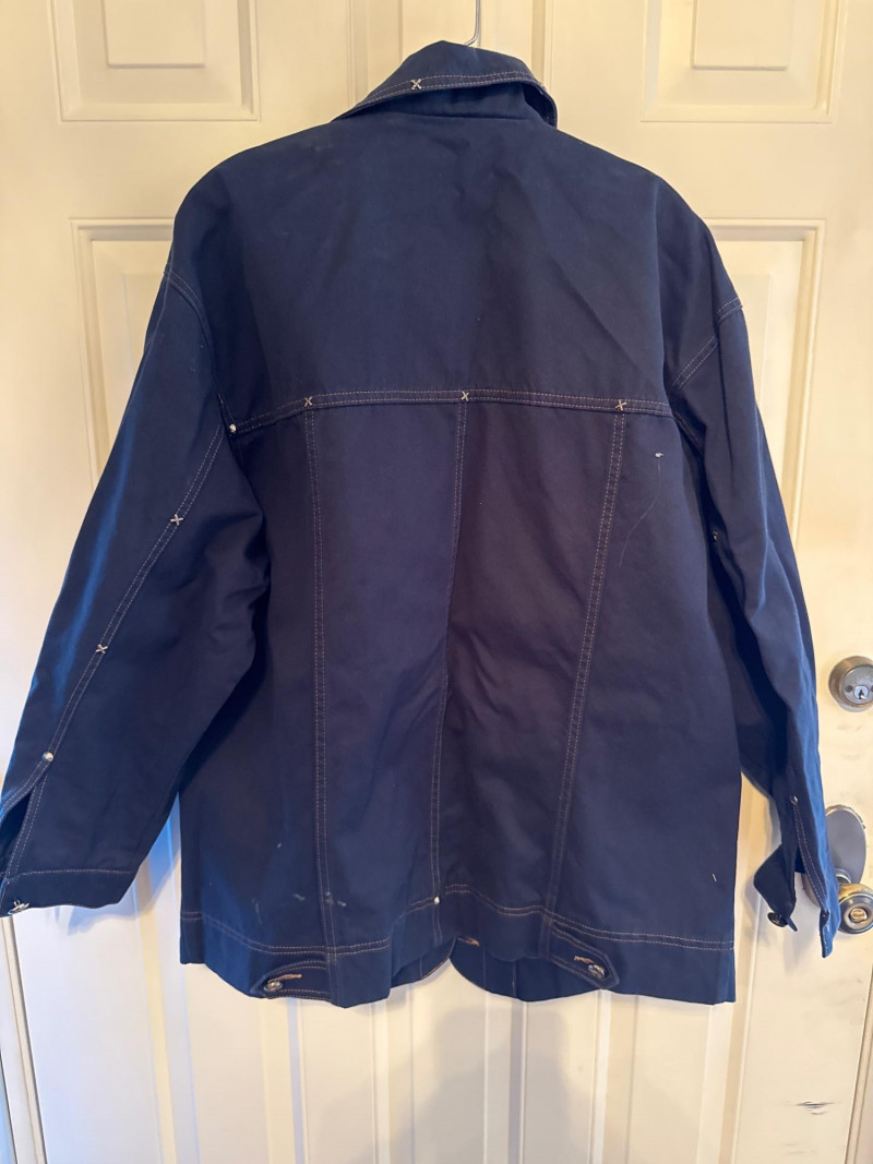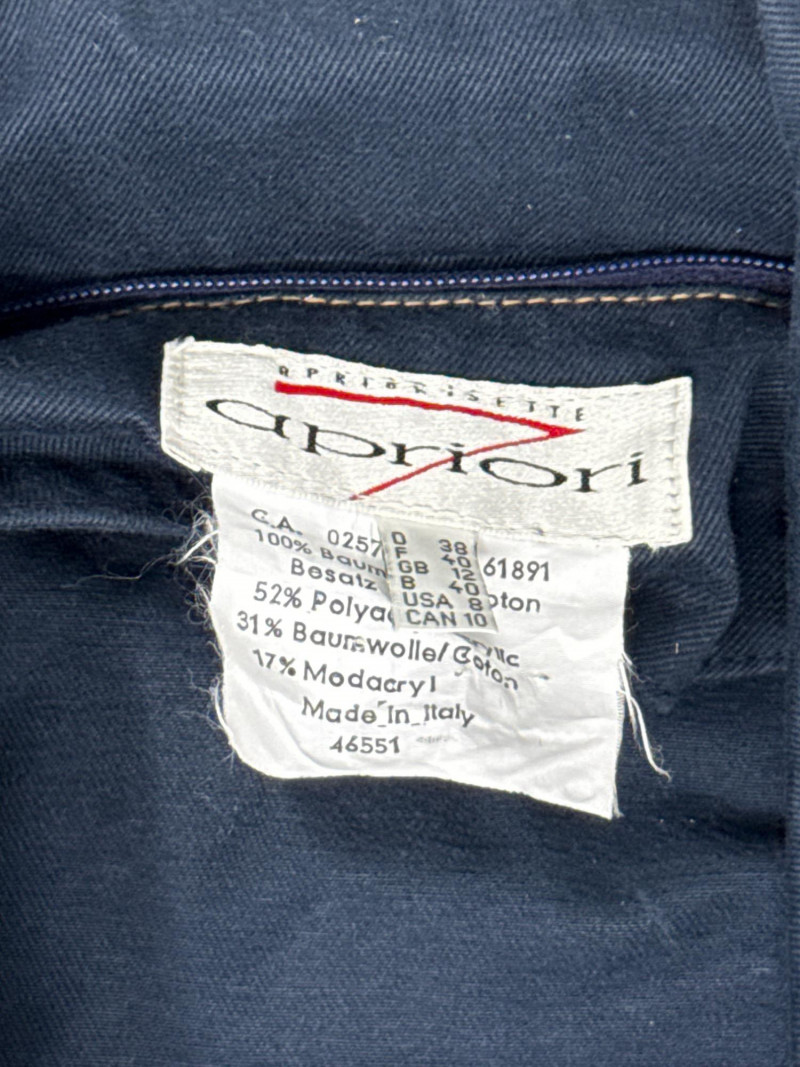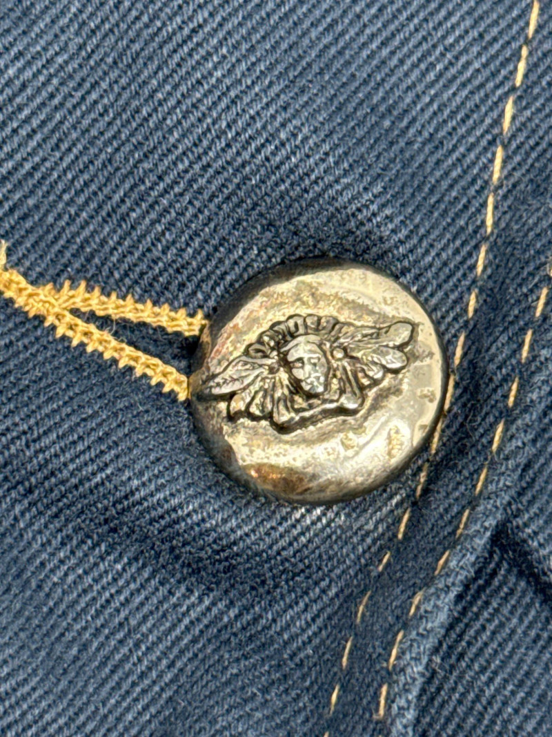 A bold and casual ensemble featuring rugged denim and retro graphic flair. This lot includes two pairs of dark-wash denim—one jacket and one skirt —both with flap pockets, white contrast stitching, and metal button details. Paired with a white ringer-style t-shirt featuring a red eagle and “Earth Wind Fire” graphic tee, this set channels concert-ready cool and Americana grit. Denim Pieces: Size 8 Dark wash with flap pockets, white stitching, metal hardware Includes jacket and coordinating bottom (skirt ) Graphic Tee: Size Medium White with black trim Red eagle and “Earth Wind Fire” band logo Light wear consistent with age Sold as a complete set Display-ready for collectors or stylists Item Details