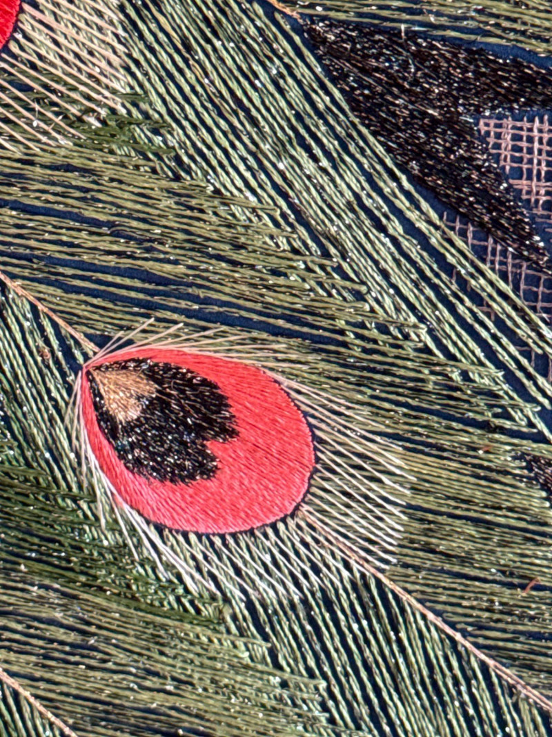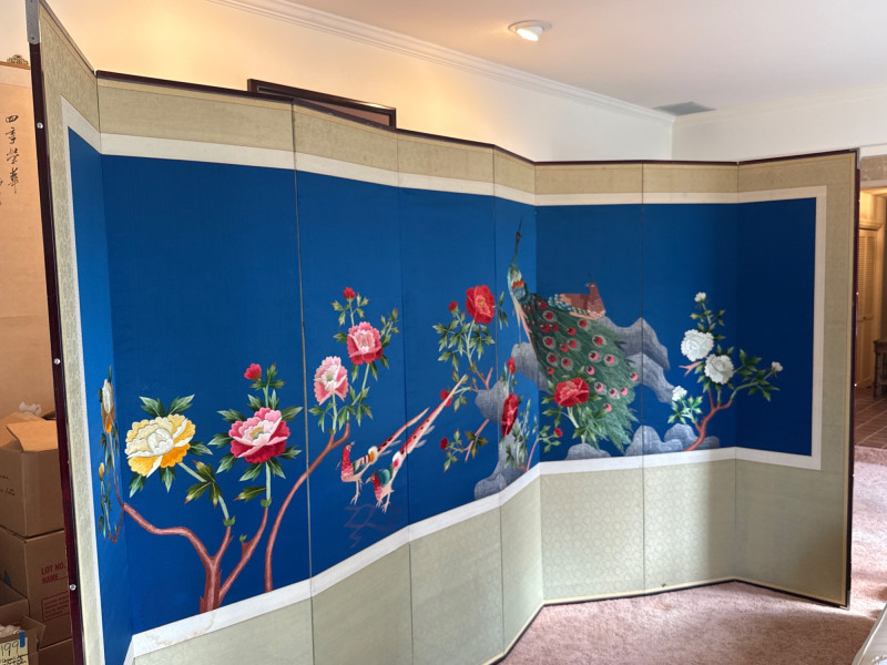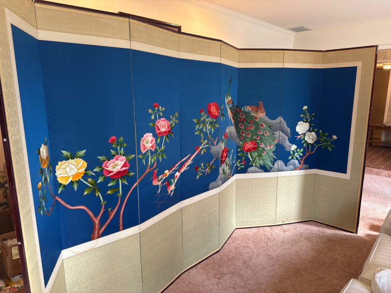 Lot # 133 - Stunning Eight-Panel Silk Embroidered Peacock & Floral Asian Screen