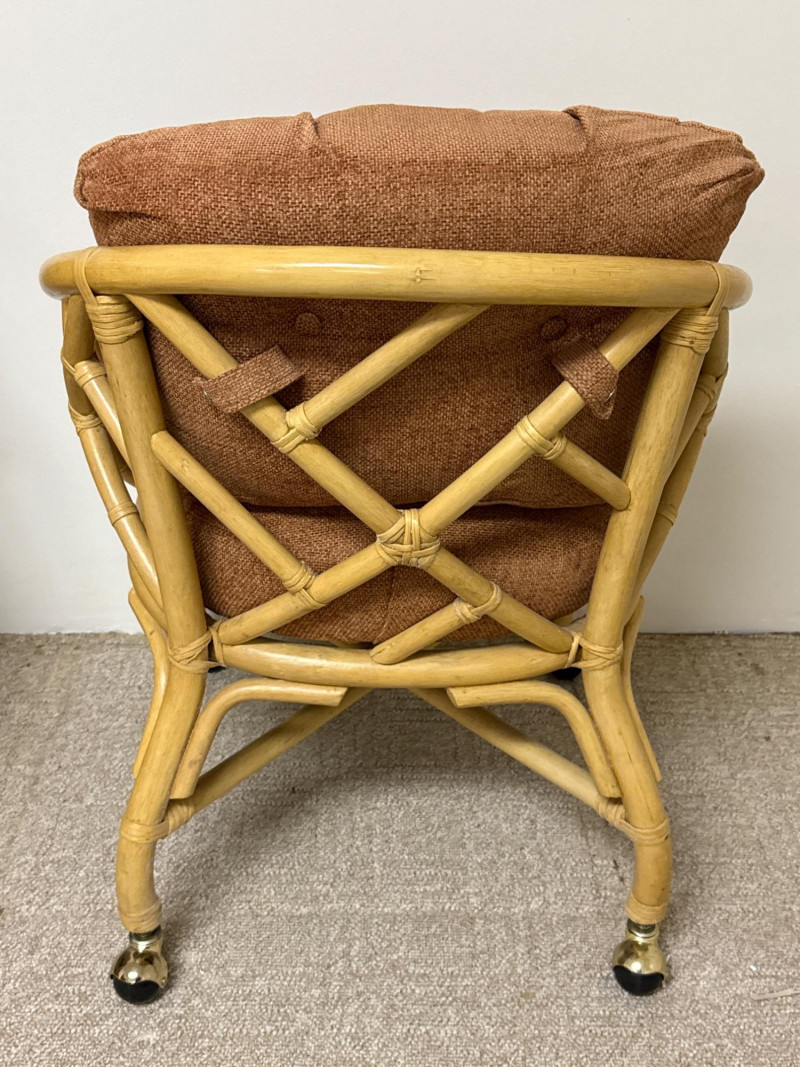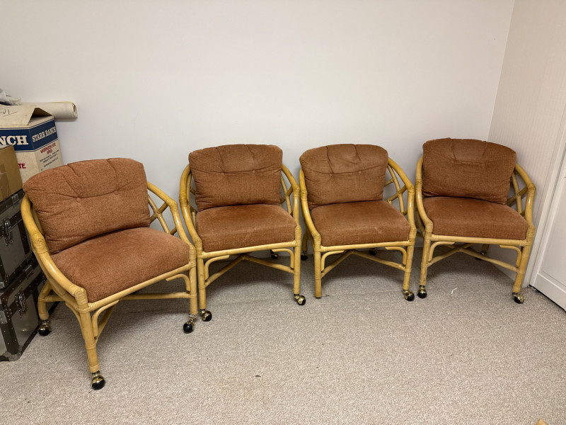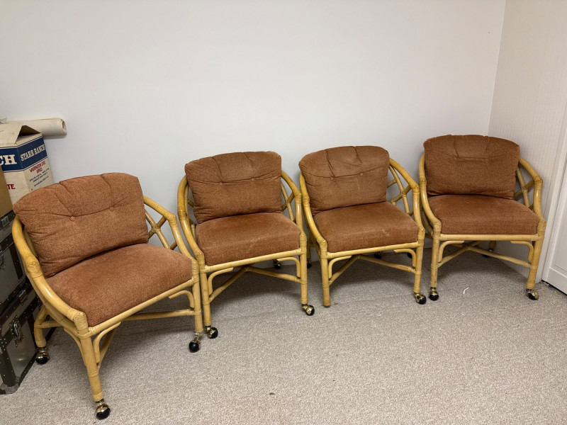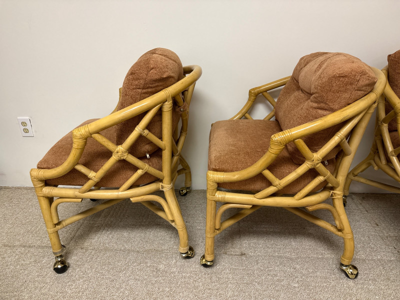 Lot # 220 - MCM Bamboo-Style Rolling Chairs – Set of 4 with Cushions