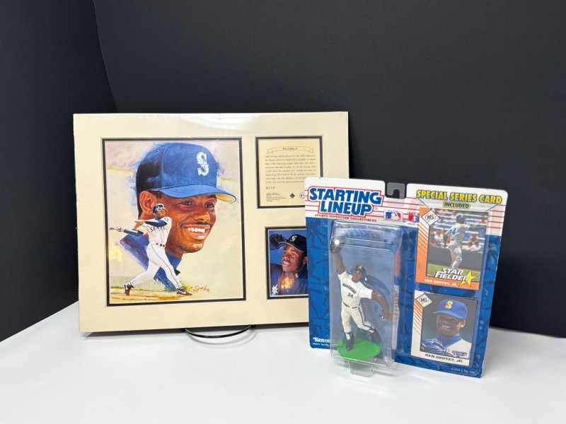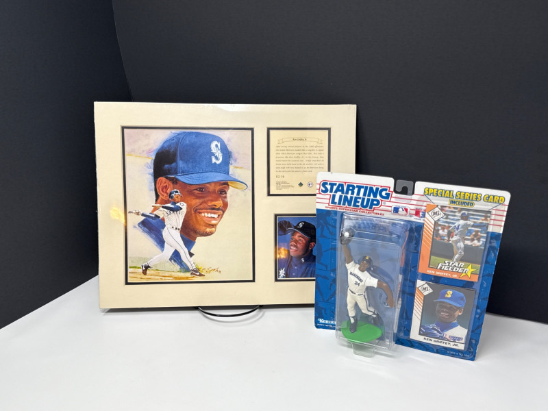 Lot # 4 - Ken Griffey Jr Seattle Mariners Art & Starting Lineup Action Figurine