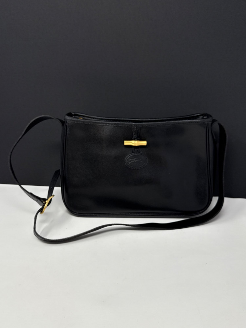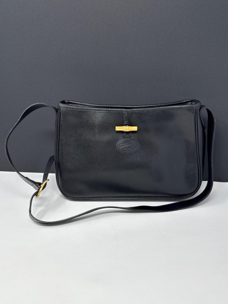 Longchamp Paris Black Leather Handbag Gently used condition *please note photos for more details
