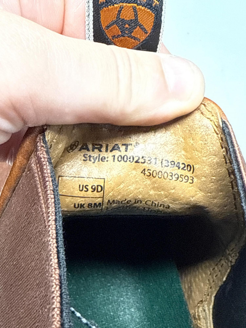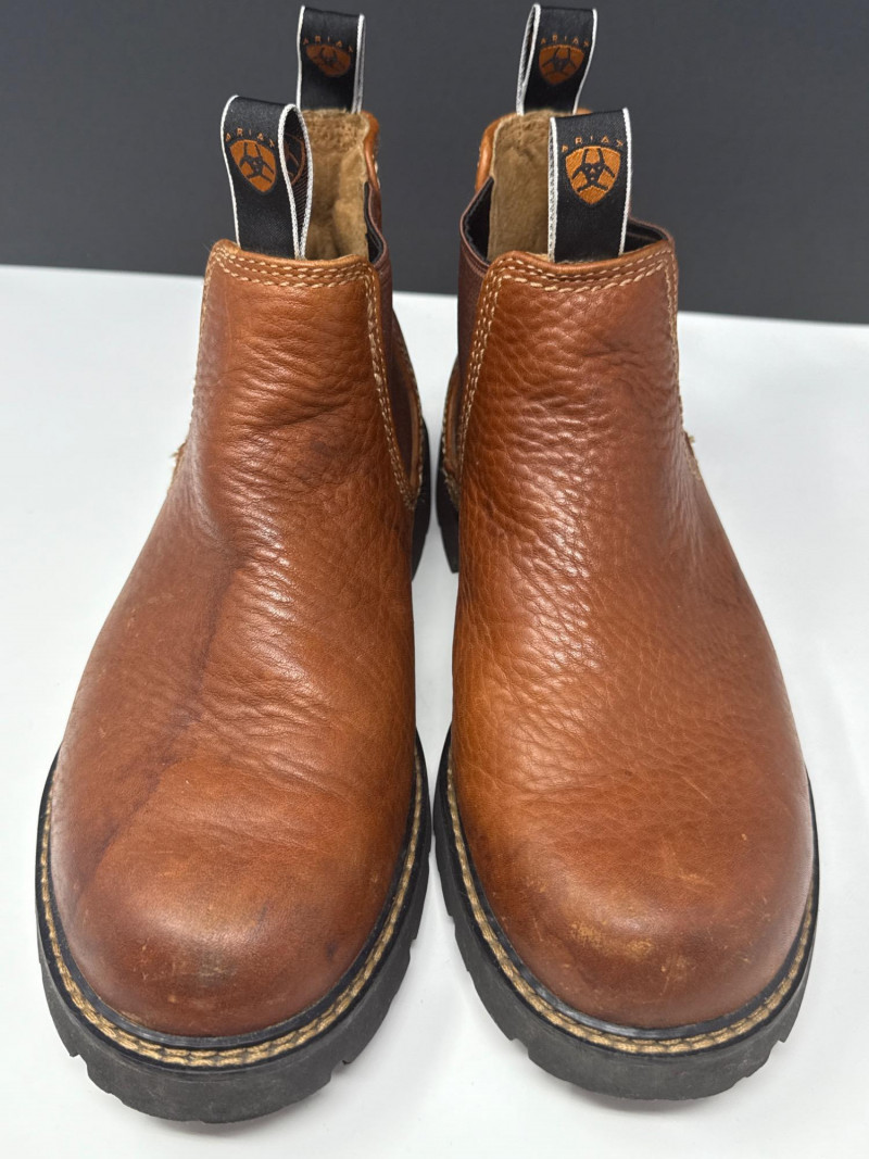 ARIAT Men's Cognac Leather Boots- Sz 9 *gently used condition. please note photos for more details.