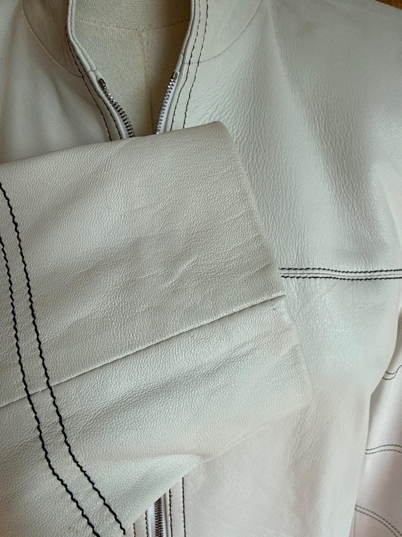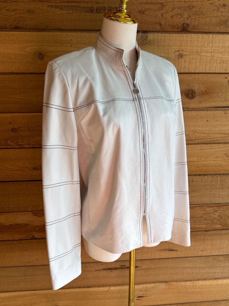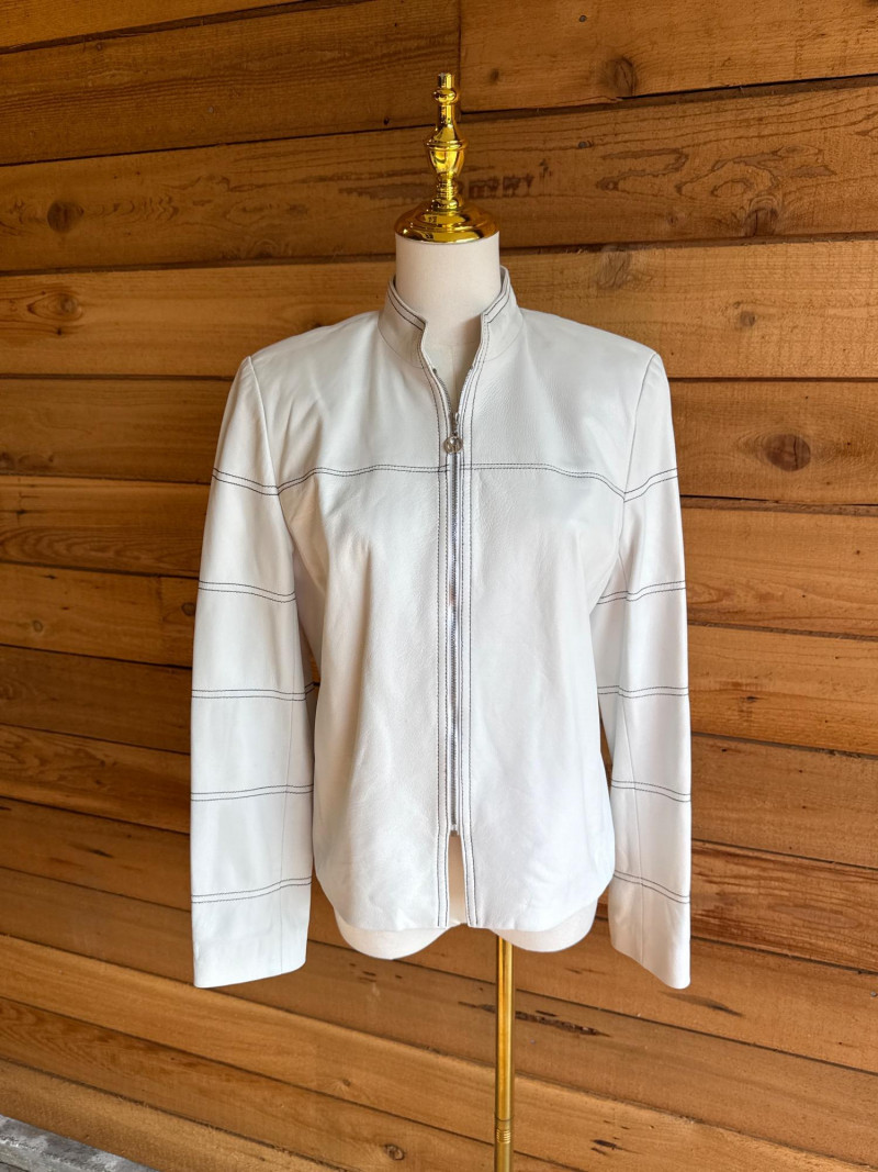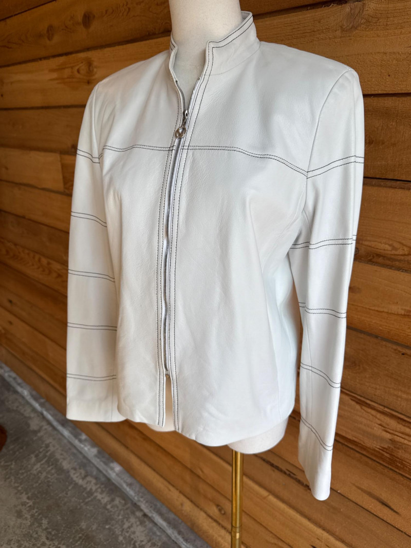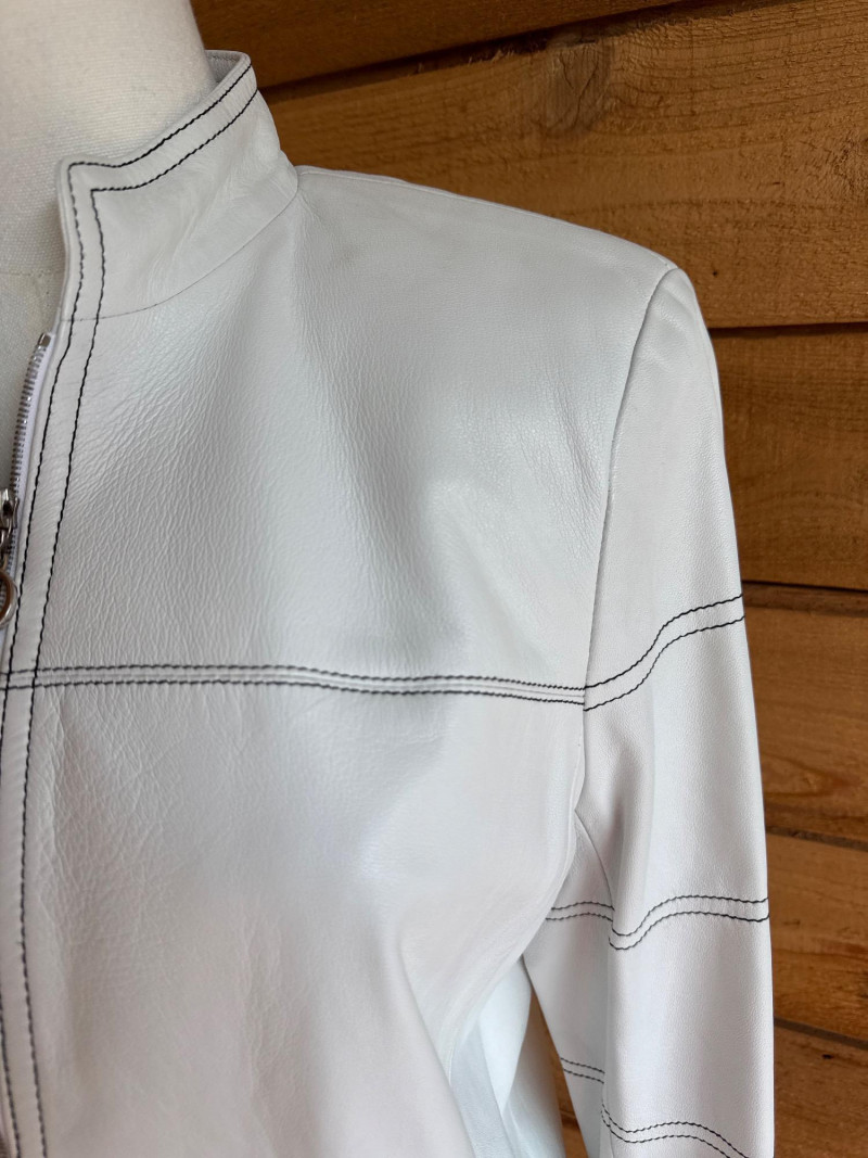 Lot # 59 - ST JOHN Sport White Leather Jacket- Sz S