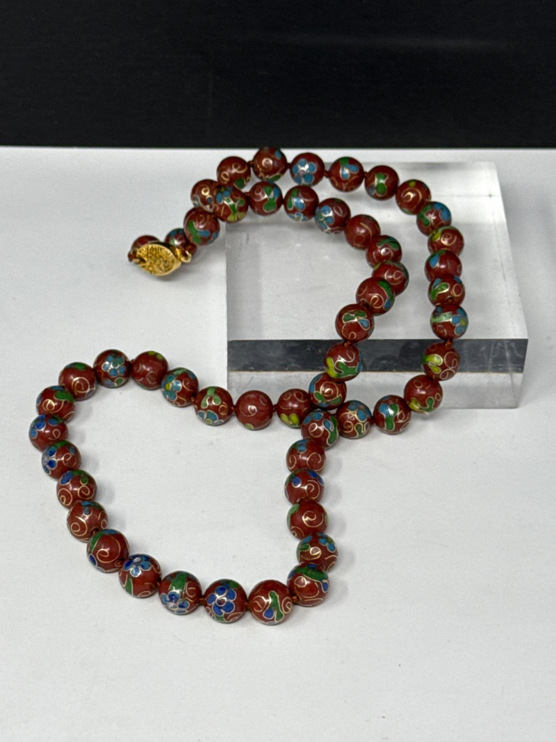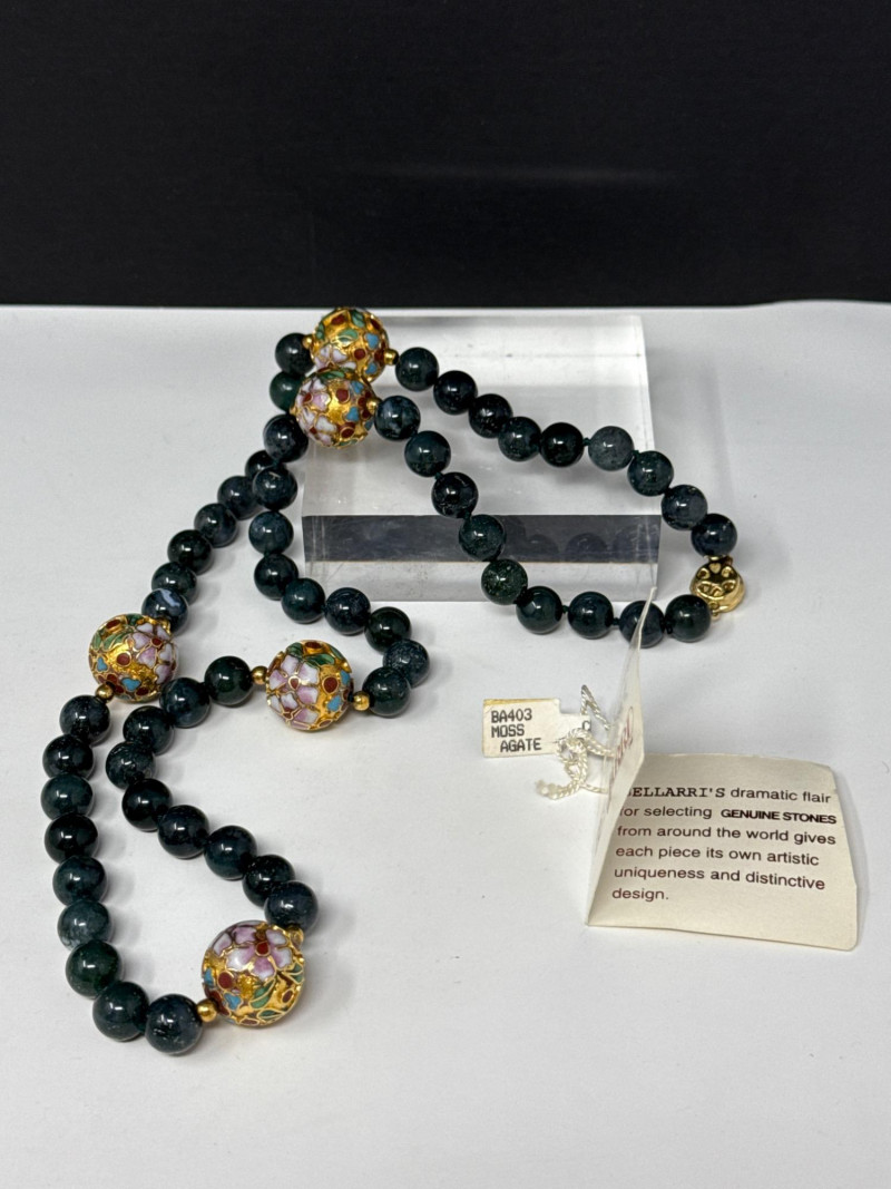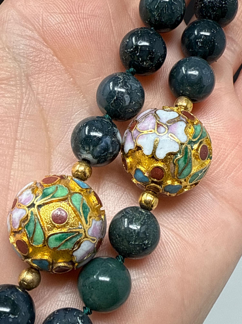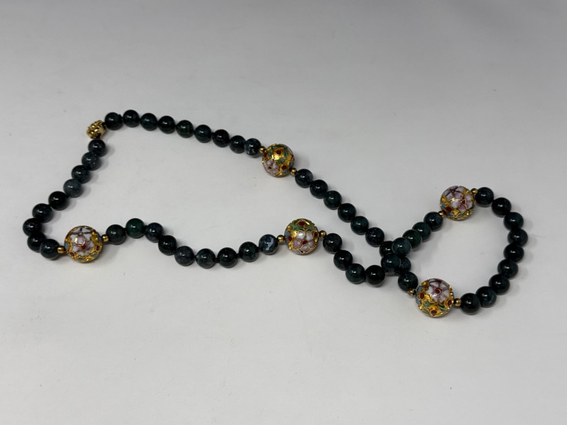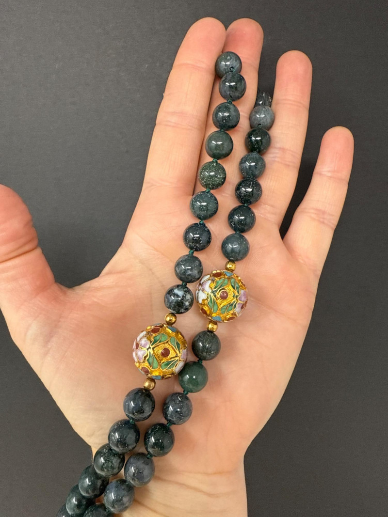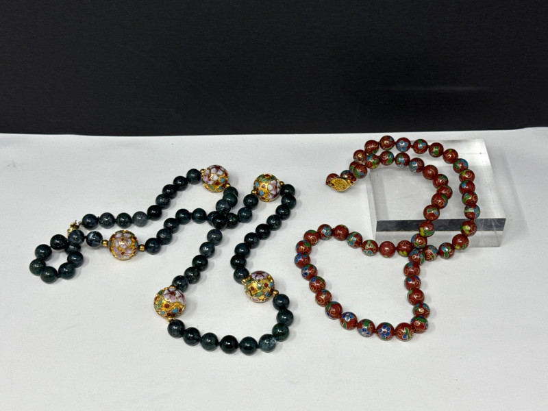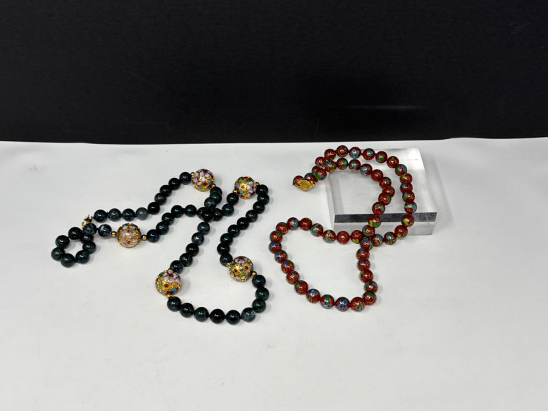 Lot # 20 - Moss Agate & Cloisonné Necklace Duo