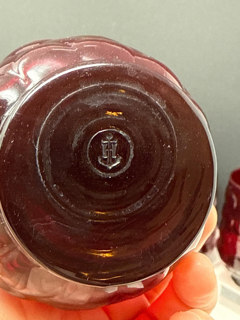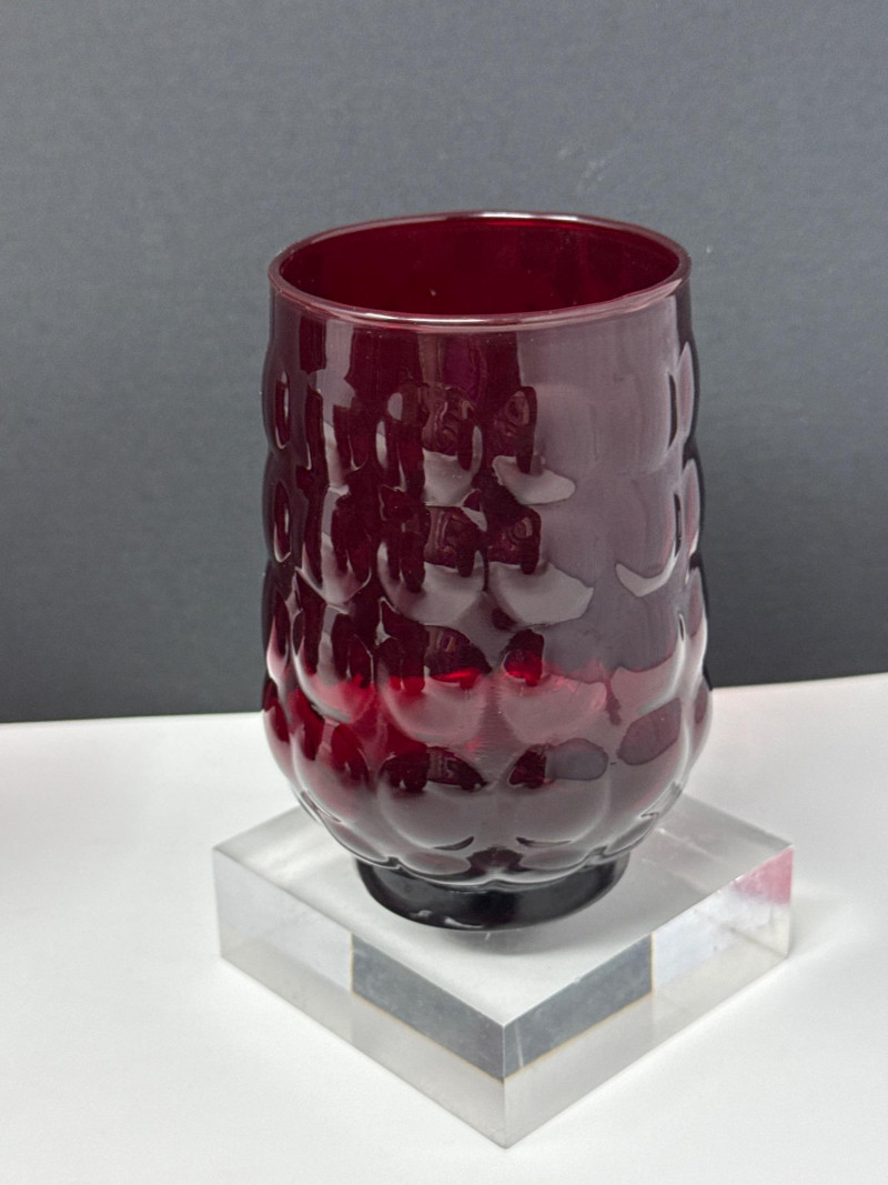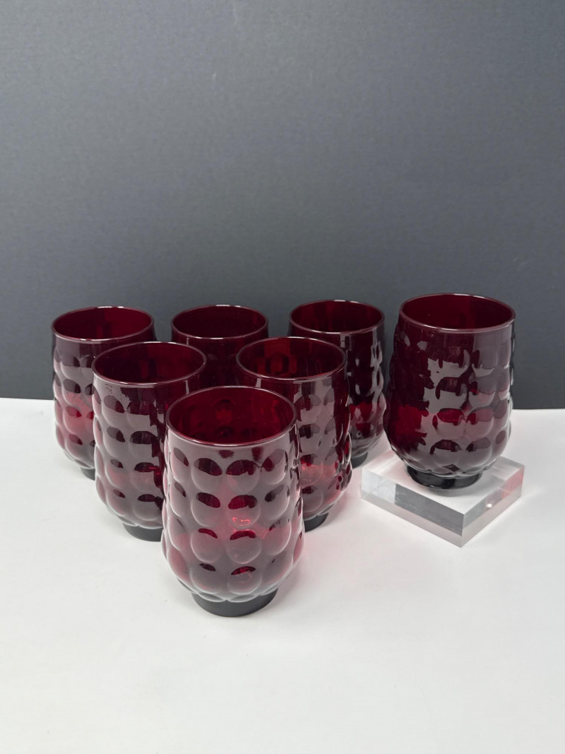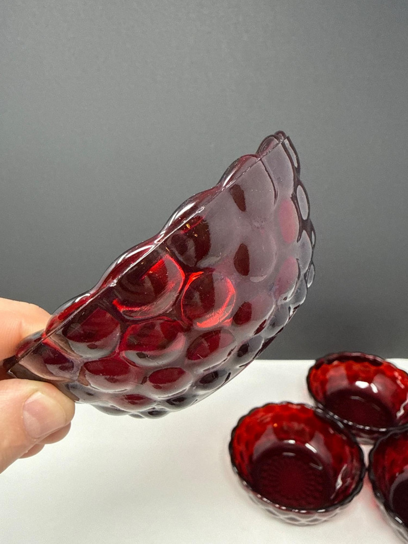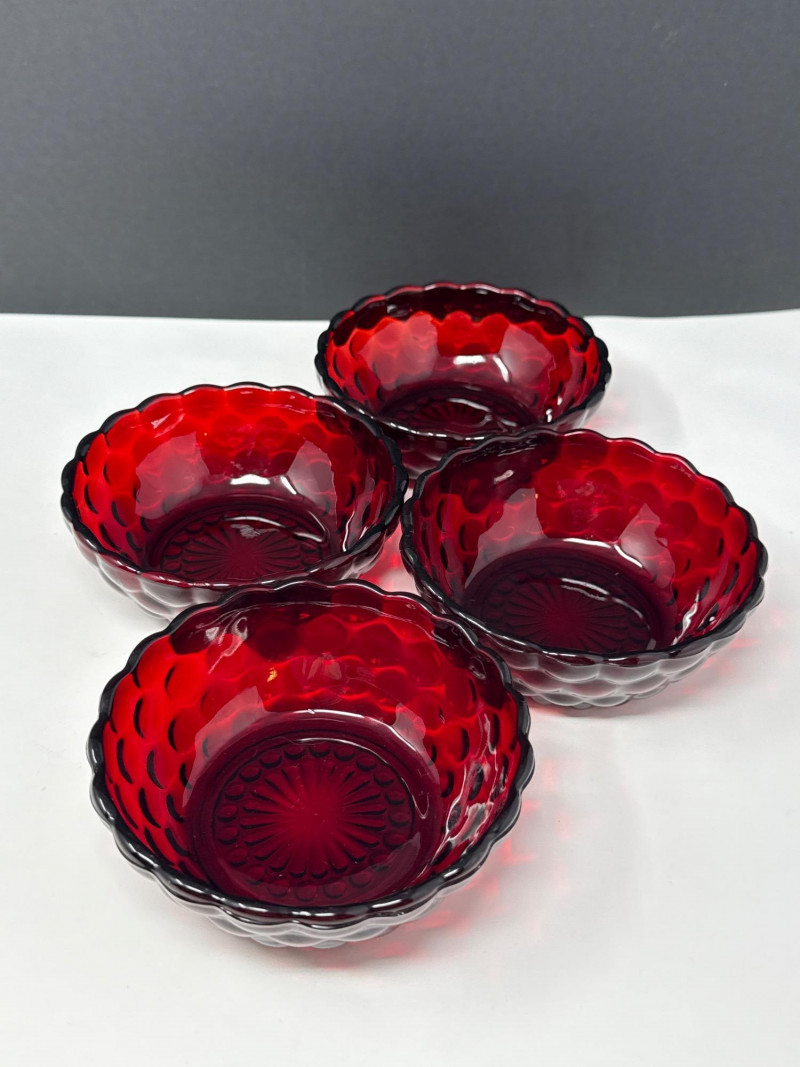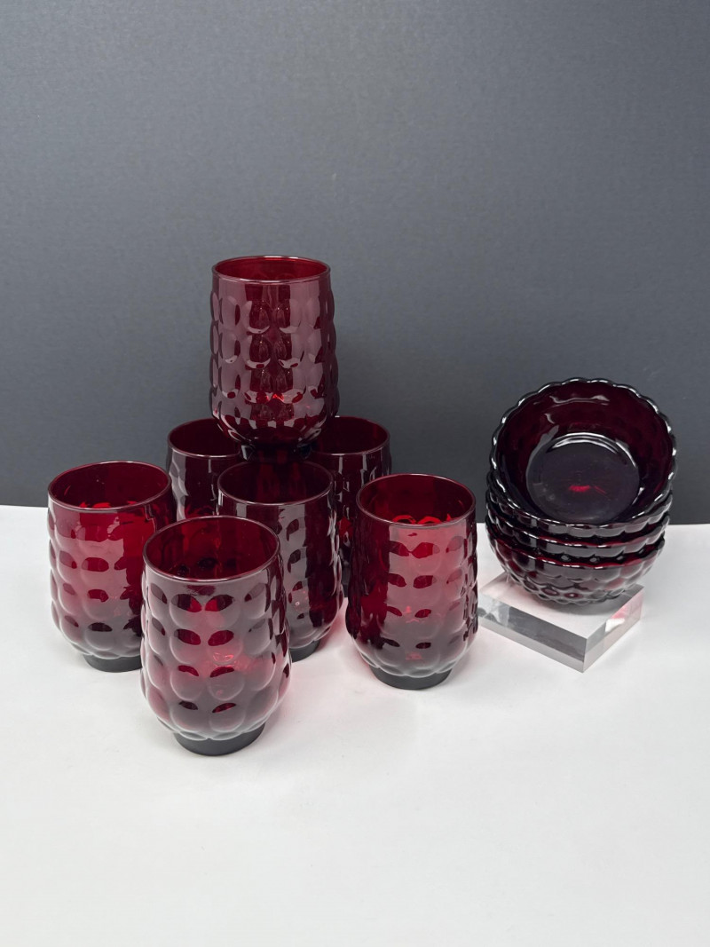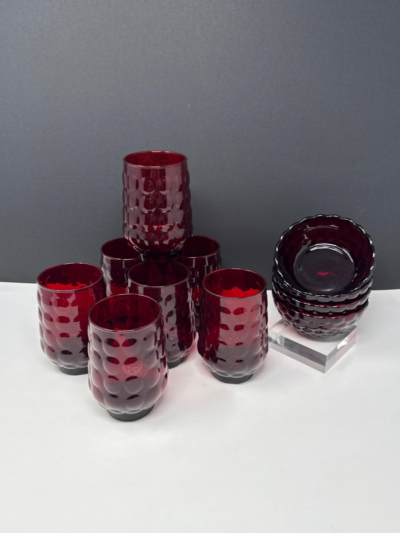 Vintage Red Anchor Hocking Hobnail Pattern 12 oz Glasses & Berry Bowls