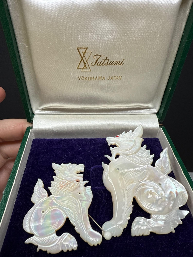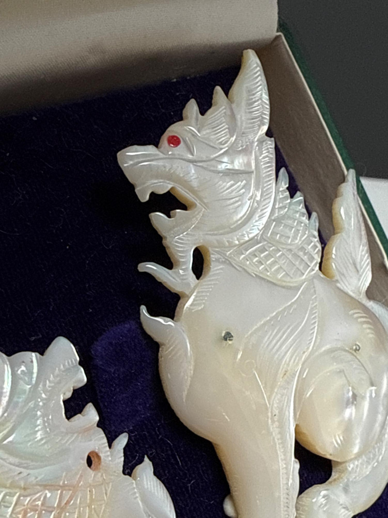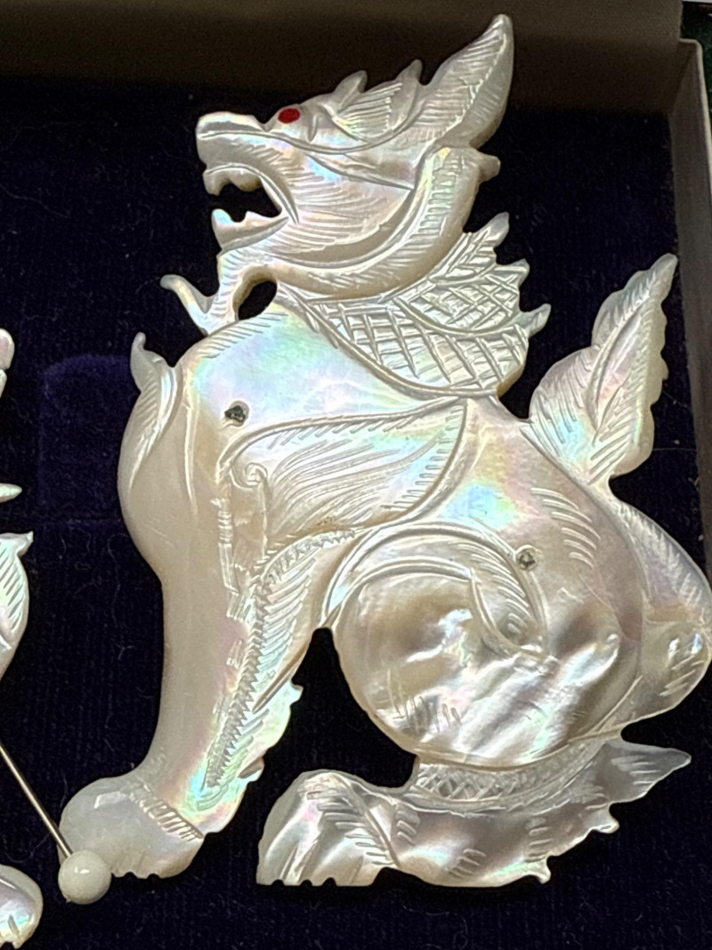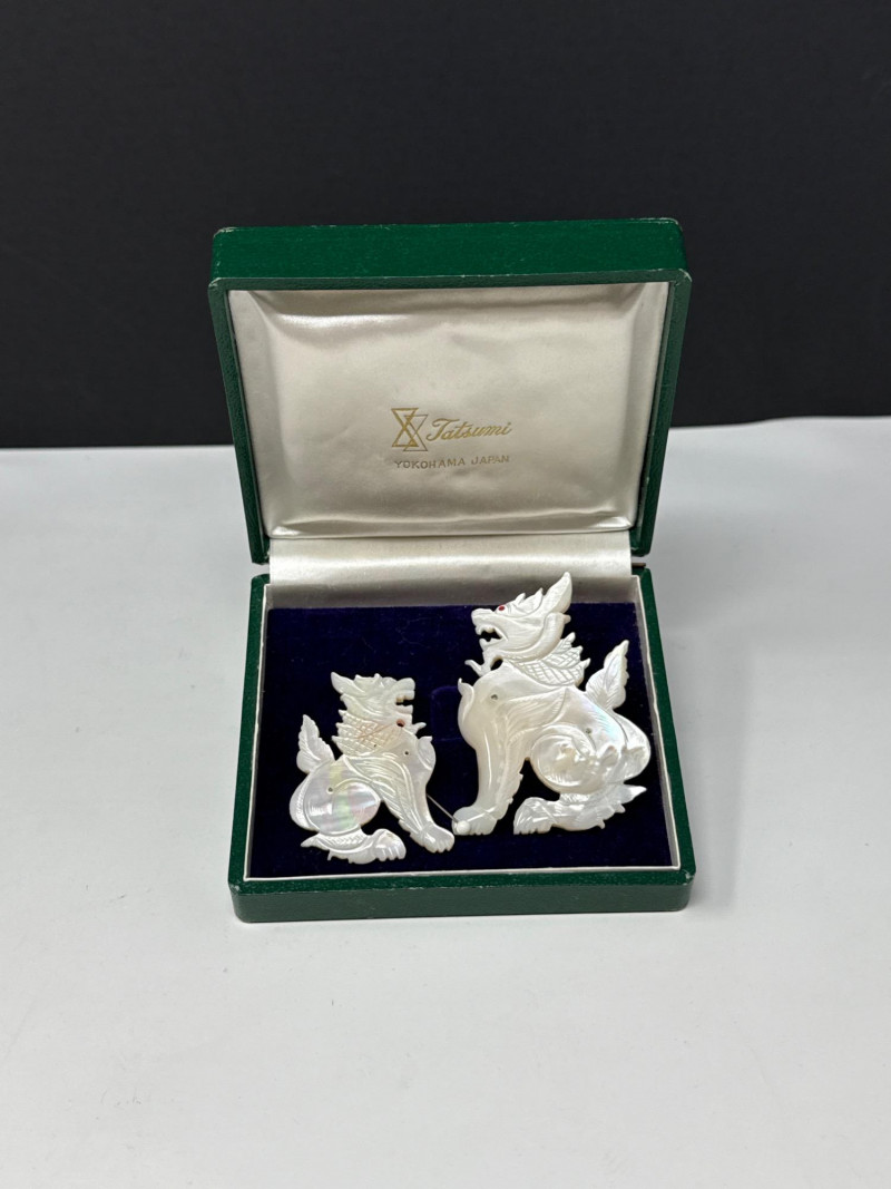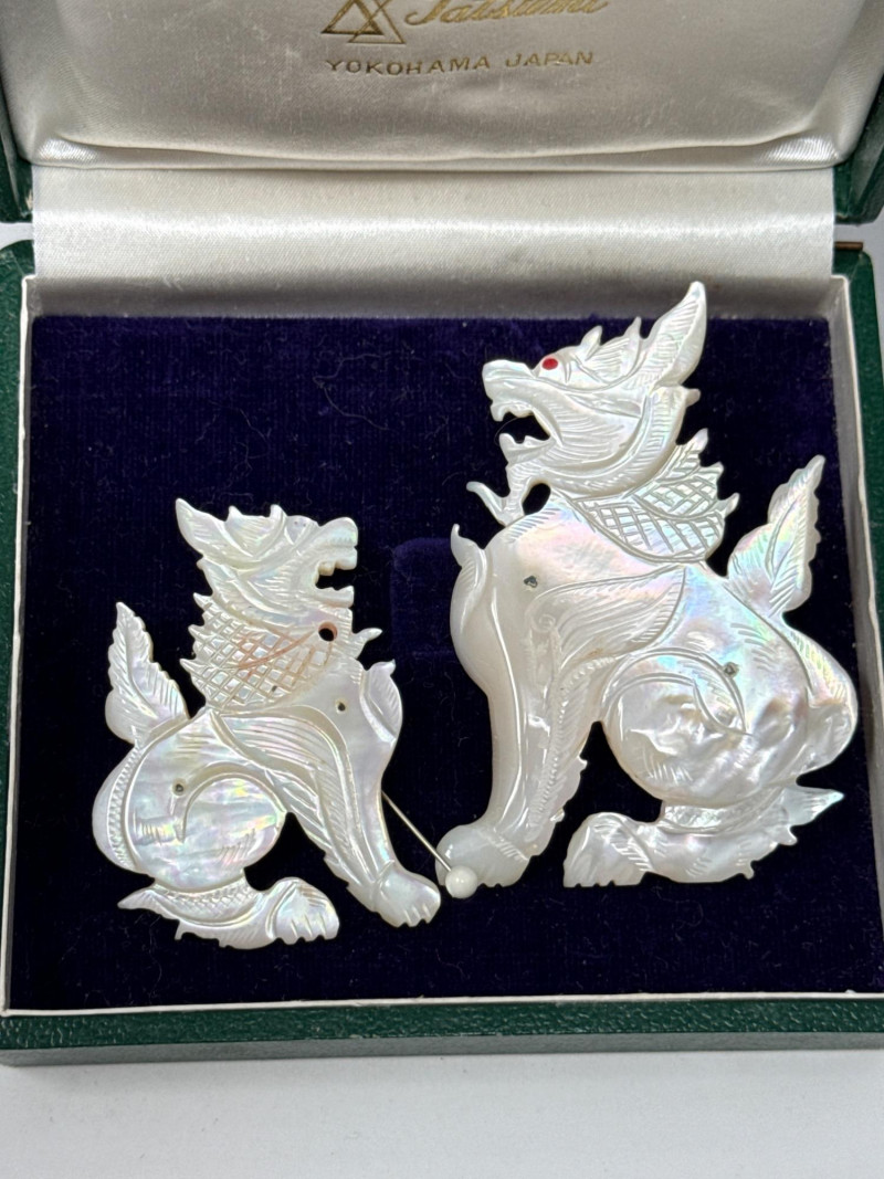 Antique Foo Dog "Mother Of Pearl" Brooches
