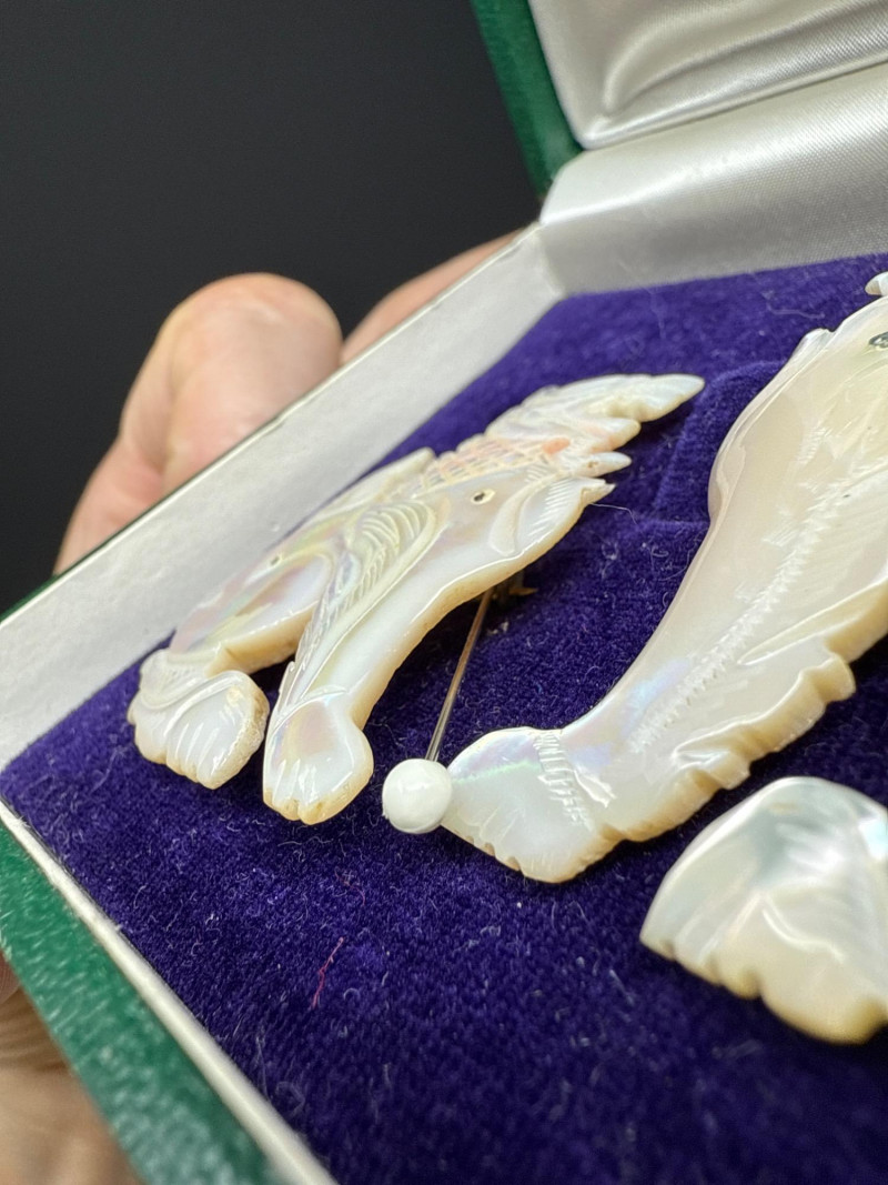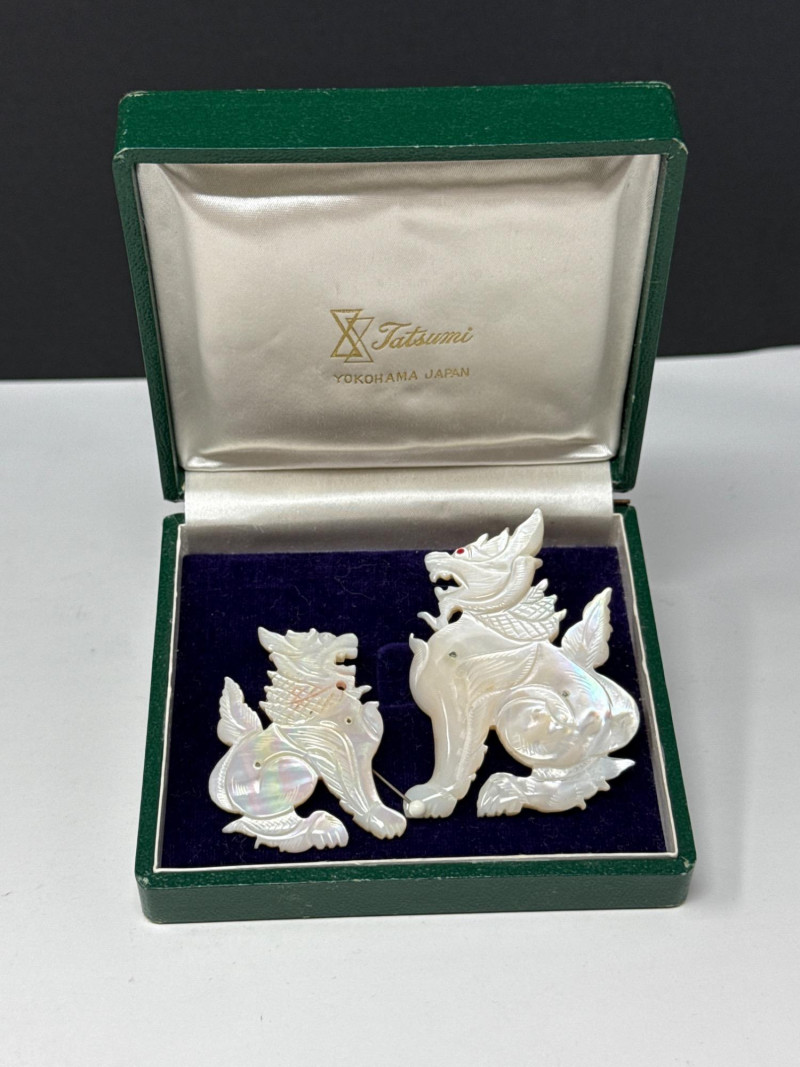 Lot # 30 - Antique Foo Dog "Mother Of Pearl" Brooches