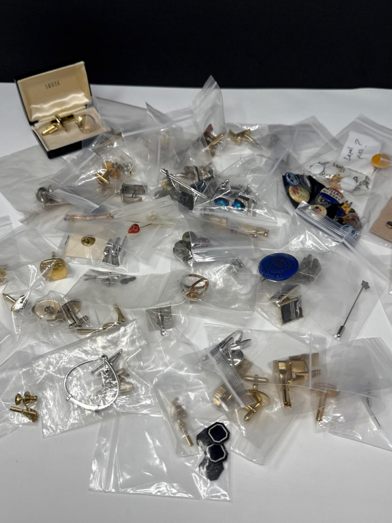Huge Lot! Vintage Cufflinks, Lapel Pins, Tie Pins & more Big assortment! Lots of treasures