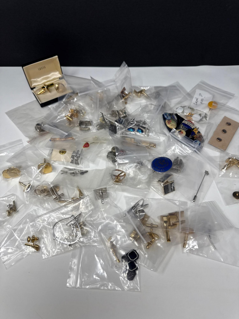 Lot # 47 - Huge Lot! Vintage Cufflinks, Lapel Pins, Tie Pins & more