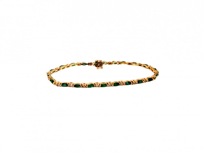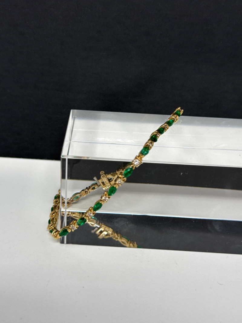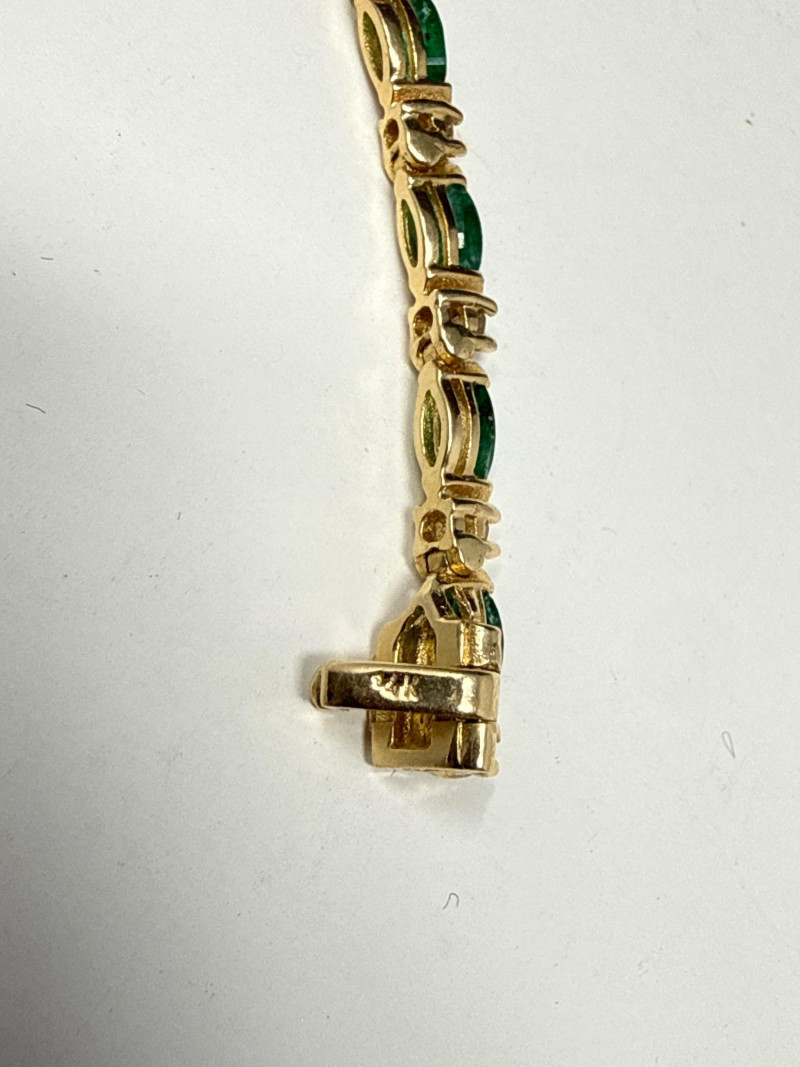 Lot # 4 - Vintage 14K Yellow Gold Emerald Navette & Round Diamond Bracelet- 9g