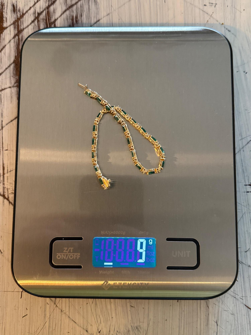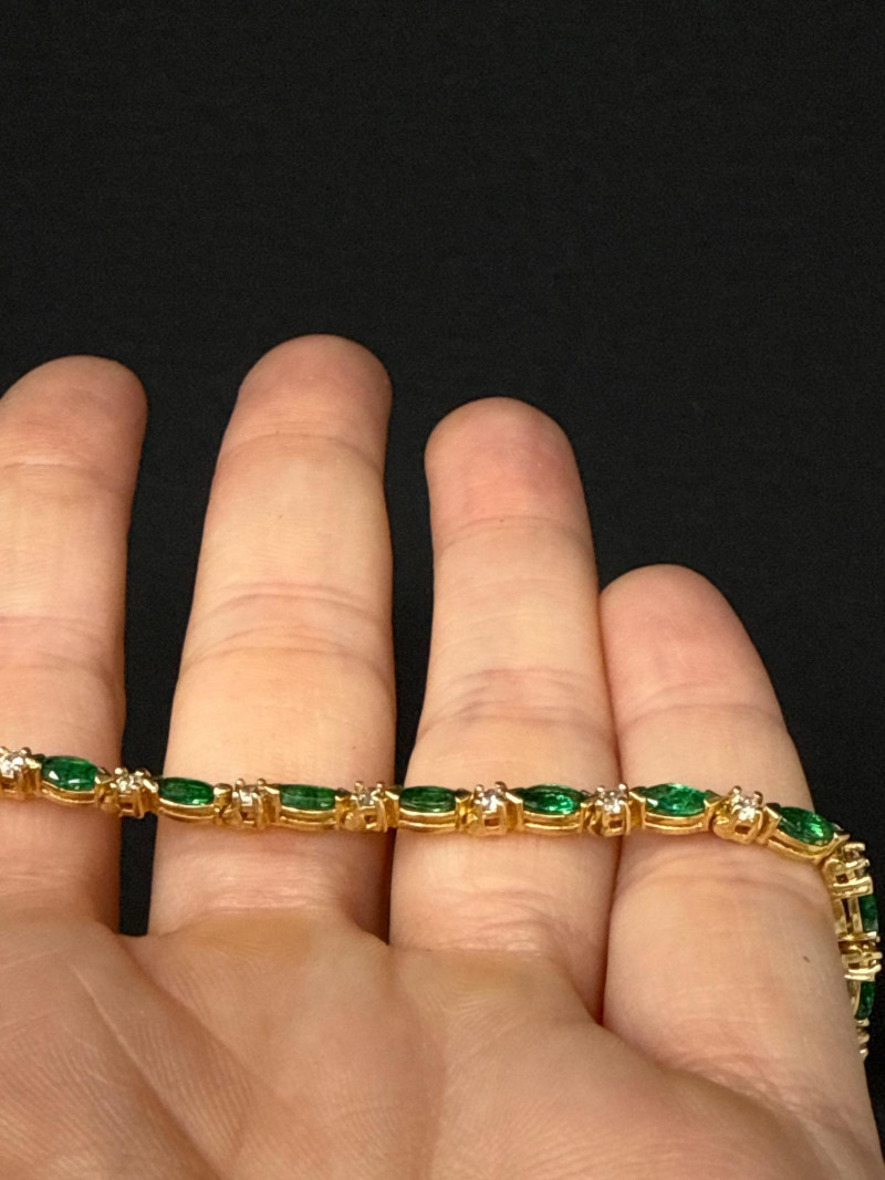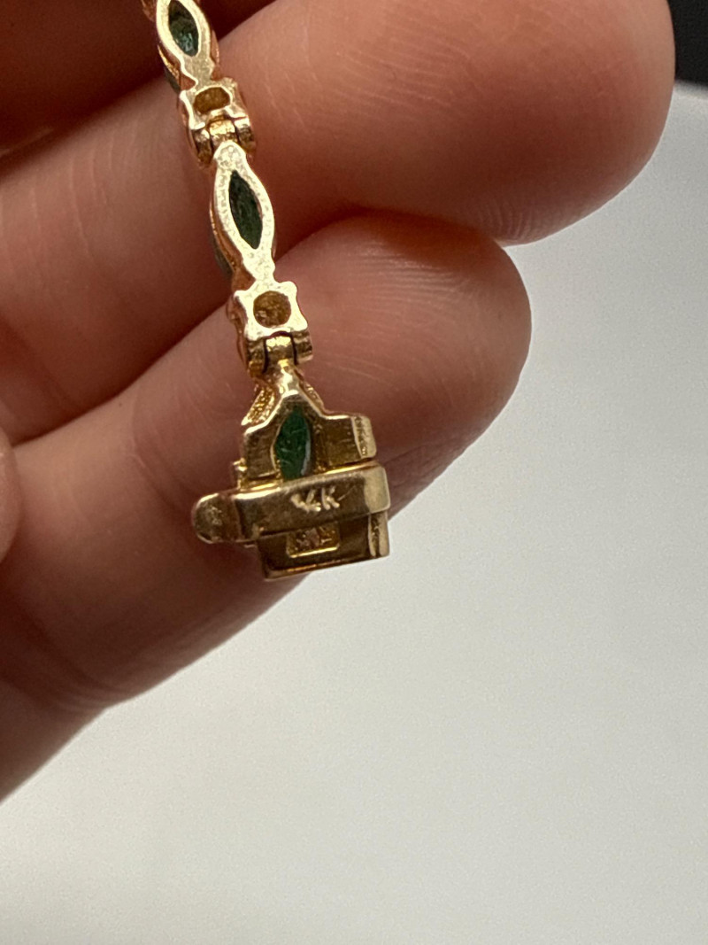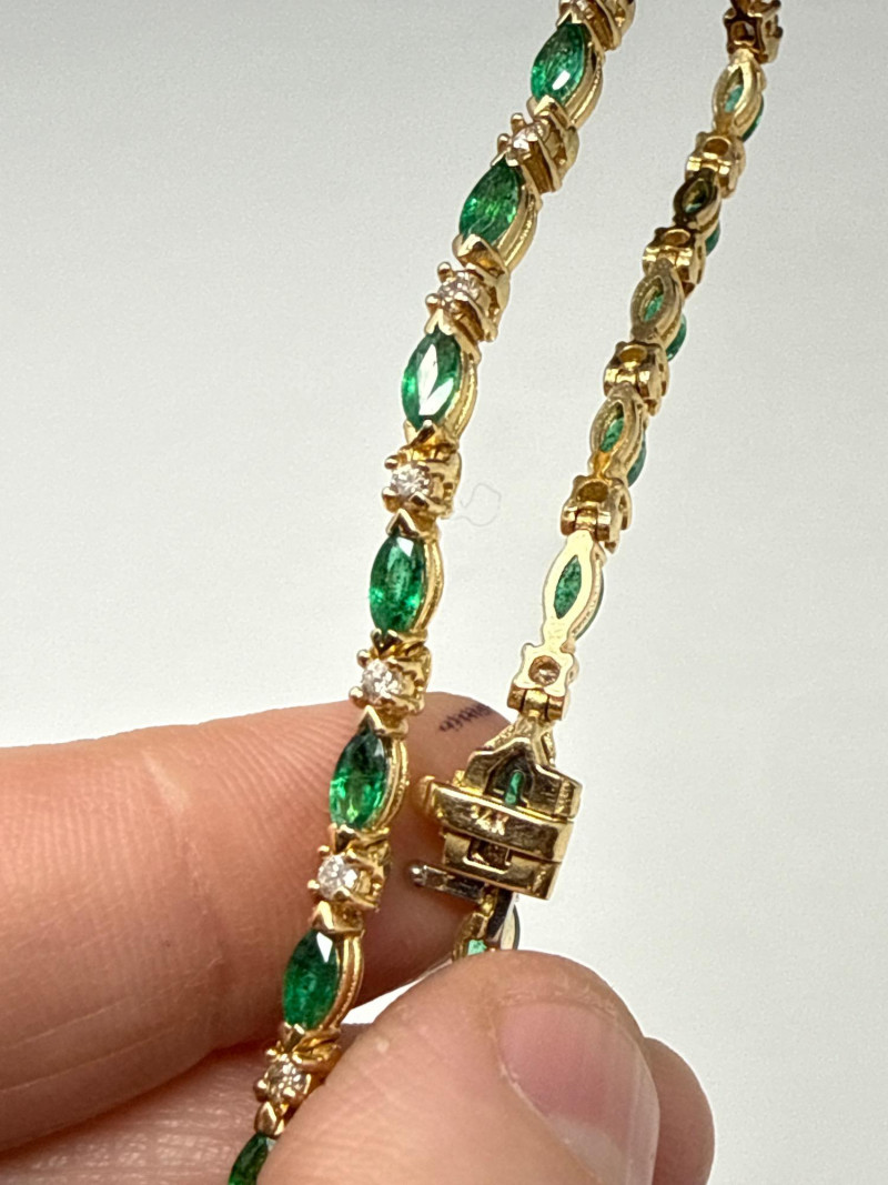 Vintage 14K Yellow Gold Emerald Navette & Round Diamond Bracelet- 9g Beautiful & in great shape 8” Long