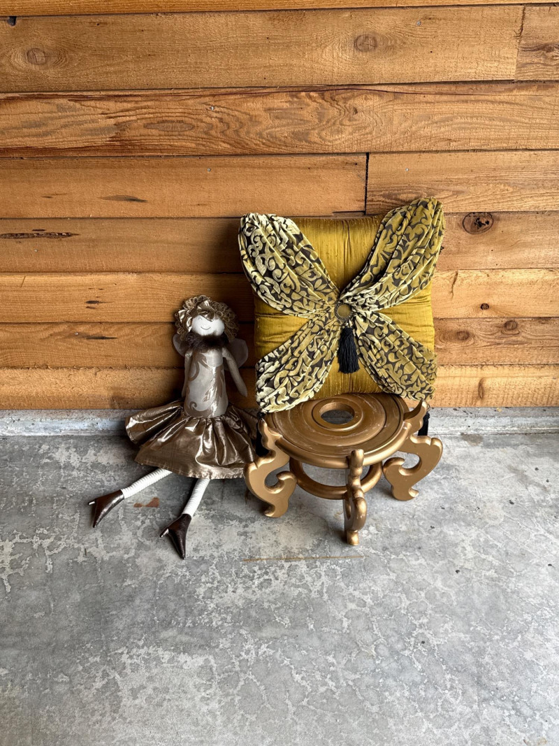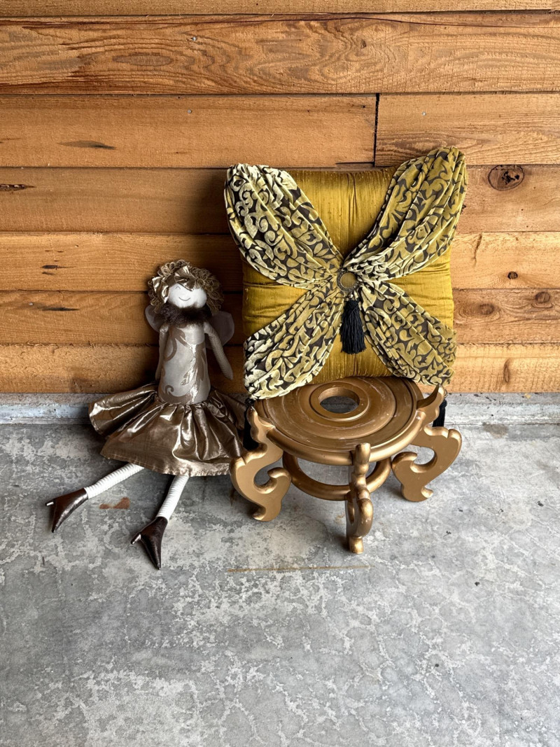Lot # 63 - Decor Lot- Pillow, Doll & Plant Stand