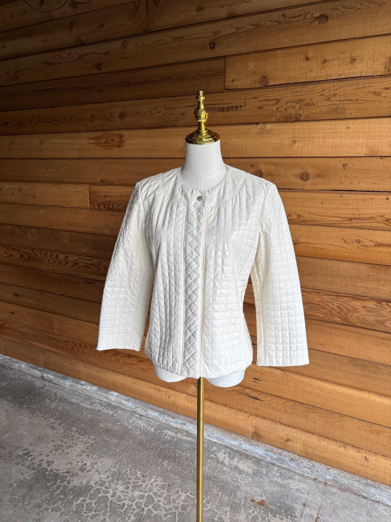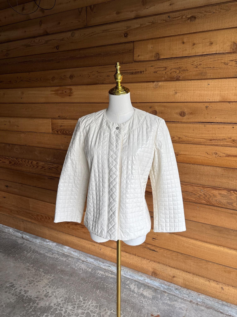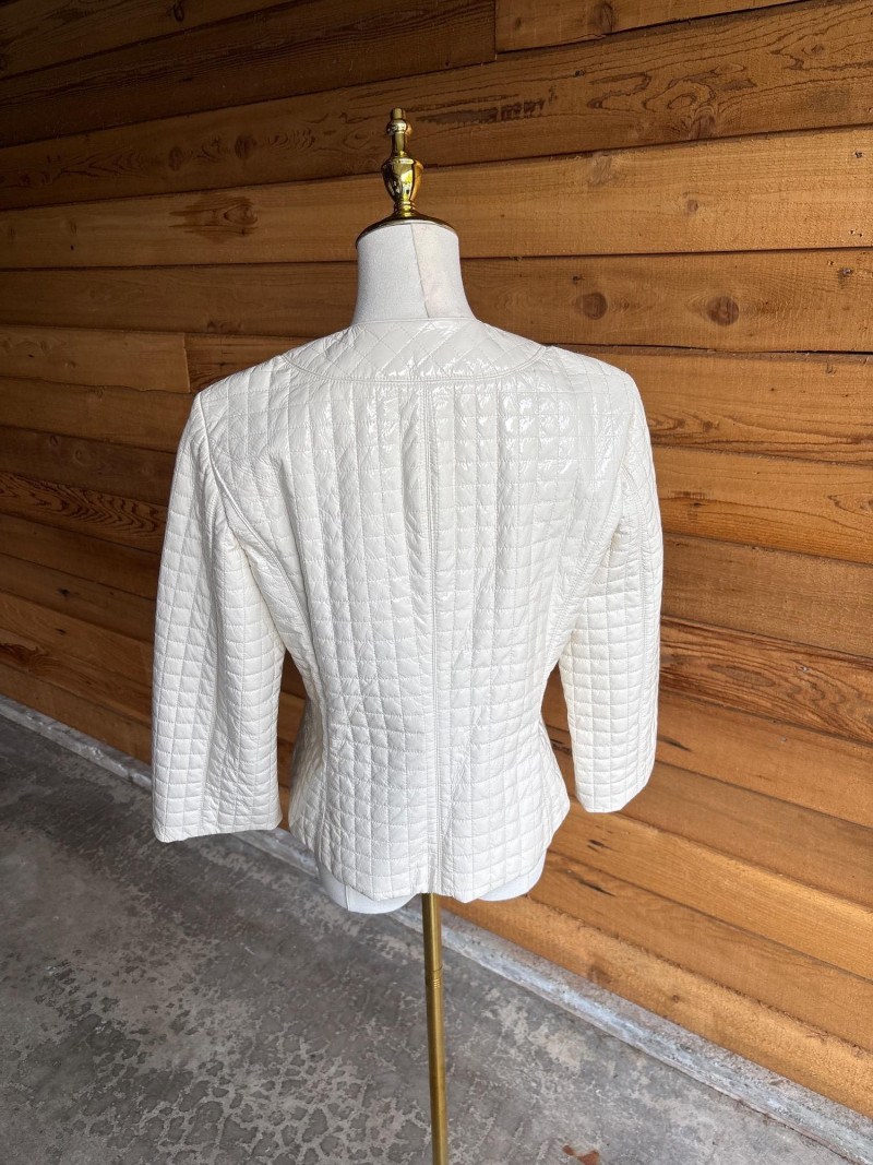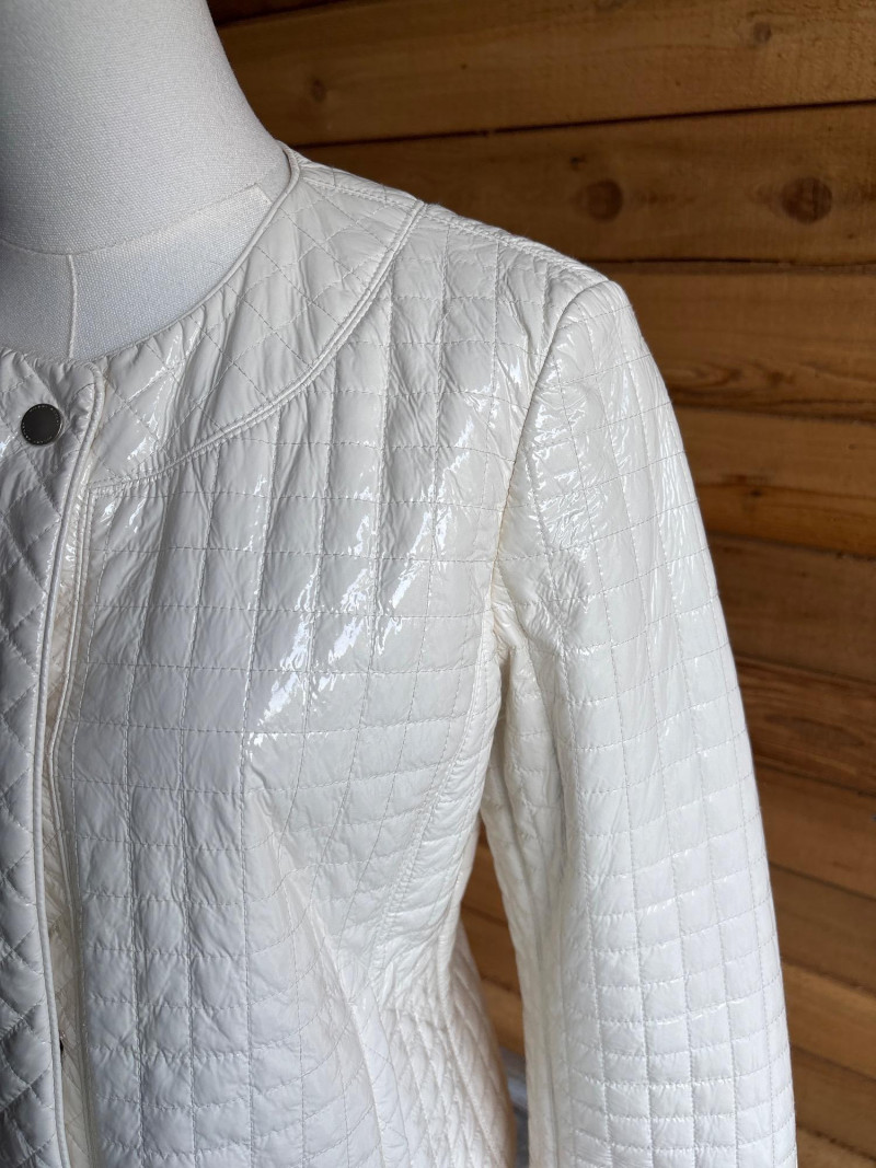 Lot # 66 - HILARY RADLEY Shiny White Quilted Jacket- Sz S