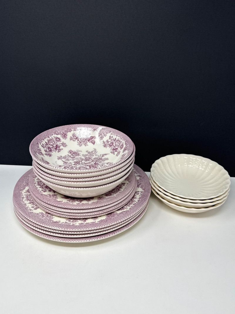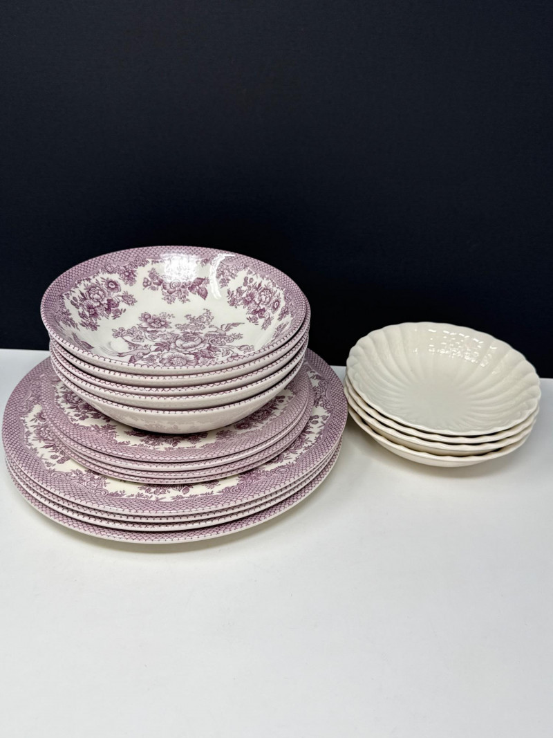 Lot # 80 - Spode Basketweave & Purple Royal Stafford Dishes