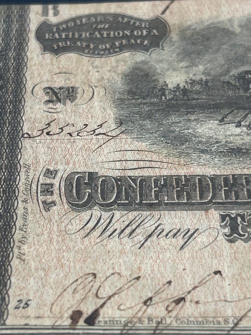 Collector Notes: Confederate currency is prized not for its monetary value, but for its historical resonance. This note, issued just months before the Confederacy’s collapse, reflects both desperation and artistry. Ideal for Civil War collectors, numismatists, or those curating Americana ephemera.