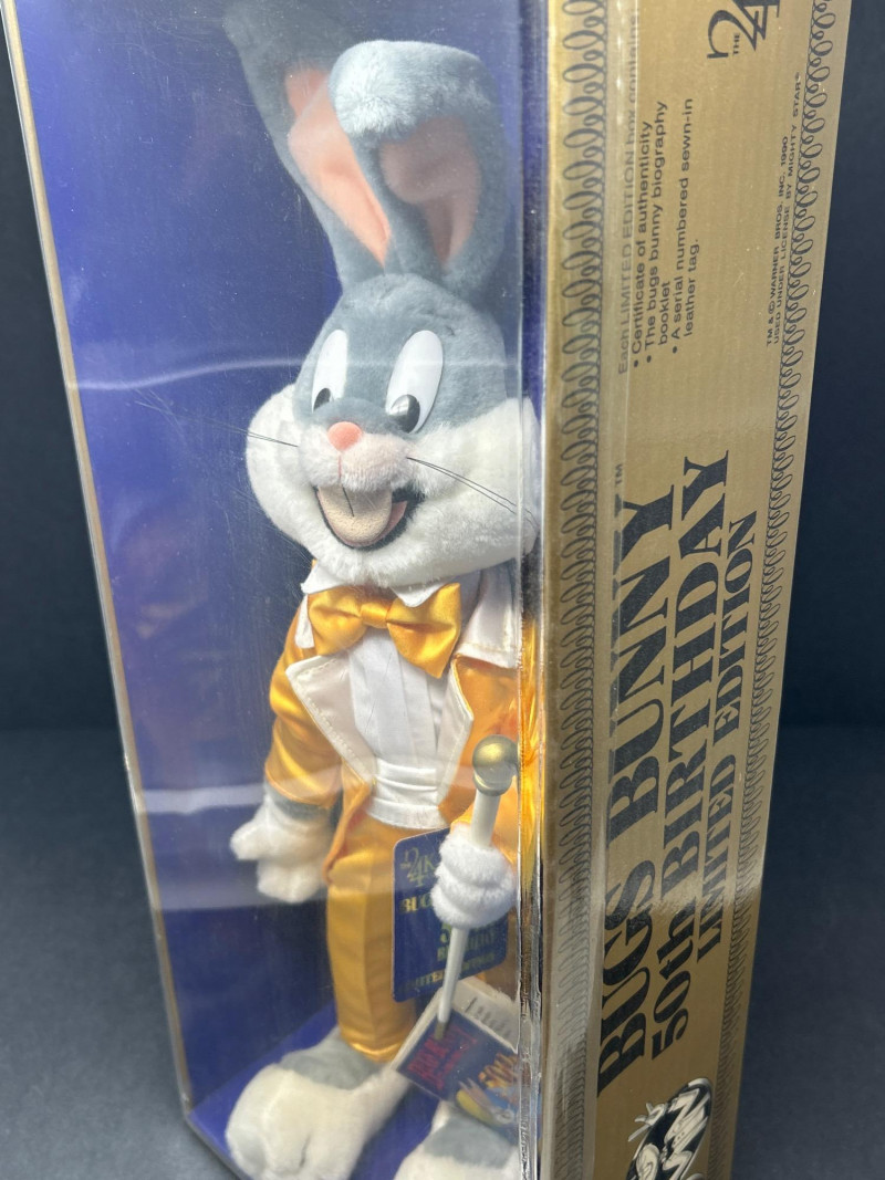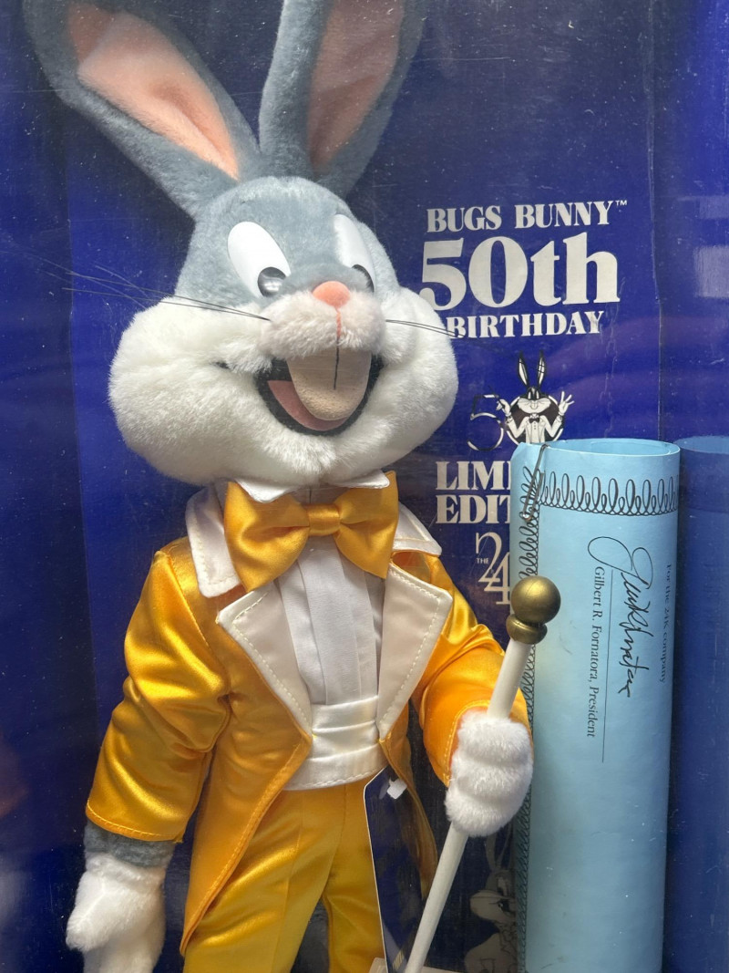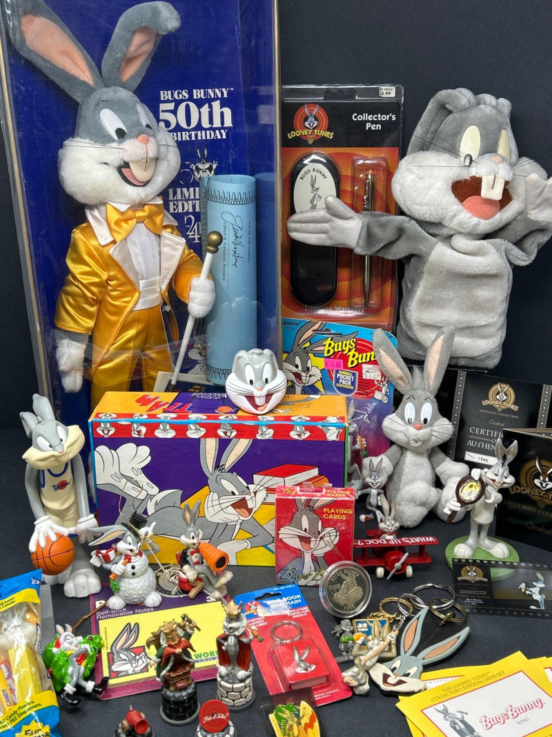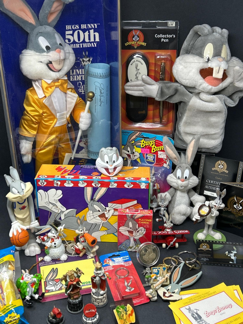 An expansive, officially licensed Bugs Bunny collection spanning plush toys, figurines, novelty items, and rare commemoratives — ideal for animation enthusiasts, Looney Tunes fans, or pop-culture collectors seeking a ready-made showcase. Limited Edition 50th Birthday Plush