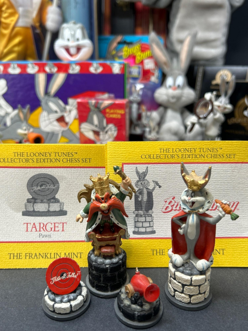 Inspired by Rabbit of Seville, boxed with Certificate of Authenticity. A charming ceramic tribute to Bugs’ operatic antics. Franklin Mint Collector’s Chess Pieces