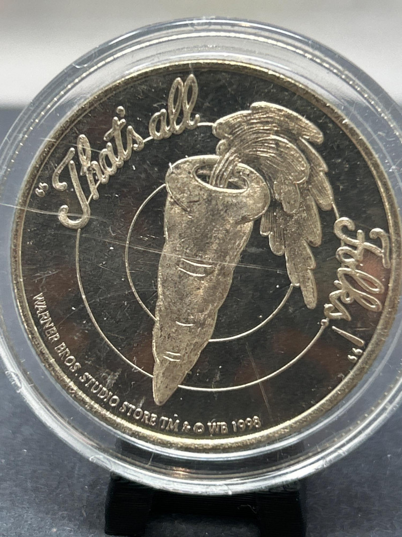 Bugs Bunny pen with matching case, sealed on original card ($14.99 MSRP). A nostalgic WB Store collectible. 1998 Bugs Bunny Commemorative Coin / Medallion