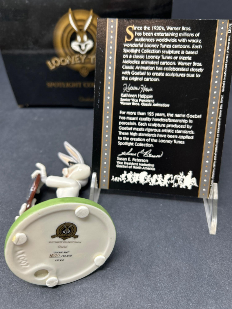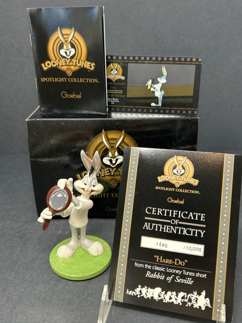 Warner Bros. boxed plush featuring Bugs in a gold tuxedo with cane and commemorative scroll. A celebratory release marking his iconic milestone. Goebel “Hare-Do” Figurine (#1600/10,098)