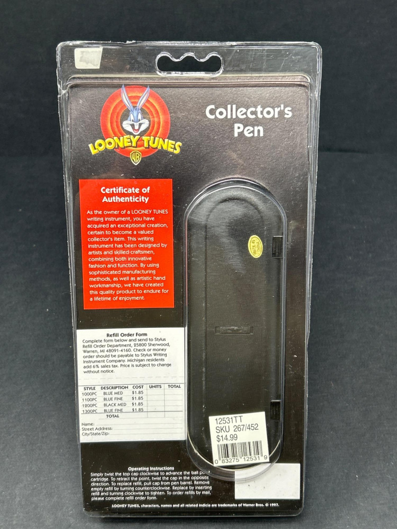 Includes Bugs Bunny as king, Target pawn, and “That’s All Folks!” cannon base. Intricately sculpted, part of the Looney Tunes chess series. Looney Tunes Pen Set