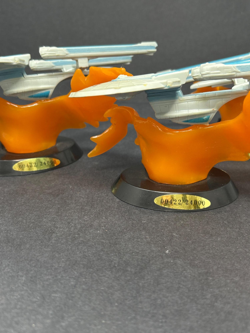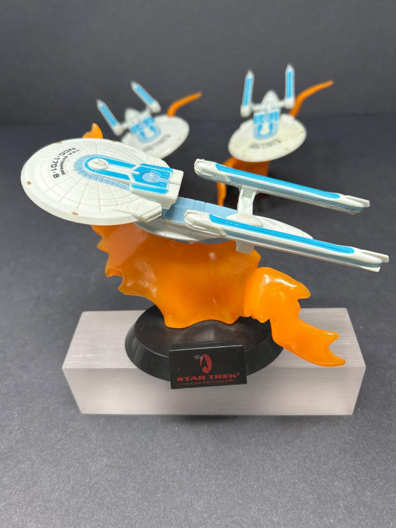Edition Size: Enterprise-B models limited to 24,000 worldwide Released in the early 1990s to commemorate the cinematic debut of Star Trek: Generations, this set bridges the legacy of The Next Generation with the feature film era. Complete crew groupings with original licensed bases are increasingly rare, and low-number Enterprise-B editions enhance display and investment value.Collecting Insight: