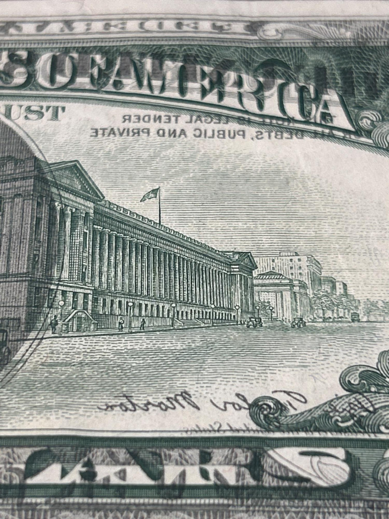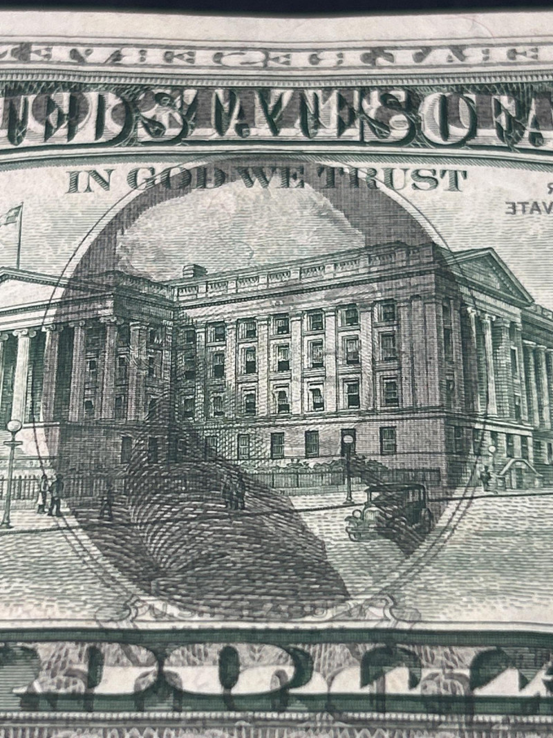 Design: U.S. Treasury Building (back) Collector Notes Full offset transfers are scarce compared to partial or faint examples. Popular among error note collectors and those specializing in U.S. paper money printing mistakes. Strong eye appeal thanks to the complete, dark transfer of the back design.
