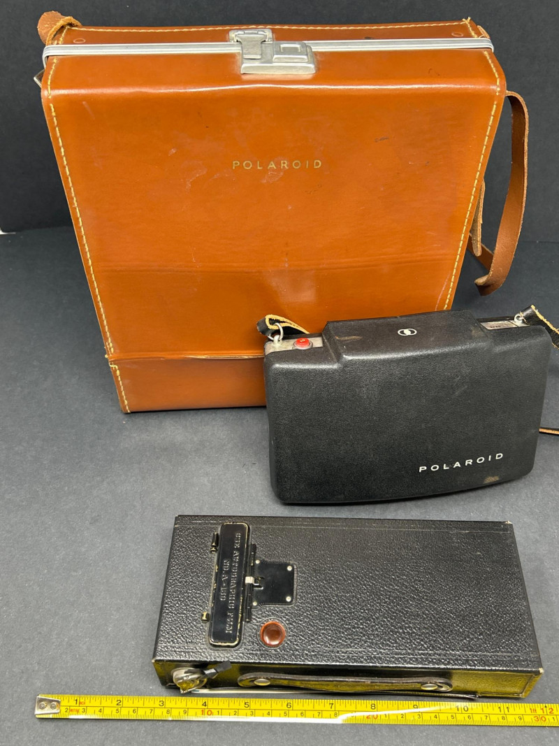 Lot # 47 - Vintage Camera Trio – Polaroid Land Cameras & Kodak No.2C