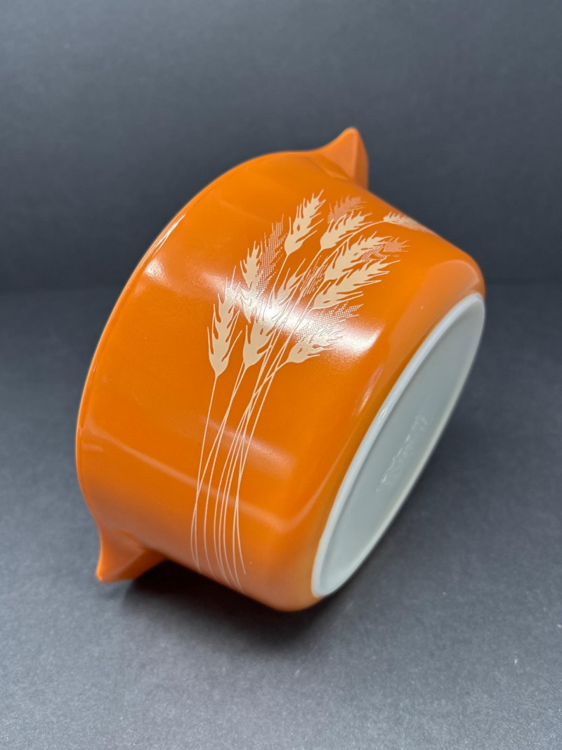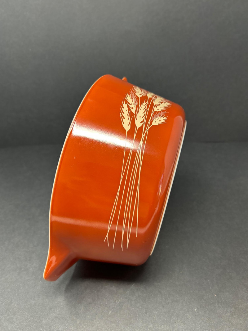 The Pyrex Autumn Harvest Wheat line is prized for its rustic farmhouse charm and enduring utility. Paired with the Brockway Nouveau bowl’s elegant amber glow, this set offers both function and visual appeal—perfect for collectors, stylists, or vintage kitchen enthusiasts.