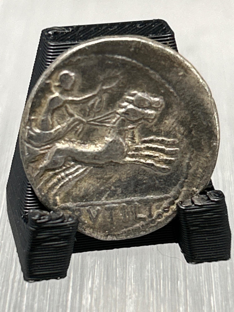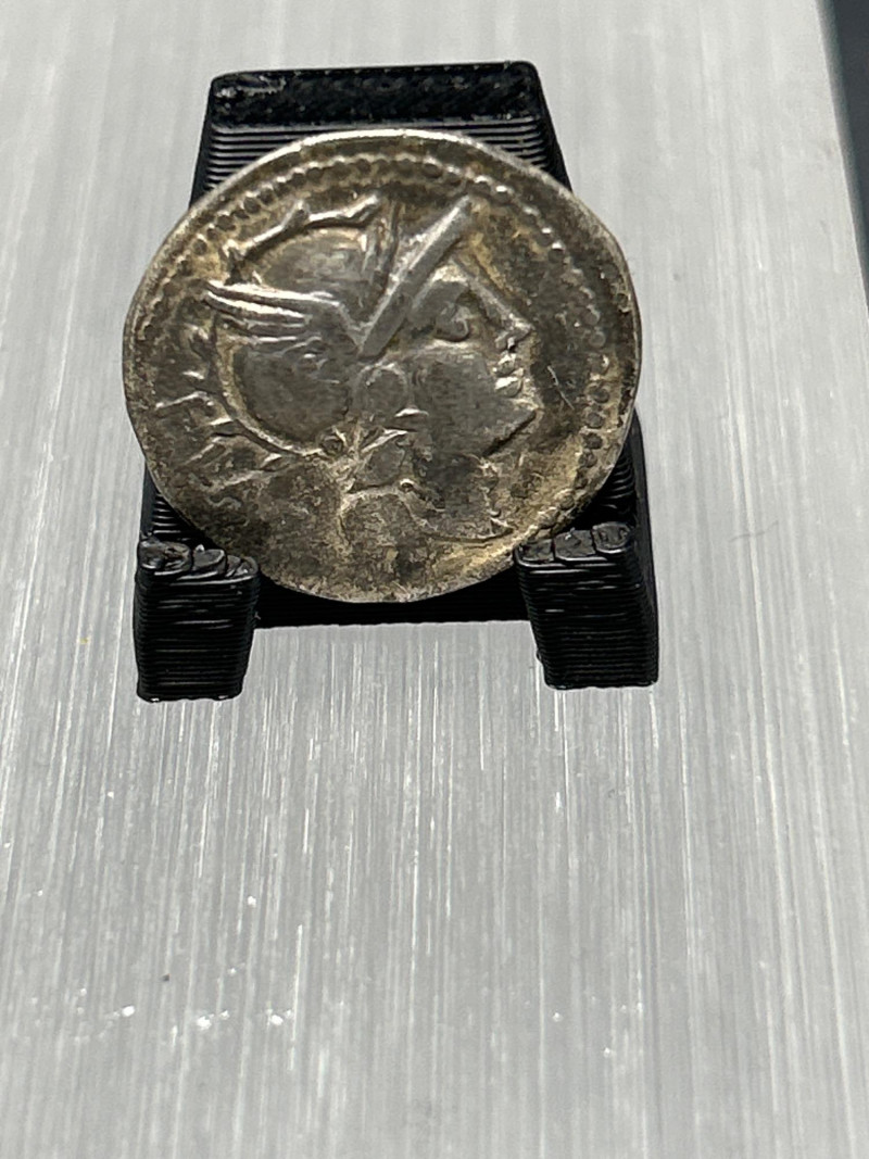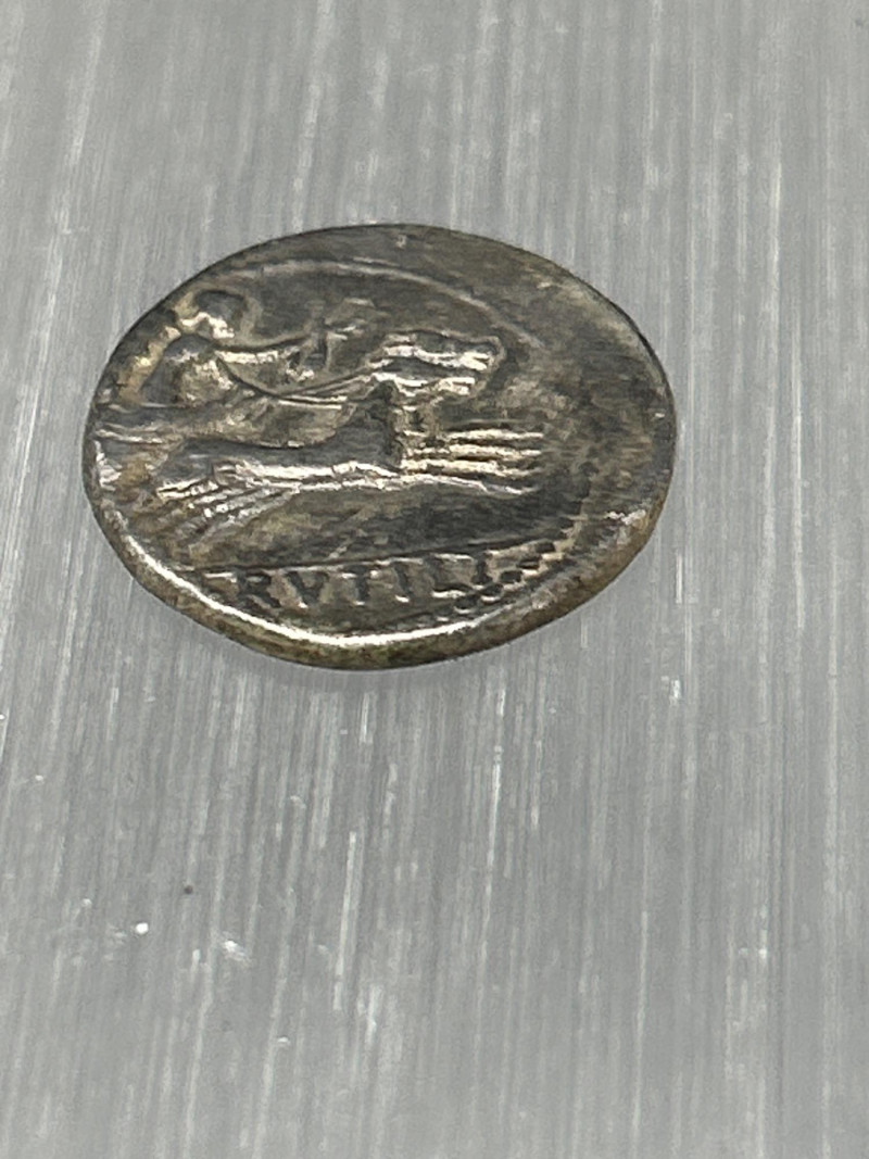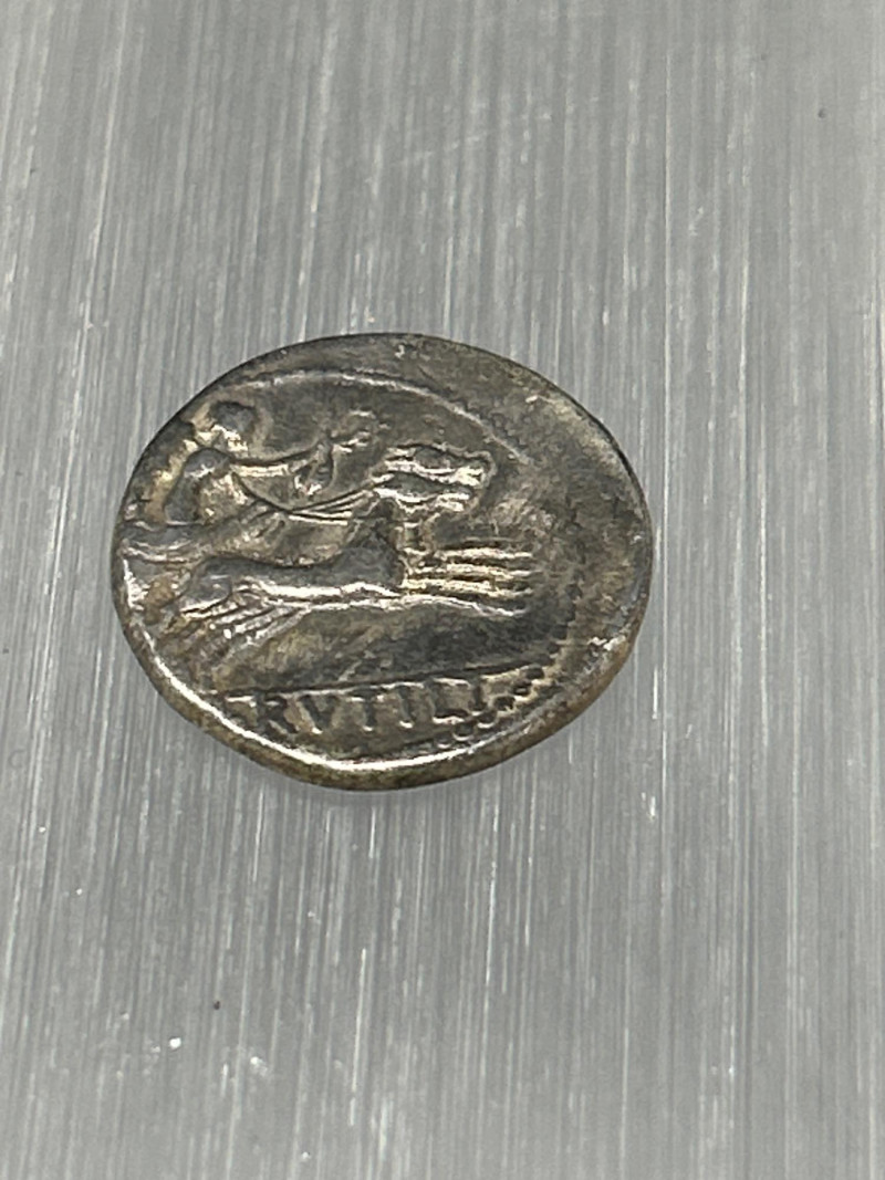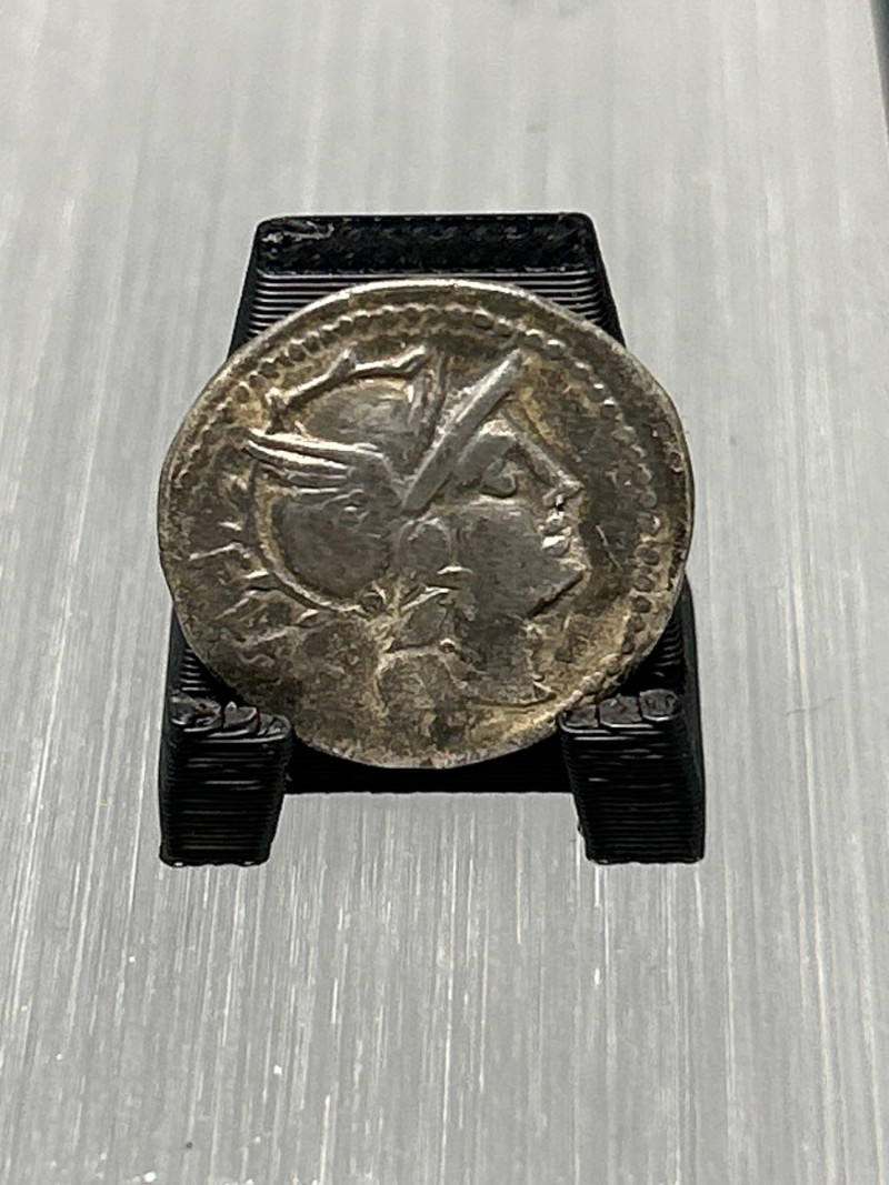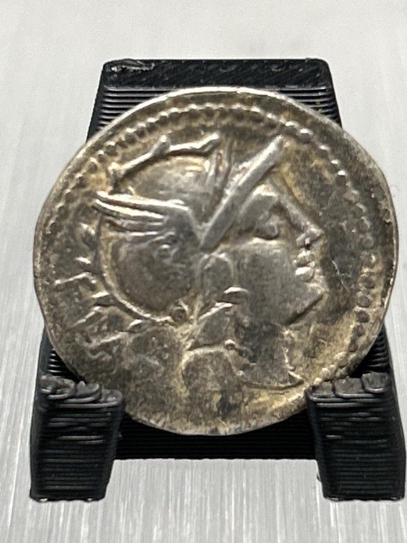 Highlights: Classic mid-Republican silver denarius with dynamic chariot scene Well-centered Roma portrait from hand-engraved dies—each coin uniquely struck Partial inscription suggests issue by Marcus Iunius or Marcus Iulius Even grey toning; moderate wear; horse and chariot details remain clear Edges sound; flan complete Collecting Insight: