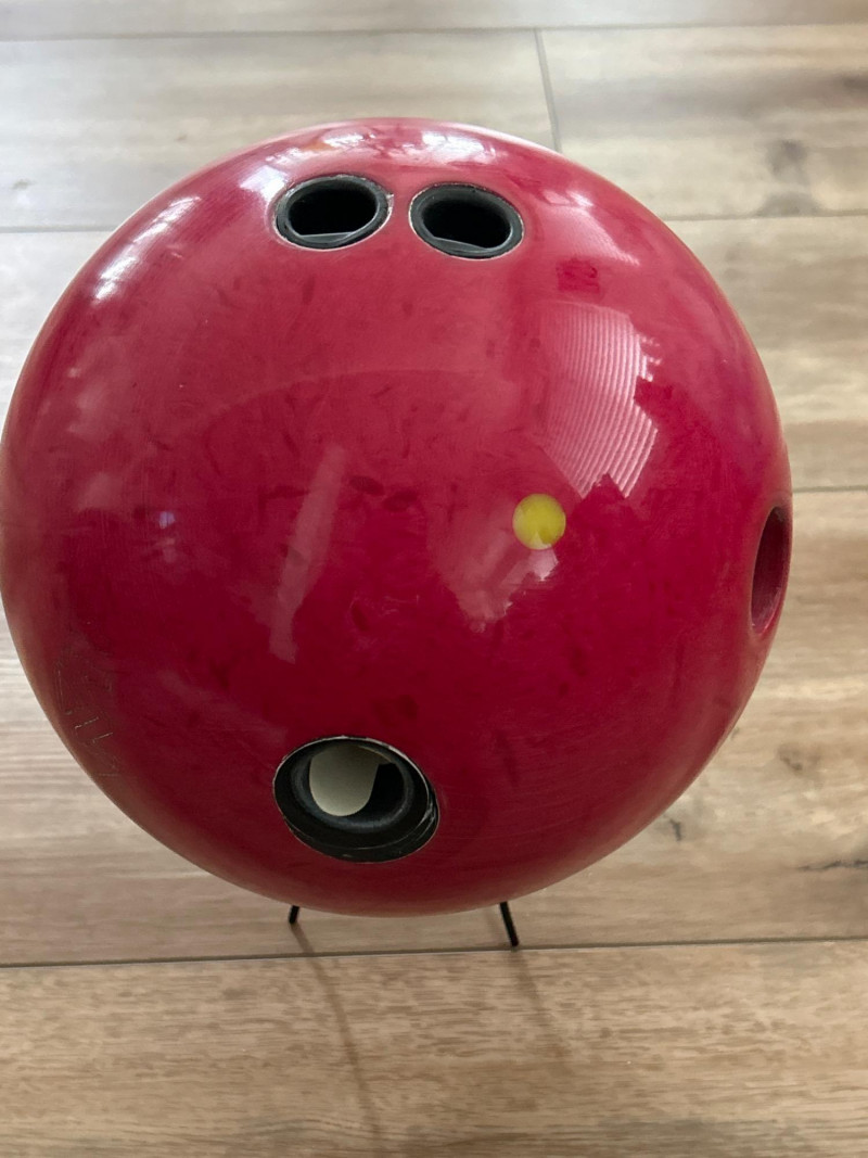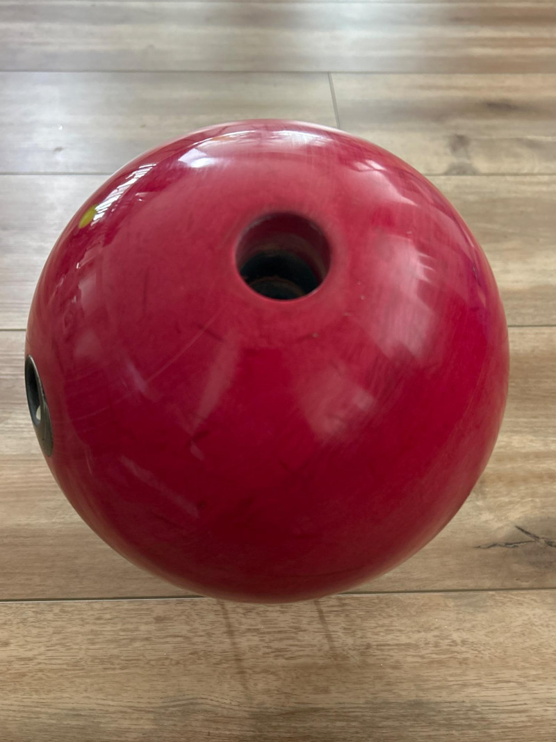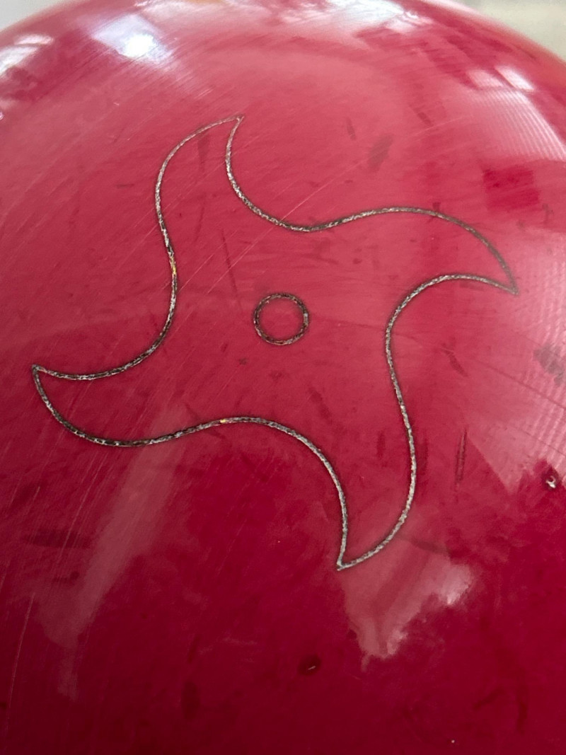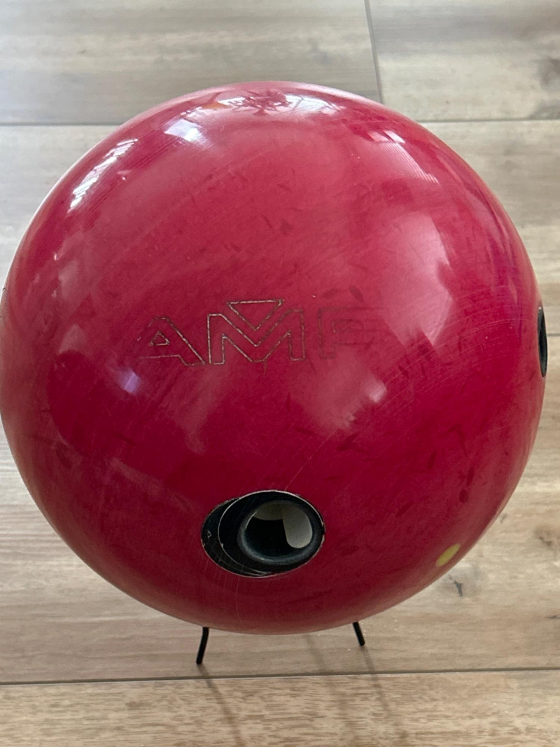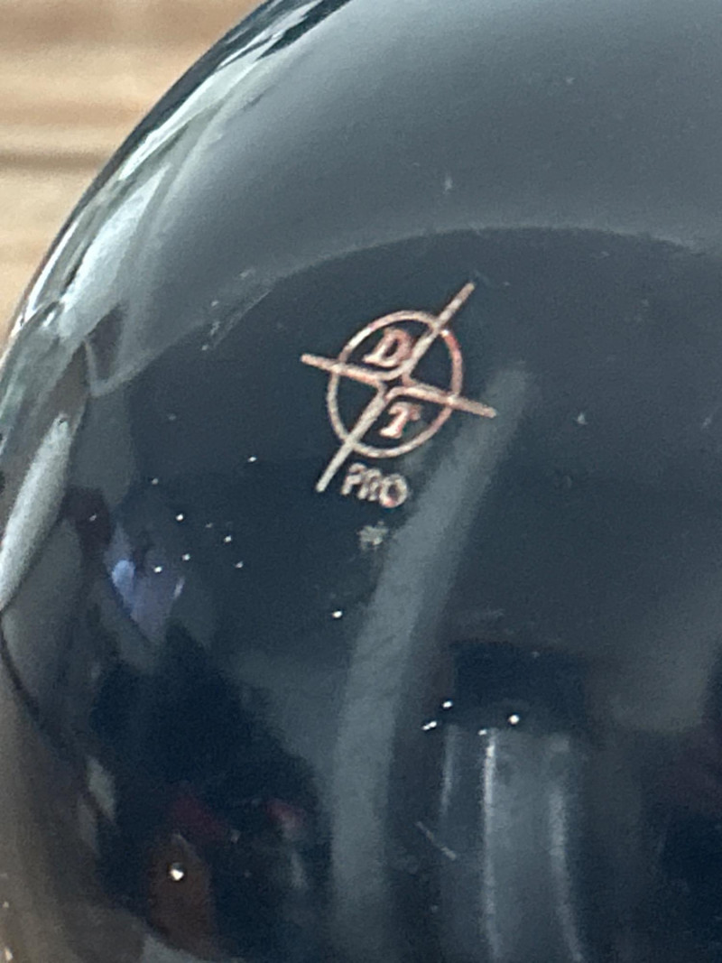 A matched set of two pre-drilled performance bowling balls from Dyno-Thane, a respected manufacturer favored by competitive bowlers in the late 1990s and early 2000s. Both balls feature custom finger drilling and thumb inserts, with surface wear consistent with prior use. Branding: Bold “DYNO-THANE” name on one side; DT Pro crosshair logo on the reverse Coverstock: Reactive resin, engineered for reliable mid-lane read and controllable backend motion Drilling: Three-finger layout with thumb insert Branding: “AMP” name with stylized ninja shuriken/star logo Coverstock: Designed for angular backend reaction and versatility on medium oil lane conditions Drilling: Three-finger layout with thumb insertBlack Ball – Dyno-Thane Vendetta DT Pro