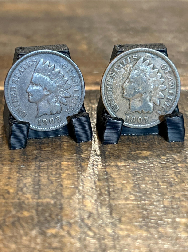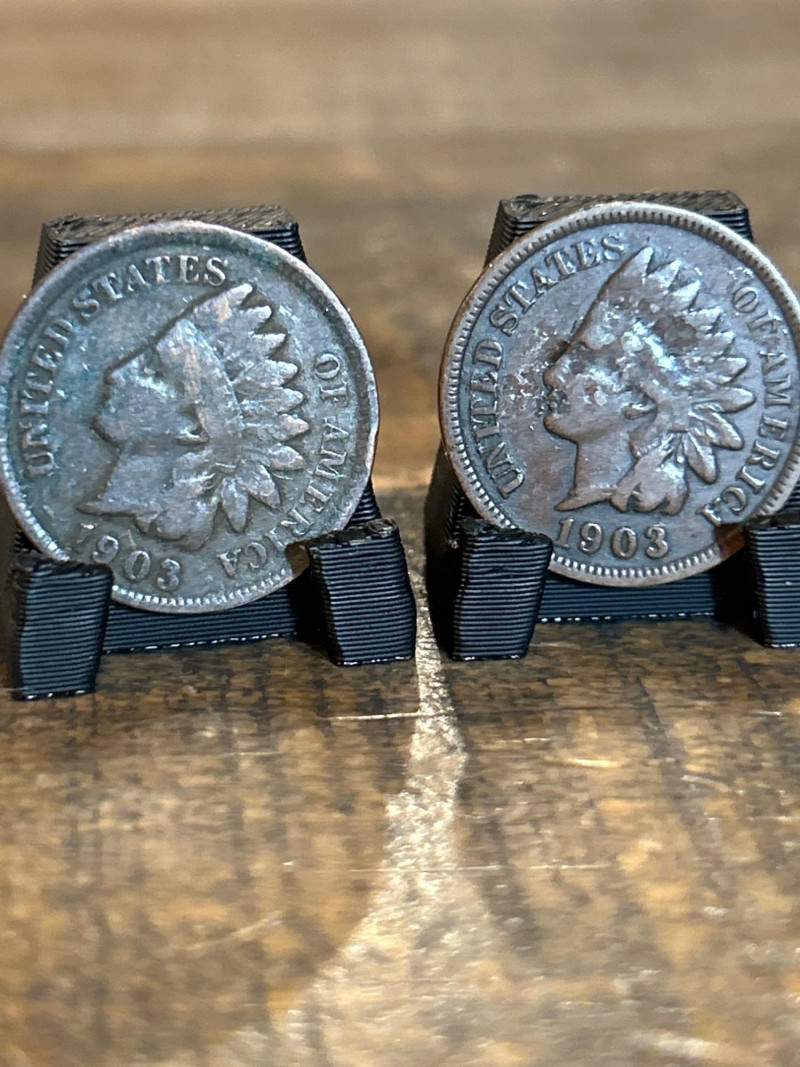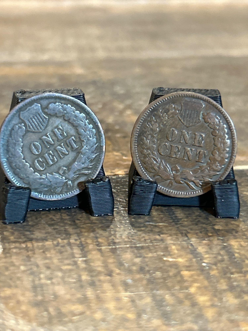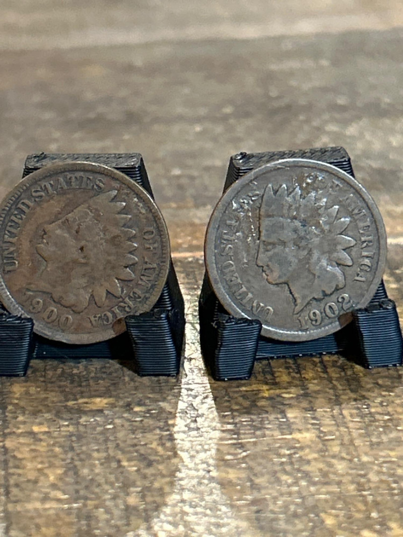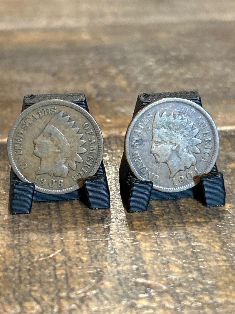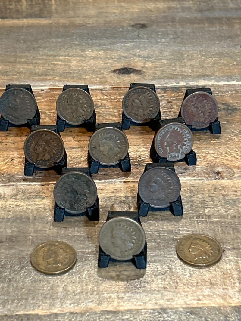A mixed-date lot of twelve (12) U.S. Indian Head cents, ranging from the Civil War era through the early 20th century. Notable dates include an 1860 copper-nickel issue (first year with the laurel wreath reverse), a transitional 1860s bronze strike, and later examples such as 1899, 1901, 1903 (×2), and 1906. Coins are in circulated condition with varying degrees of wear and patina; some retain clear date and Liberty head detail, while others exhibit heavier age toning. Each coin features the classic James B. Longacre Liberty with feathered headdress obverse and oak wreath with shield reverse. 1860 (Copper-Nickel) 1899 1901 1903 1906 Plus additional 19th–early 20th century Indian Head cents (mixed, partially legible dates) Composition: Copper-nickel (early issues), bronze (later issues) Diameter: 19 mm Mint: Philadelphia (no mintmarks produced for this series) Struck from 1859–1909, the Indian Head cent remains one of America’s most iconic small cents. Early copper-nickel issues (1859–1864) are thicker and heavier than later bronze strikes and are highly desirable among type collectors. Mixed-date lots like this are ideal for album building, die variety study, or as an affordable entry point into Indian Head cent collecting.dentified Dates: