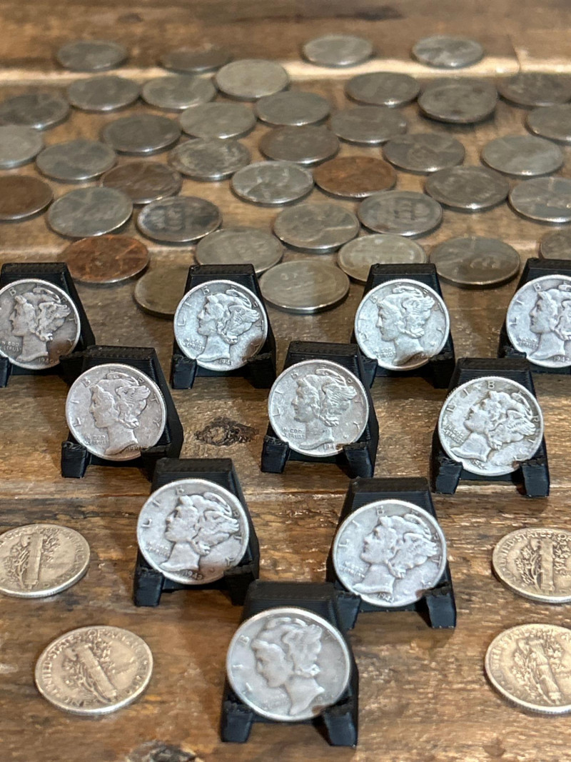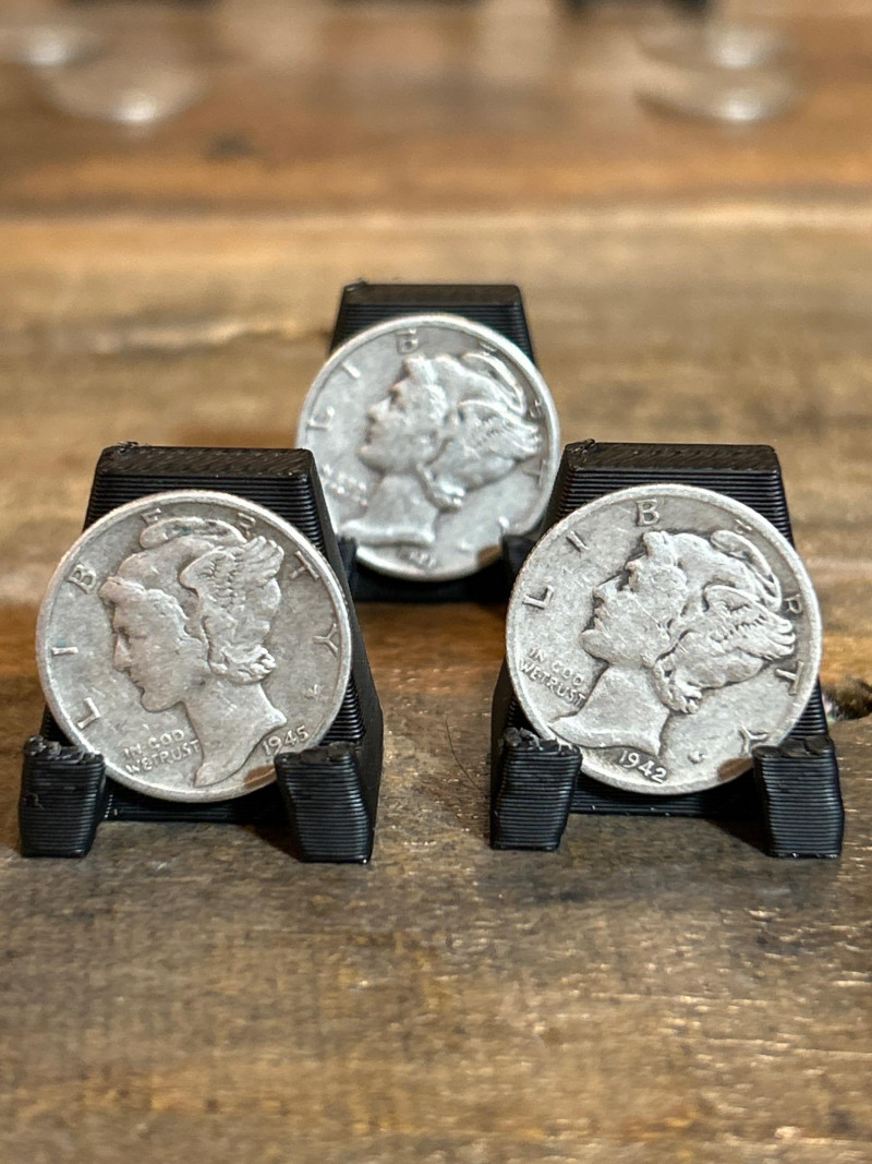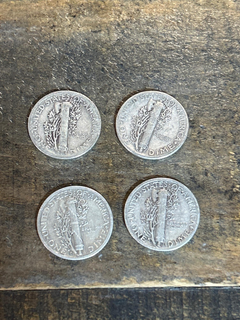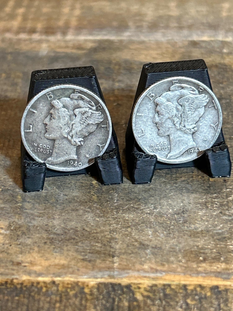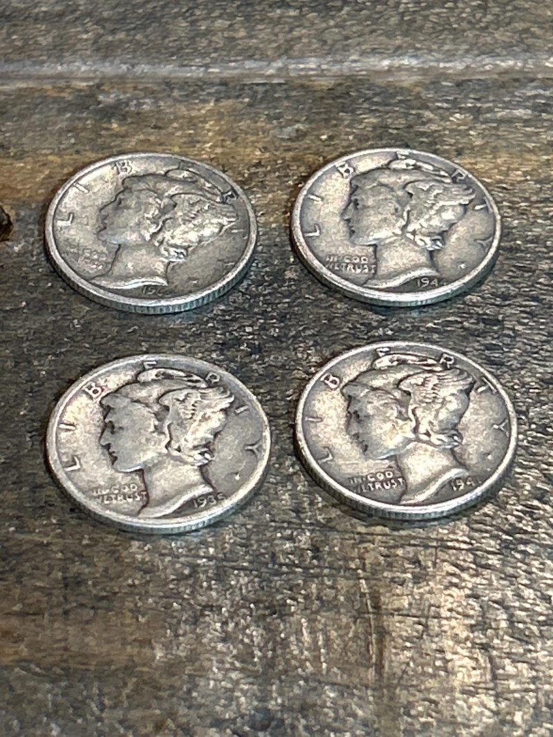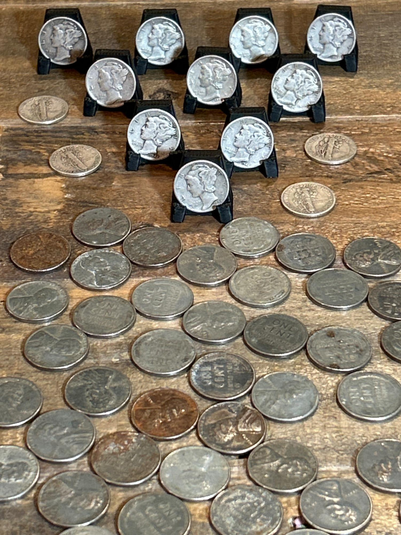 A mixed lot of vintage U.S. coins featuring fourteen (14) Mercury dimes—officially the Winged Liberty Head design—struck in 90% silver between 1916 and 1945. These dimes include visible examples from 1942 and 1945, showcasing classic pre-war minting. Accompanying them is a group of 1943 Lincoln “Steel” cents, the one-year emergency issue produced during World War II using zinc-coated steel to conserve copper. The steel cents retain their signature pale gray tone from the zinc finish. Set Includes: (14) Mercury dimes, 90% silver, dated between 1916–1945 (visible 1942 & 1945 examples) Group of 1943 Lincoln steel cents, zinc-coated wartime issue Highlights: Classic silver dimes with both melt value and collector appeal Wartime steel cents — iconic one-year emergency issue Great starter lot for coin collectors, silver stackers, or history buffs