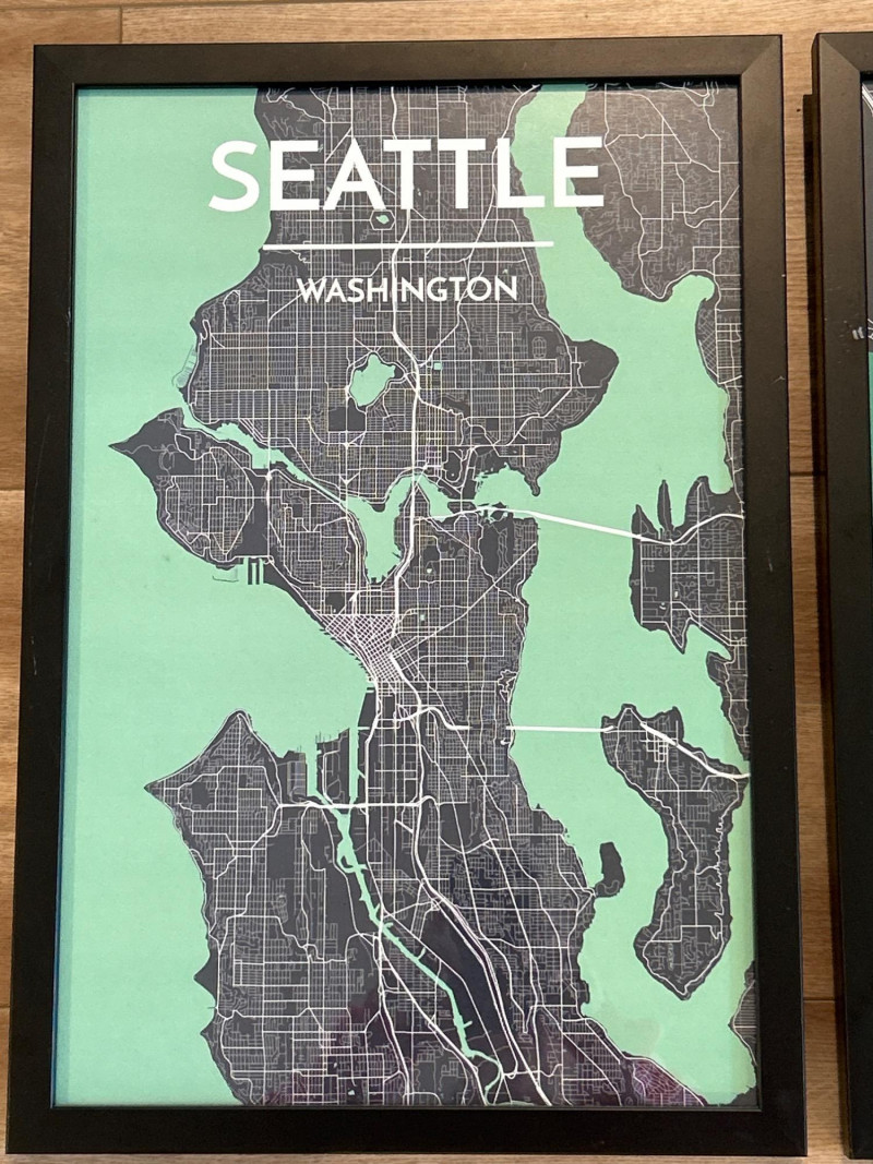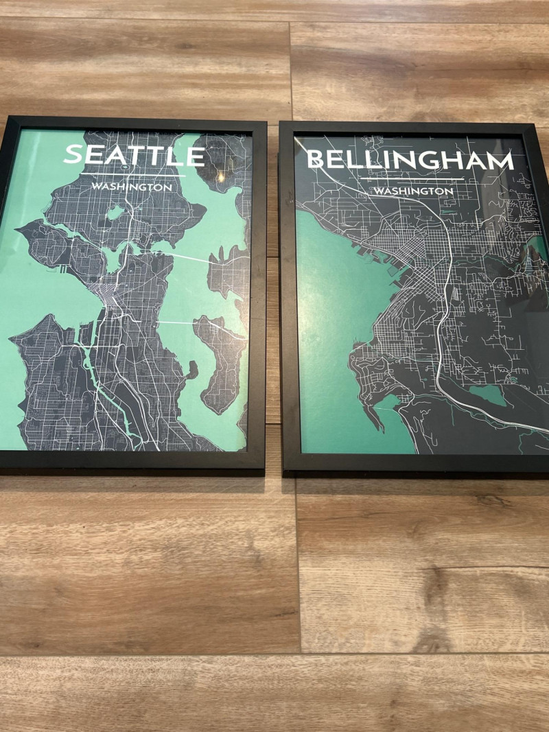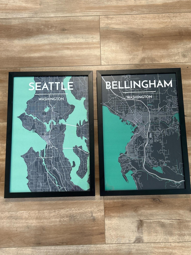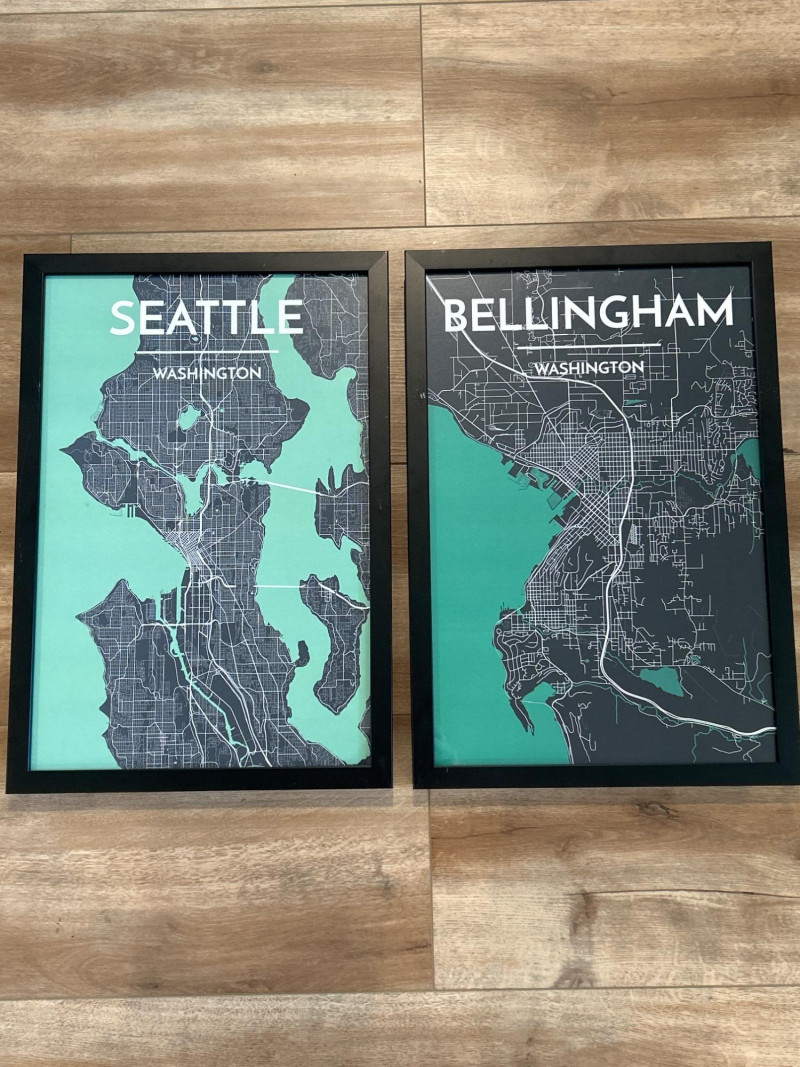 Lot # 96 - Framed City Map Prints — Seattle & Bellingham, Washington