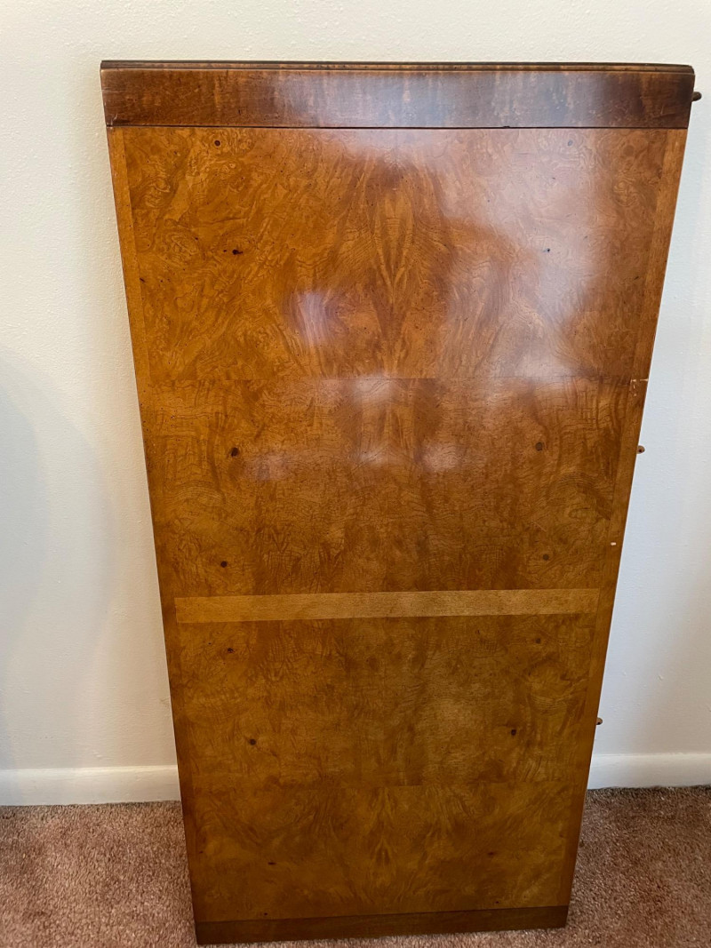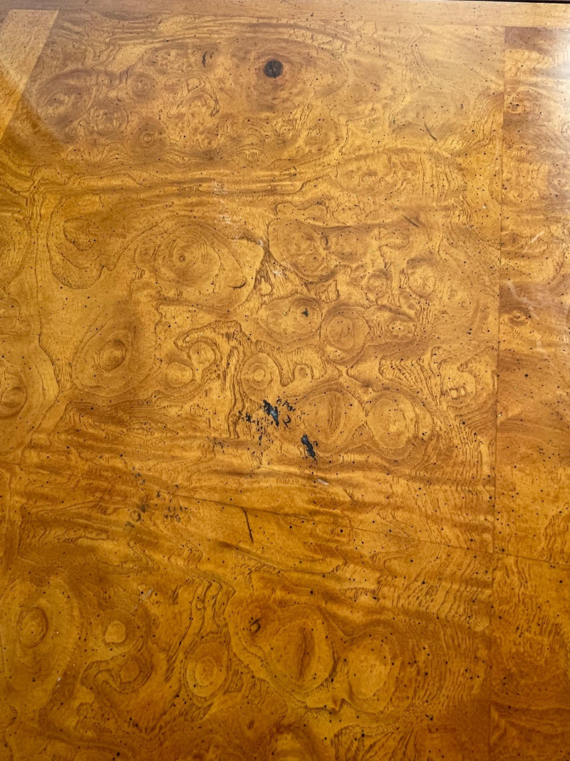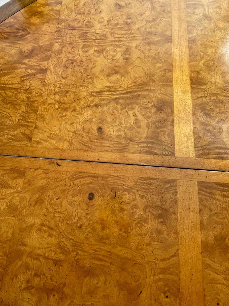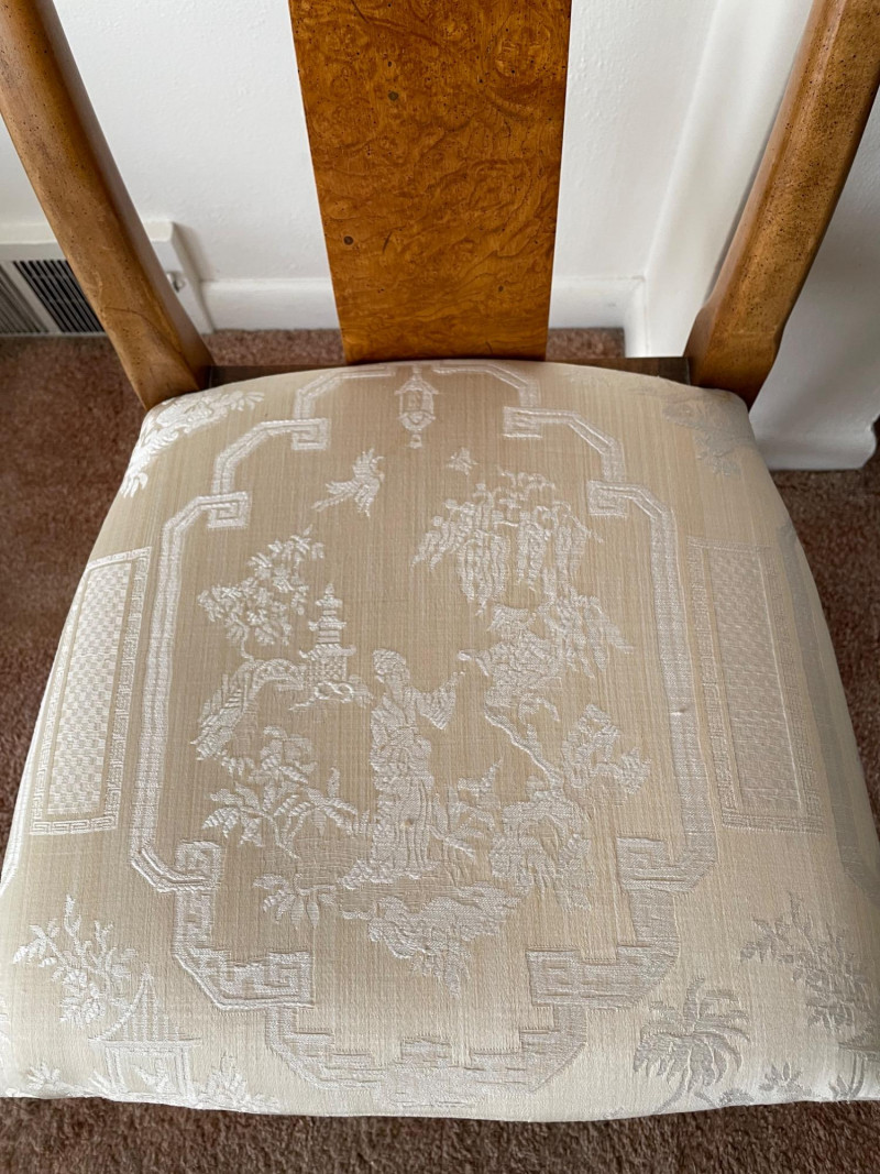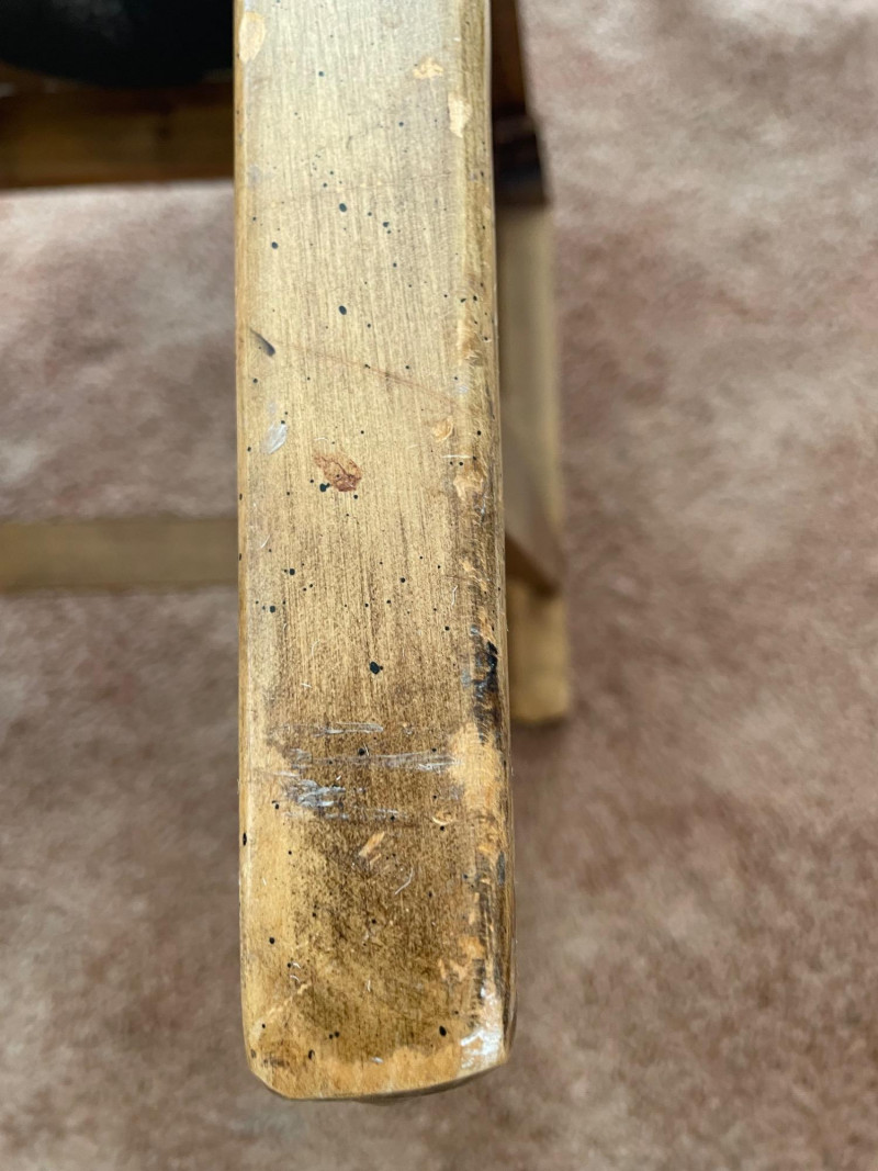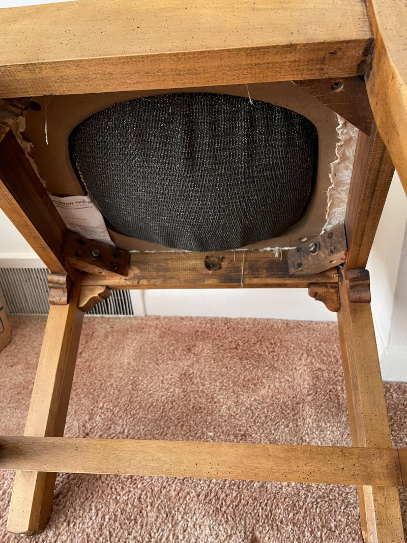 42” Round Table with some wear, tabletop lose may need tightening/fixing. 4 chairs with wear, see pictures. Chair size 41 1/2 “high and seat are 17 1/2 x 18” Table Leaf Adds 20” also includes table pad Cozy dining area featuring: Dining Table: Chairs: Bonus: Includes a custom table pad for added protection and preservation. ON THESE PIECES, PLEASE BRING STRONG HELP, THERE WILL BE NO ONE HERE TO HELP YOU.Main Elements