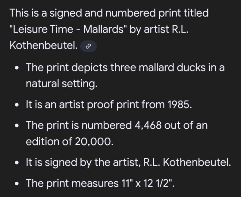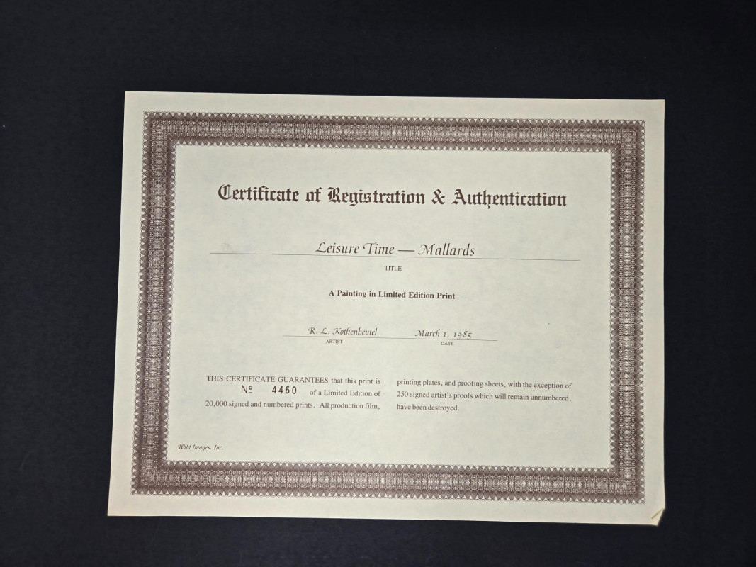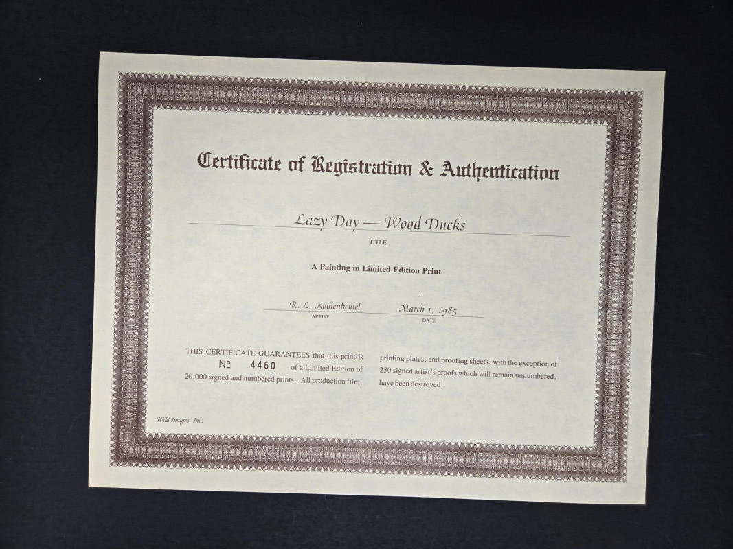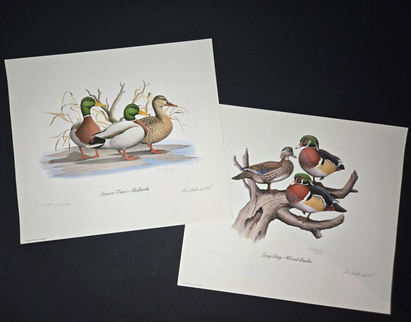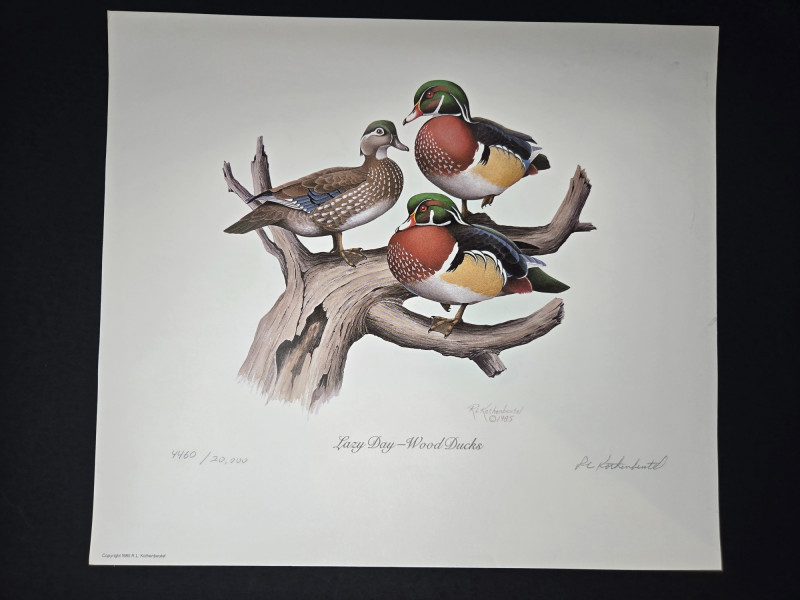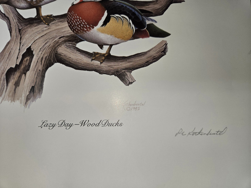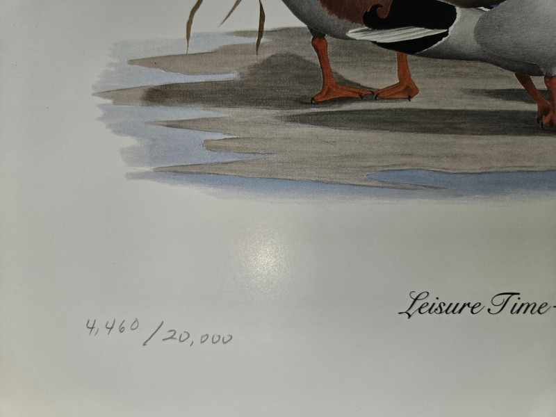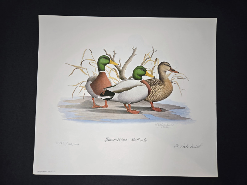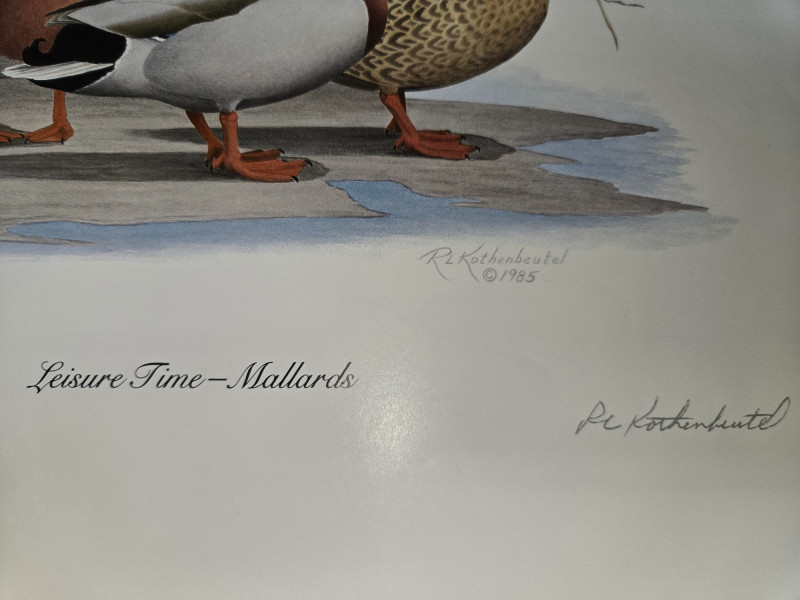 Pair of limited-edition wildlife art prints by R.L. Kothenbeutel, featuring beautifully detailed waterfowl scenes: Both prints are signed and numbered by the artist, showcasing vibrant colors and lifelike detail, perfect for collectors of wildlife art or rustic décor.“Leisure Time” & “Lazy Day” Prints by R.L. Kothenbeutel-WASHINGTON STATE ARTIST