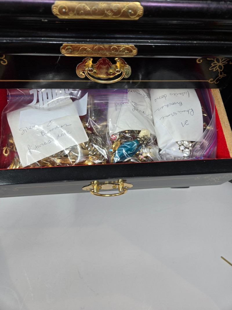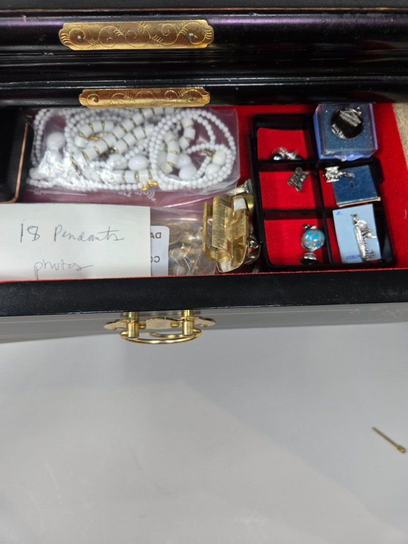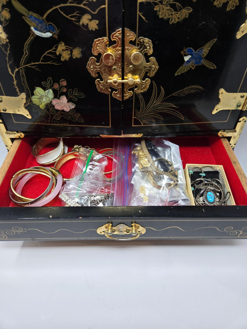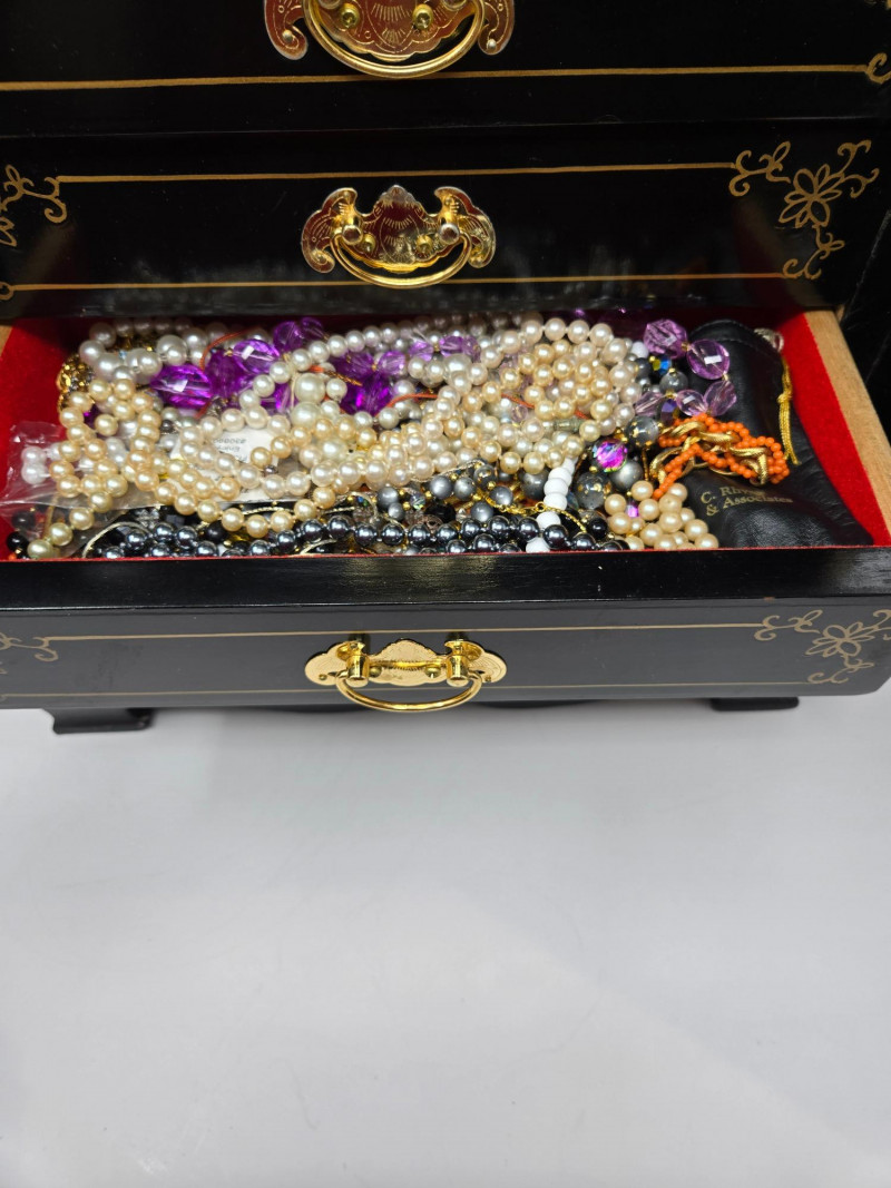 Lot # 24 - Black Laquered Chinese Jewelry Box Loaded With Costume Jewelry