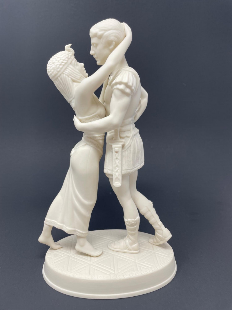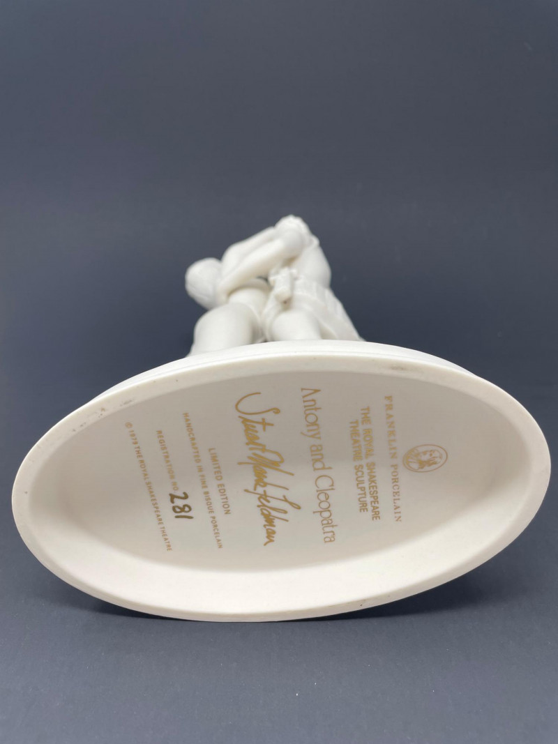 Size 10”x6” Stuart Mark Feldman porcelain statue depicting Antony & Cleopatra, a collectible piece inspired by historical and literary figures. Here’s a detailed description: Material: Figures: Base: Artistic Style: